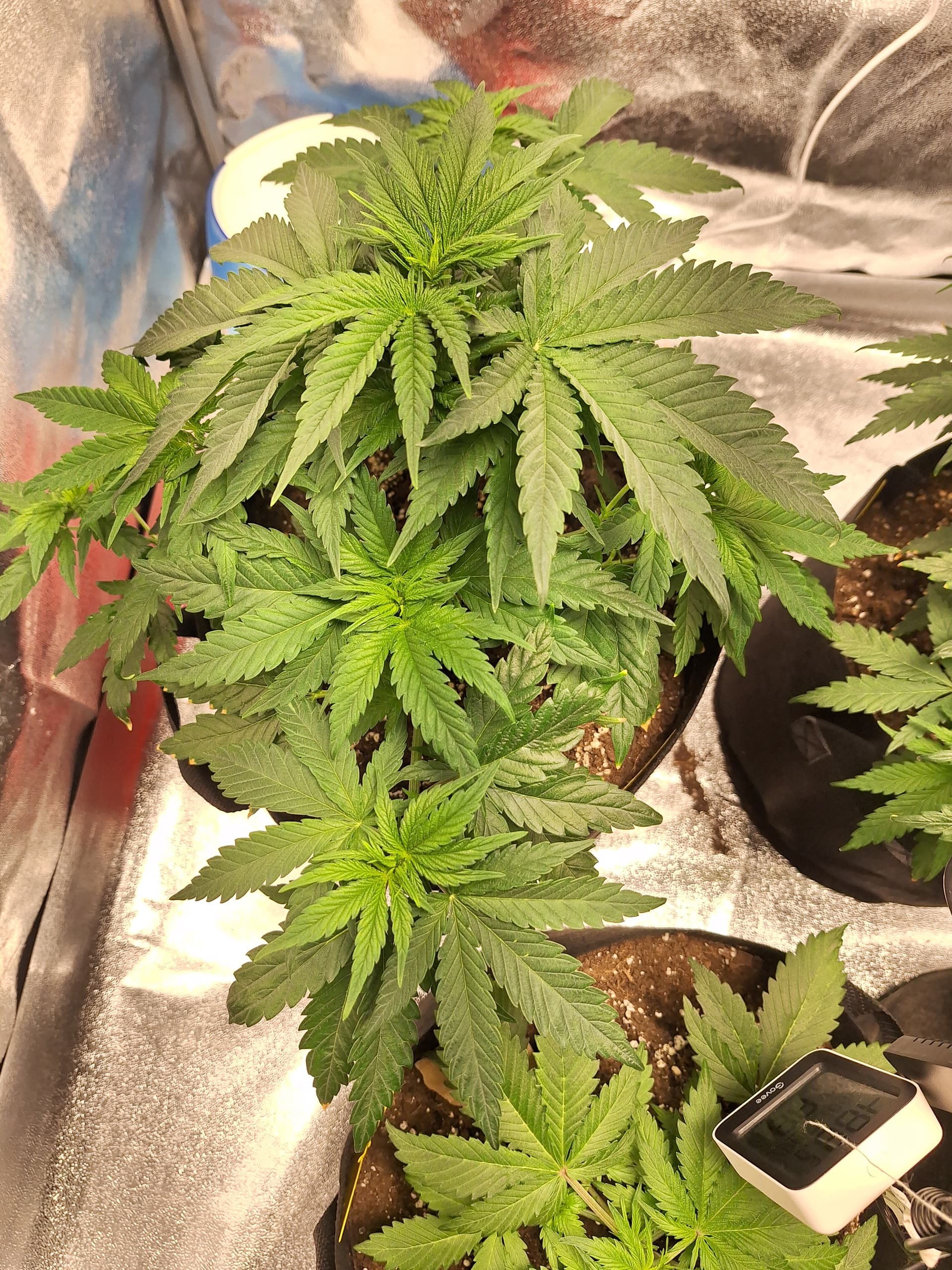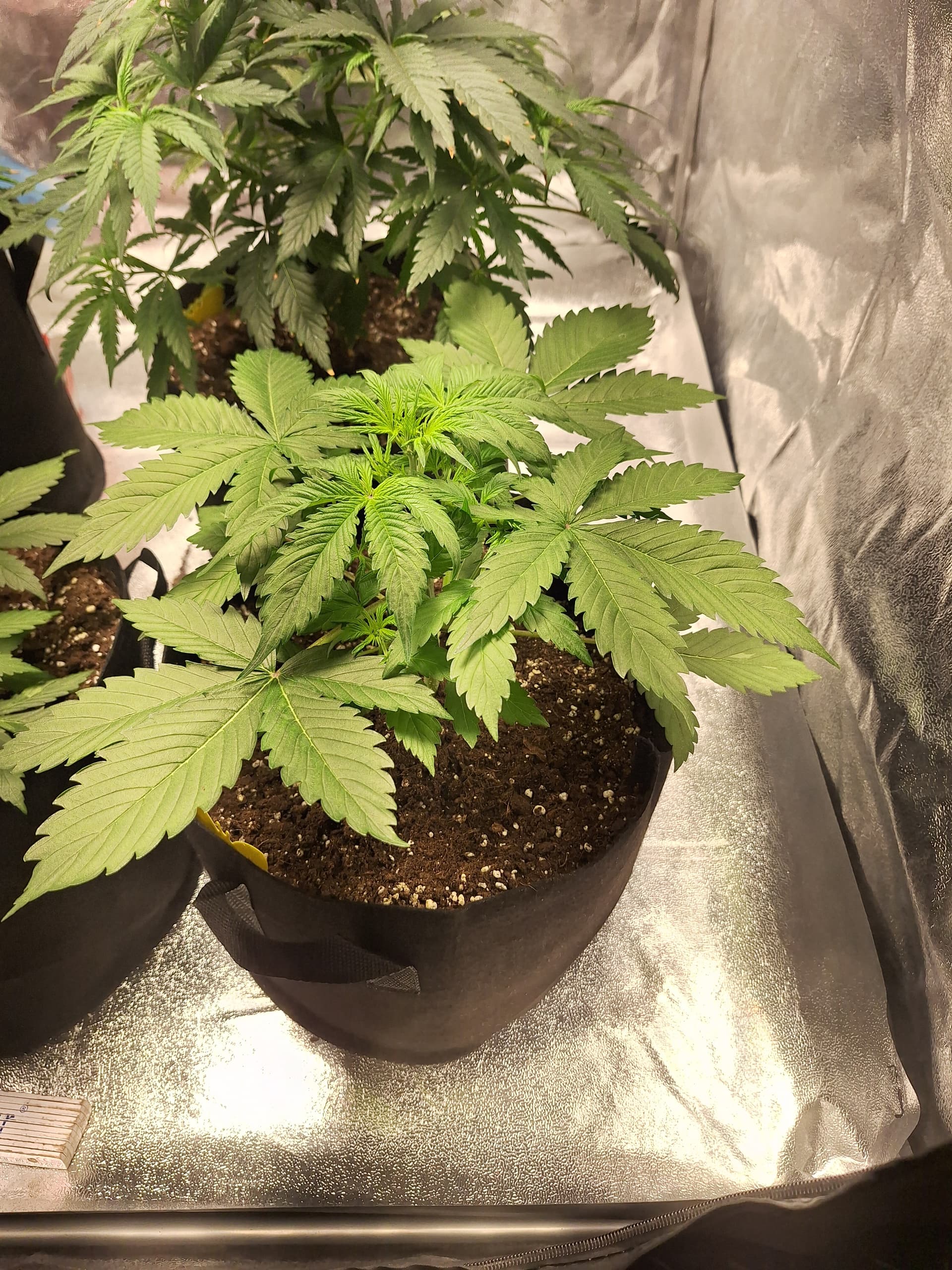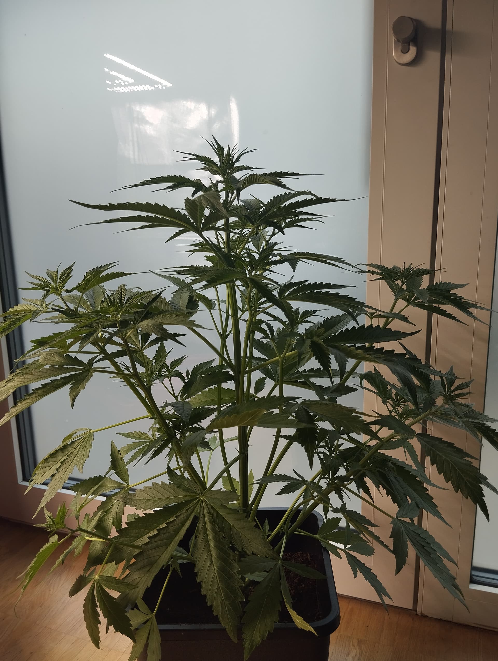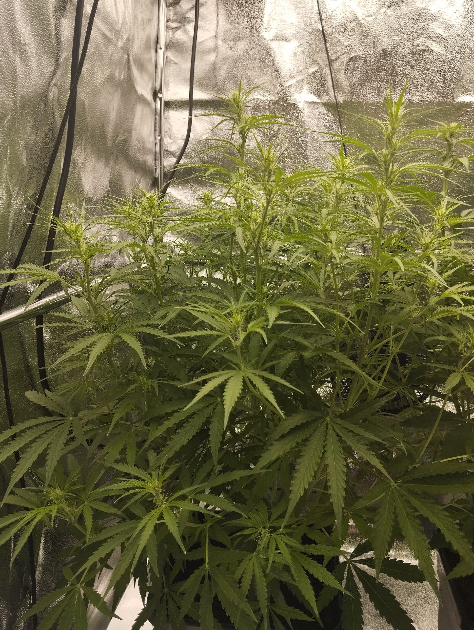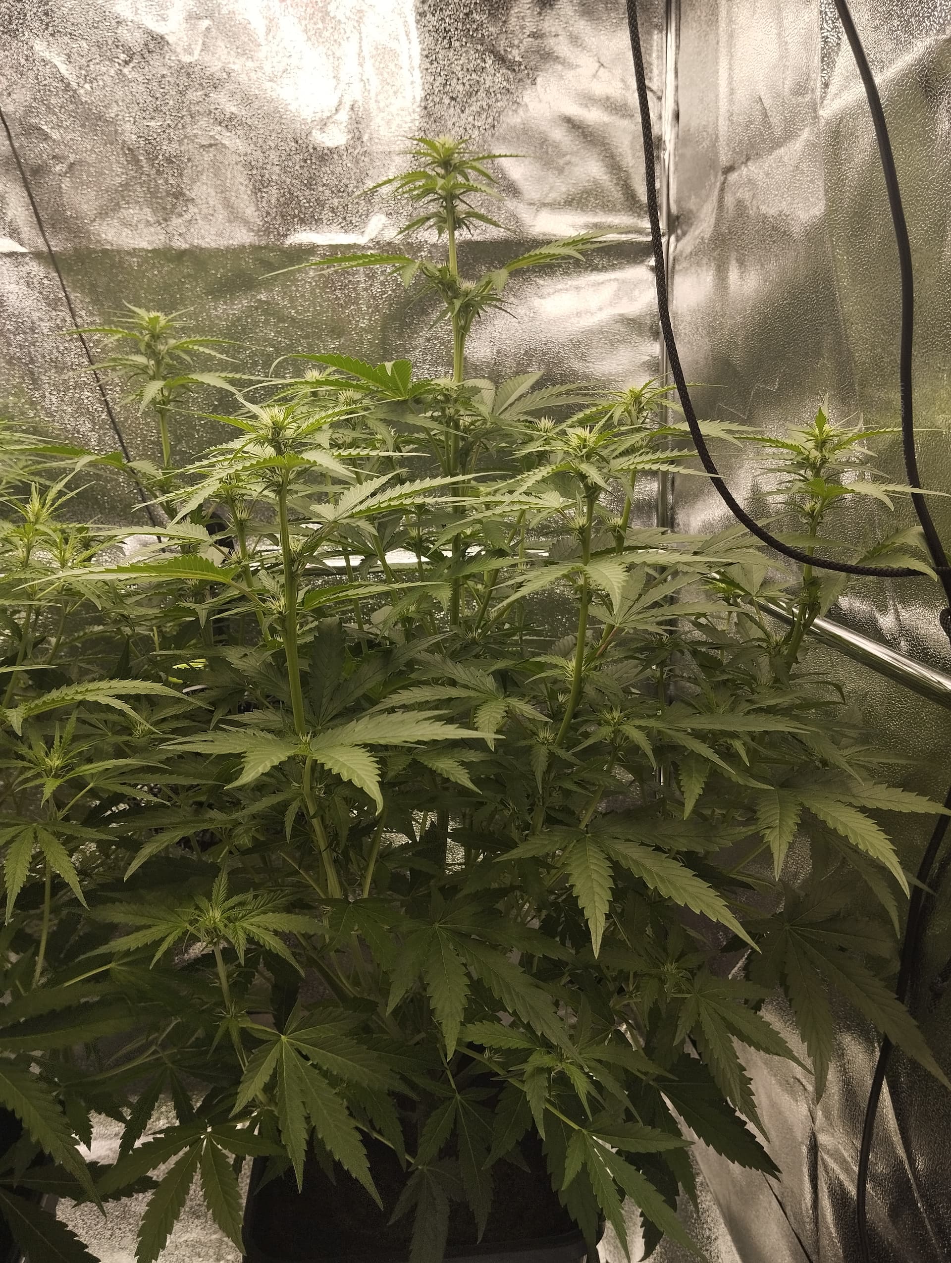 Es sind Autoflowers. Die hinten links ist eine Double Kush Cake. Die anderen beiden sind Northern Lights. Die vorne ist eine Woche jünger als die beiden hinten.