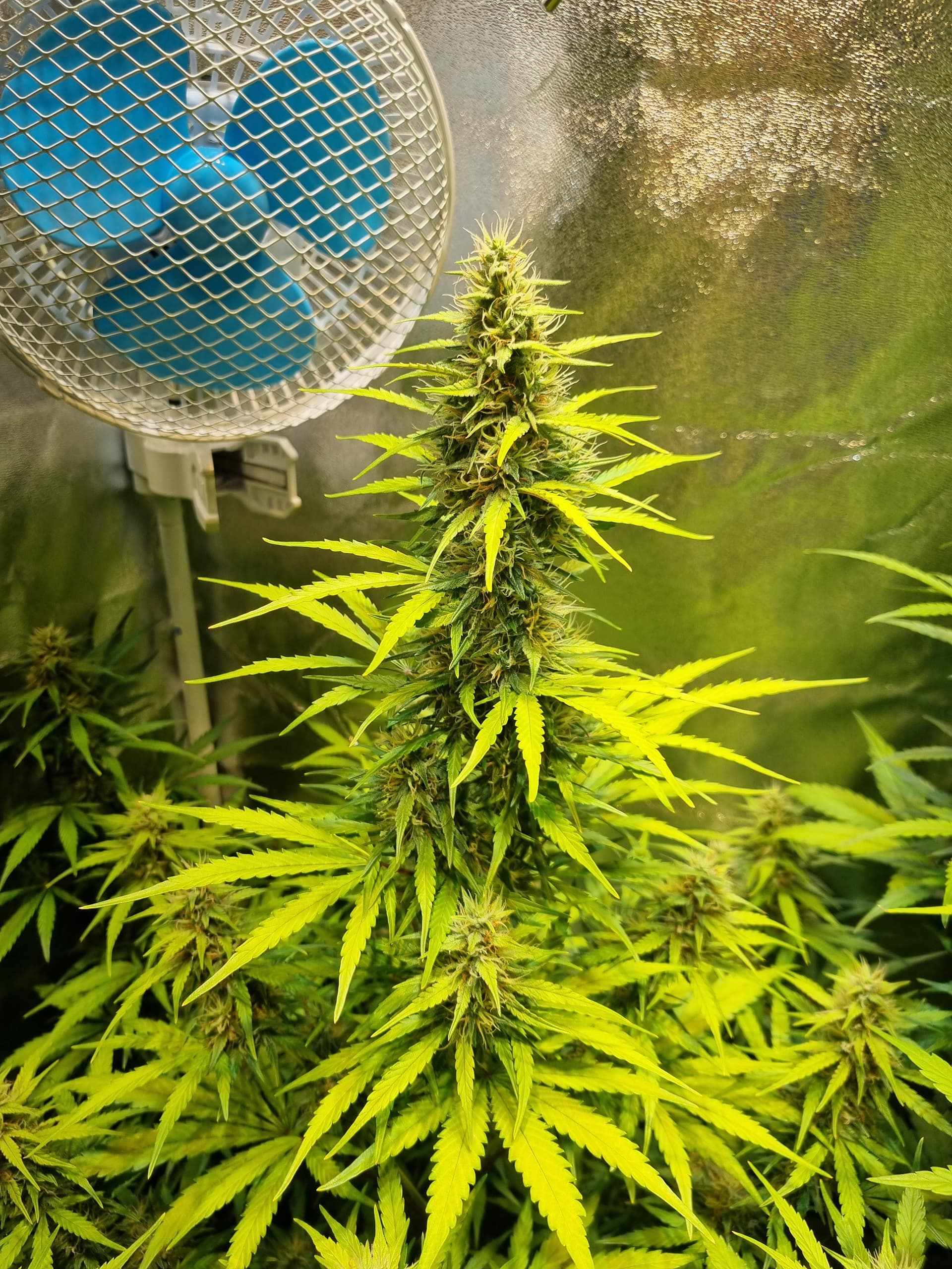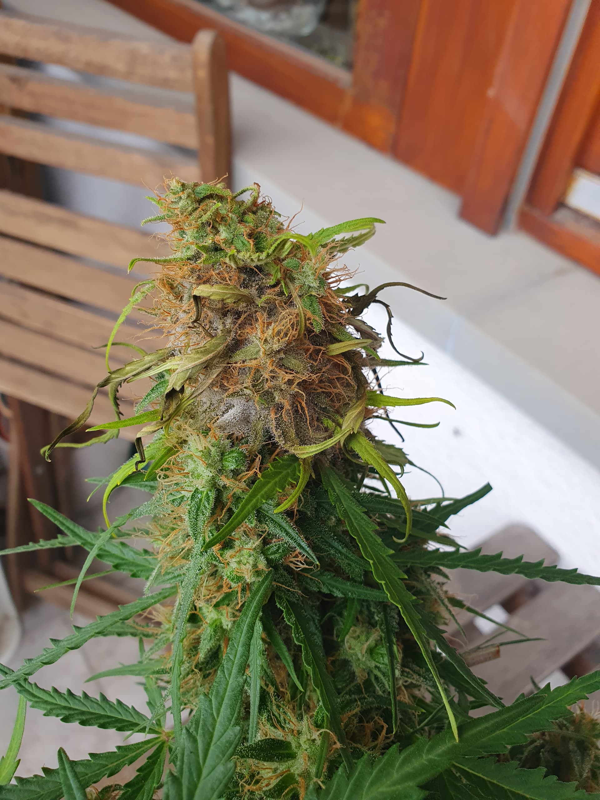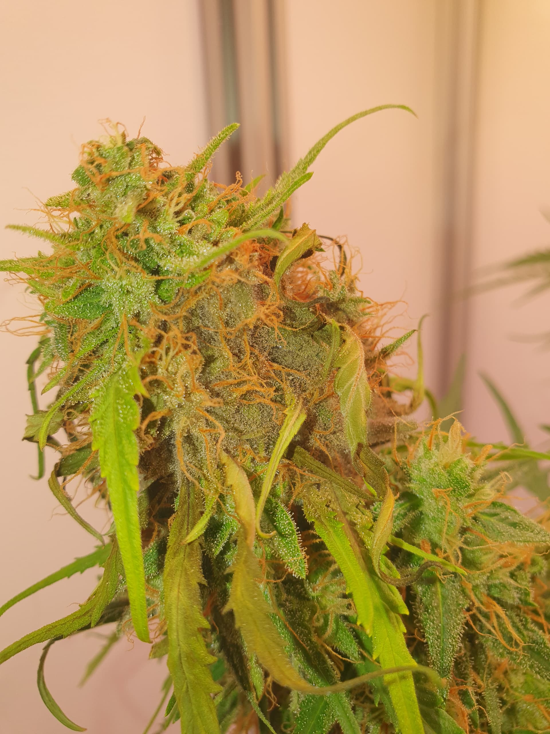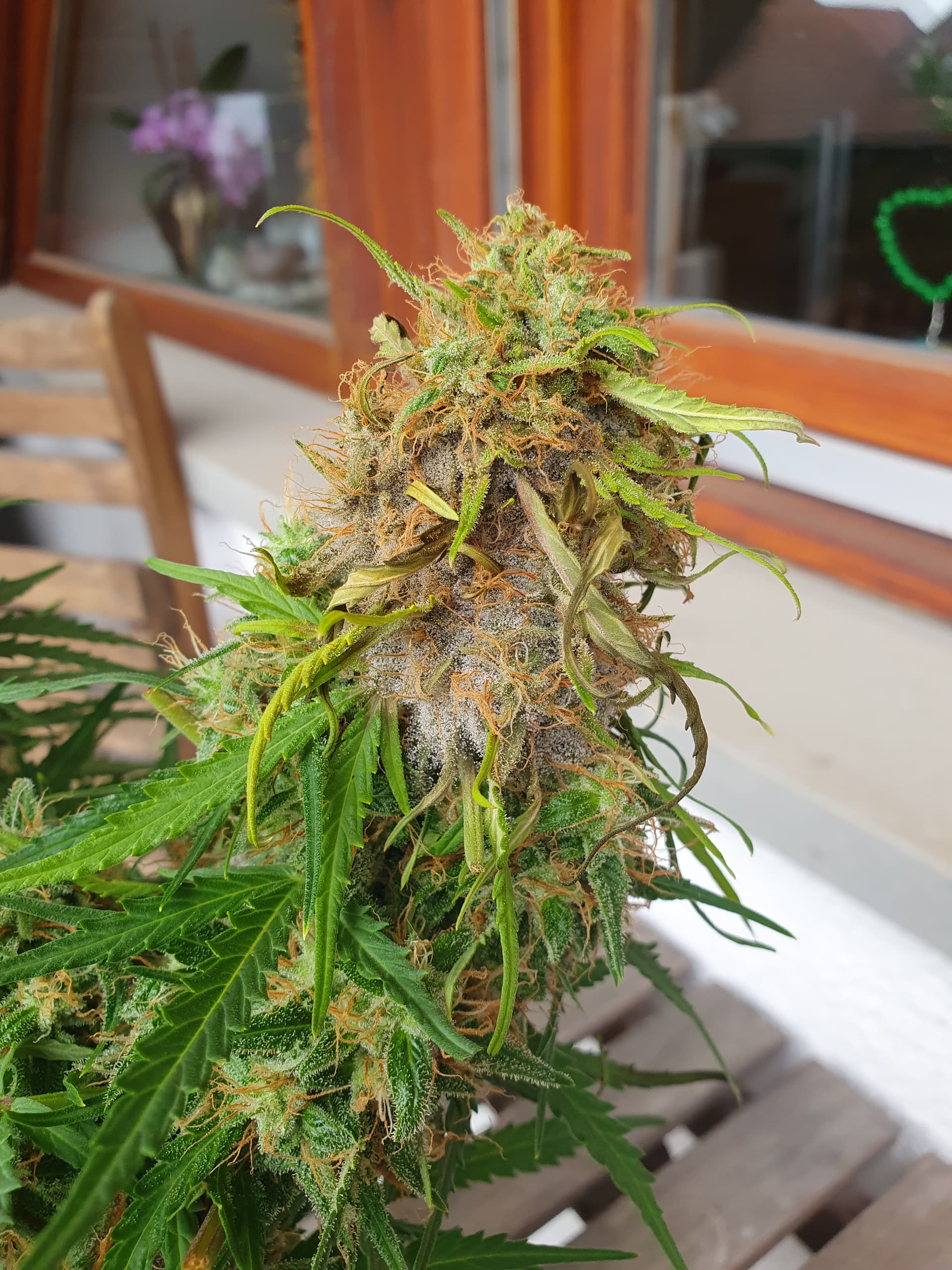 Ist ne RoyalJackAuto Tag 55 nach Keimen. Mir ist die Abluft im Urlaub verreckt. Pflanze stand dann die letzten zwei Wochen im Freien. Die Luftfeuchte und restlichen Bedingungen waren eher ungünstig😓 Was haltet ihr davon?