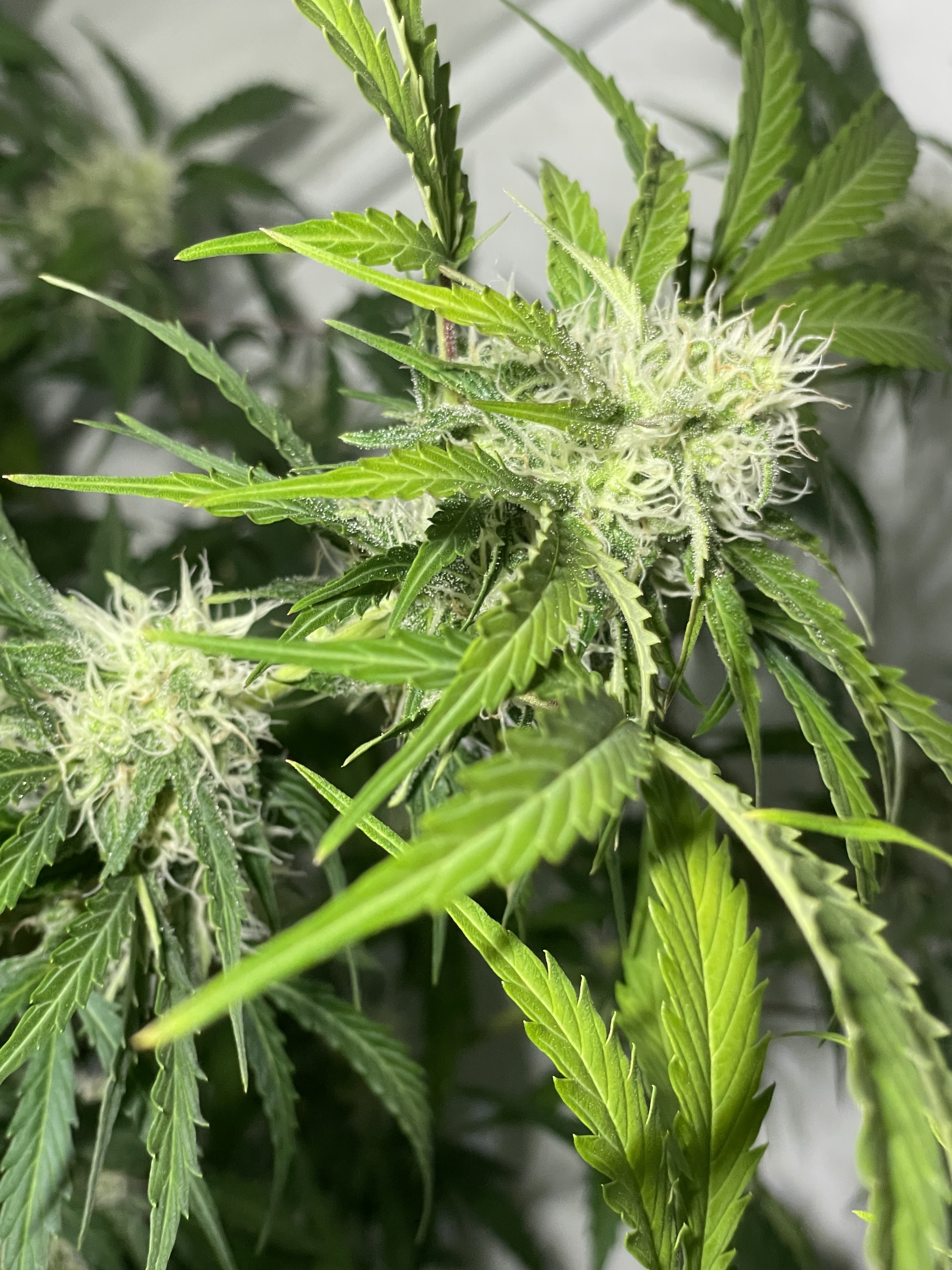 Sorte ist eine sunset sherbet auto, 20l Topf, 24-27°C, gestern gegossen mit 4l 150ml drain, Dünger ist Hesi Erde für die erste Blütewoche Licht ist 100% mit einer Mars hydro fce3000 in einem 100x100 Zelt.