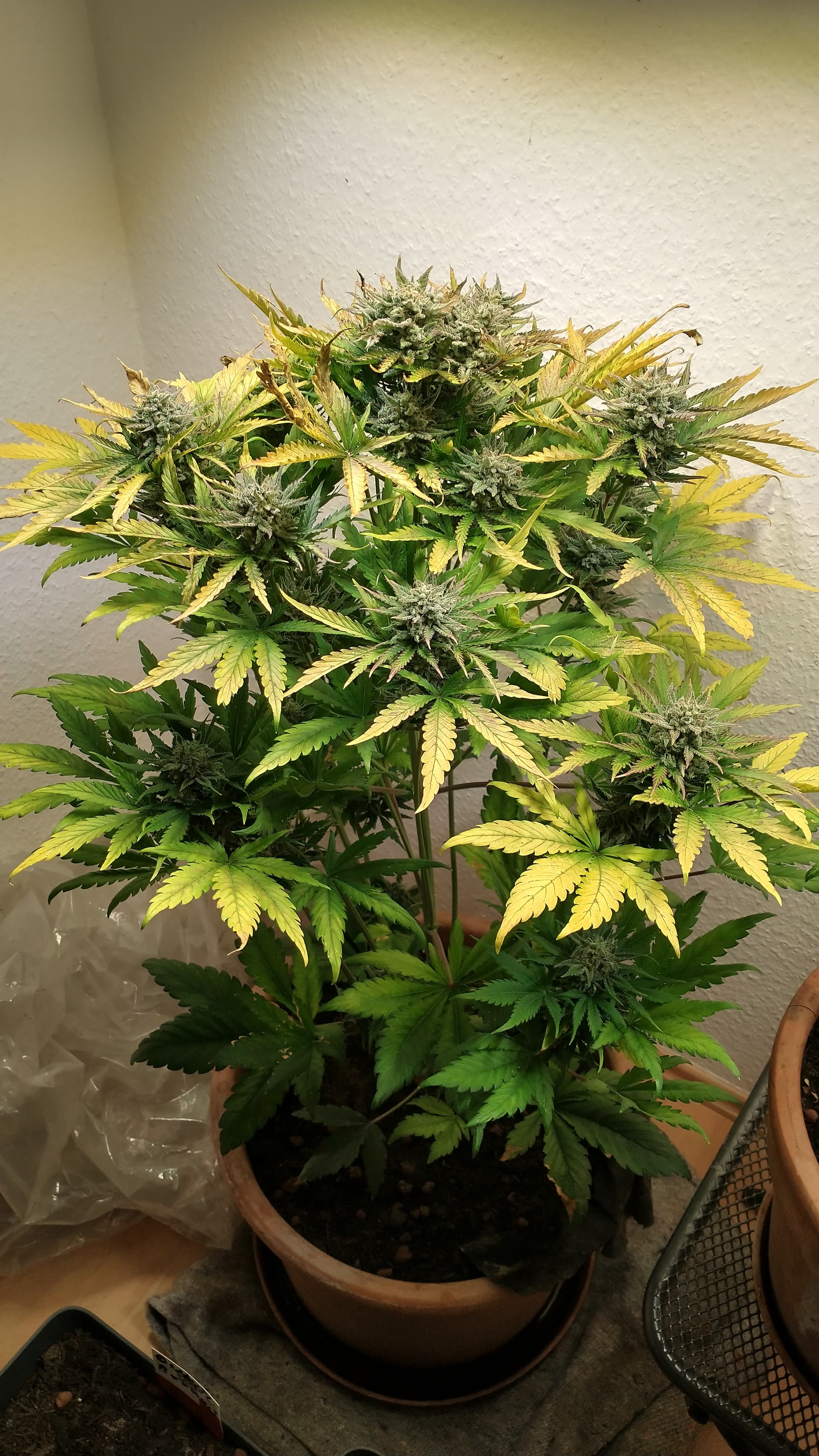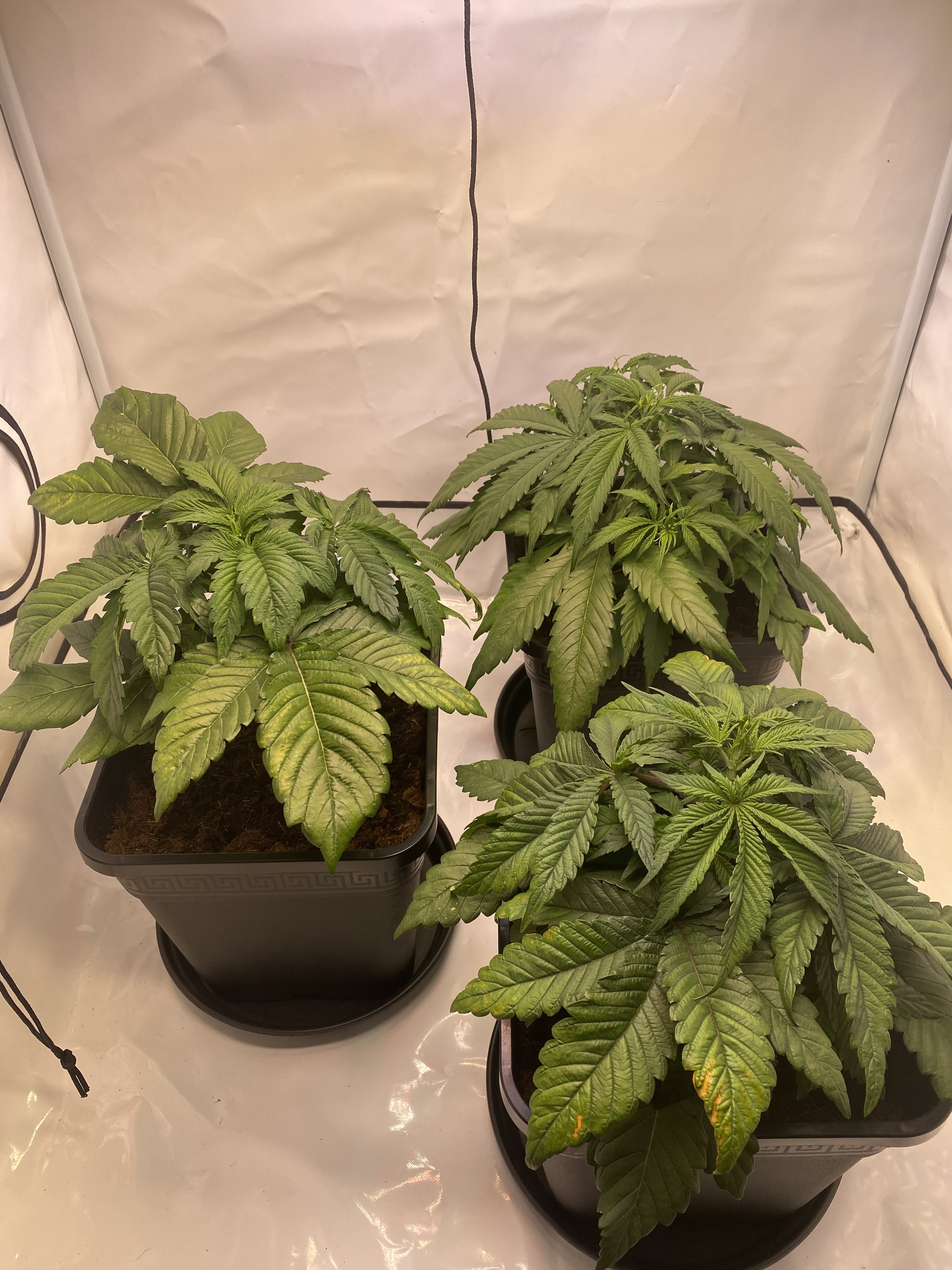 Hi Leute. Ich bin neu hier und wollte euch mal einen Blick auf meinen Grow werfen lassen. Ich habe bereits zahlreiche Bilder und Problem Guides für Blattsymptome studiert und würde eigentlich auf Magnesium oder Kalzium tippen. Andererseits kommen mir die Pflanzen insgesamt sehr gedrungen vor so dass ggf. auch etwas generelles nicht passt? Was meint ihr so?