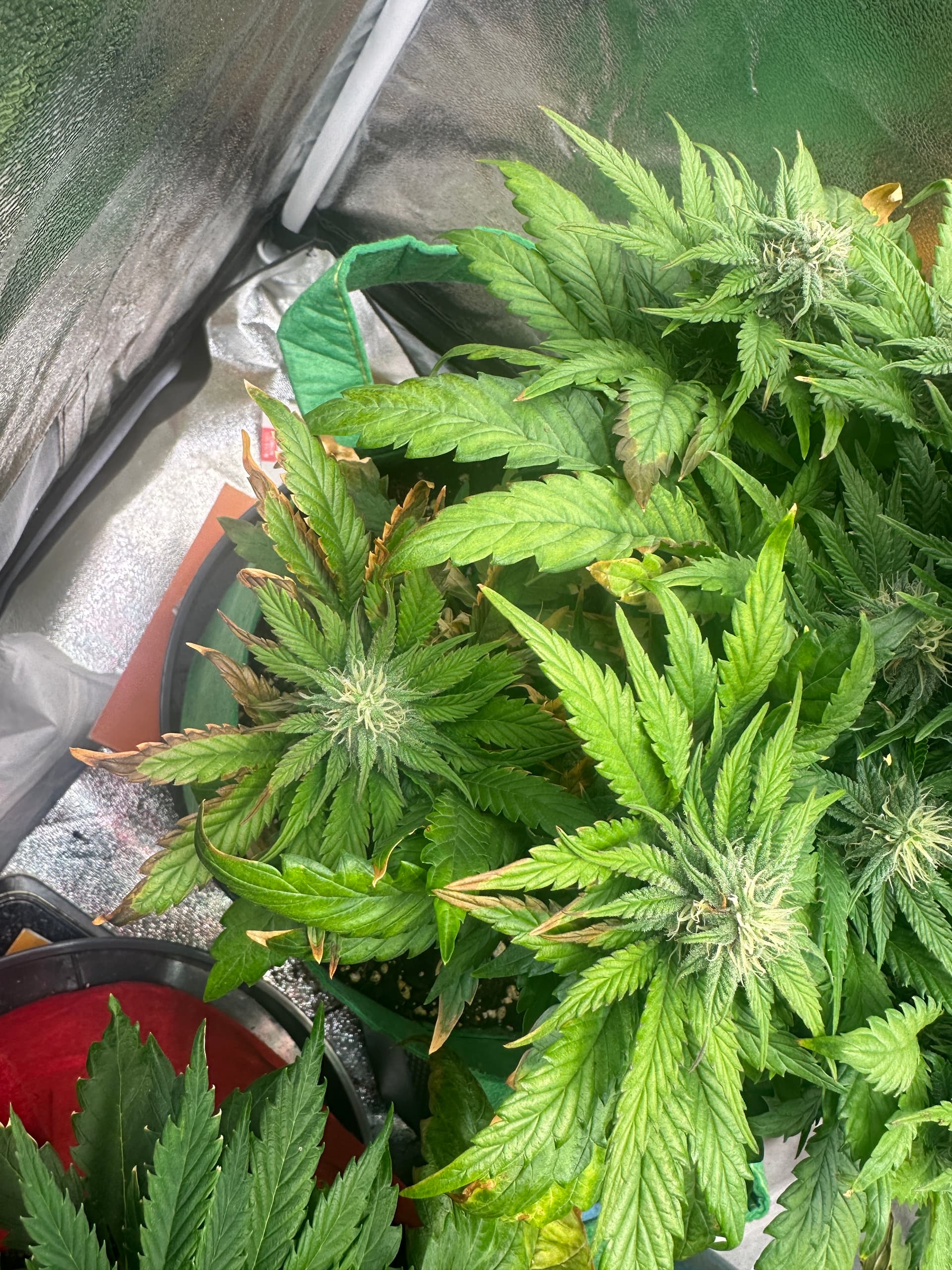 Ich hab hier eine purple haze in der Wachstumsphase. Sie hat sicherlich nicht die optimalen Bedingungen, mir geht es auch nicht um ein Maximum an Ausbeute… aber seit gestern hat sie ein Problem: die untersten Blätter biegt sie nach oben und diese sind sowohl von Struktur und Farbe nun anders. Ich denke es ist entweder Lichtstress oder Düngerbrand. Kann mir das jemand genauer identifizieren?