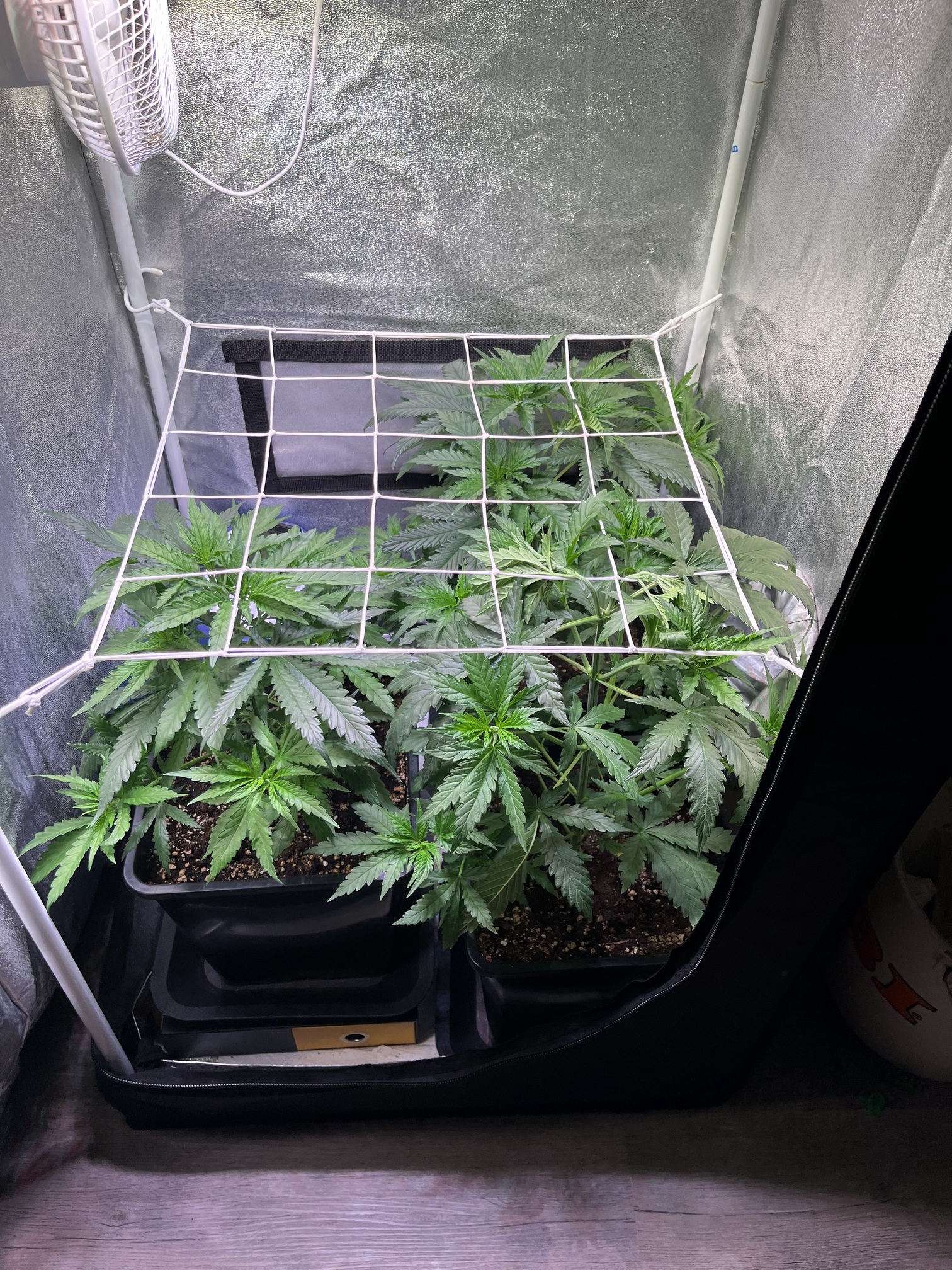Habe jetzt mit dem Scrog angefangen, da eine Pflanze kleiner ist als alle anderen sind jetzt 40 cm hoch, soll ich die Pflanzen noch ein wenig in die Höhe wachsen lassen und dass Netz höher einstellen oder jetzt schon anfangen ? Habe leider nur Platz in die Höhe für 120cm und will nicht dass sie hoch und weniger in die Breite wachsen.
