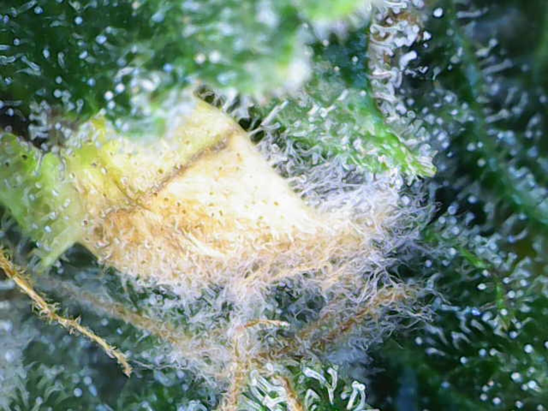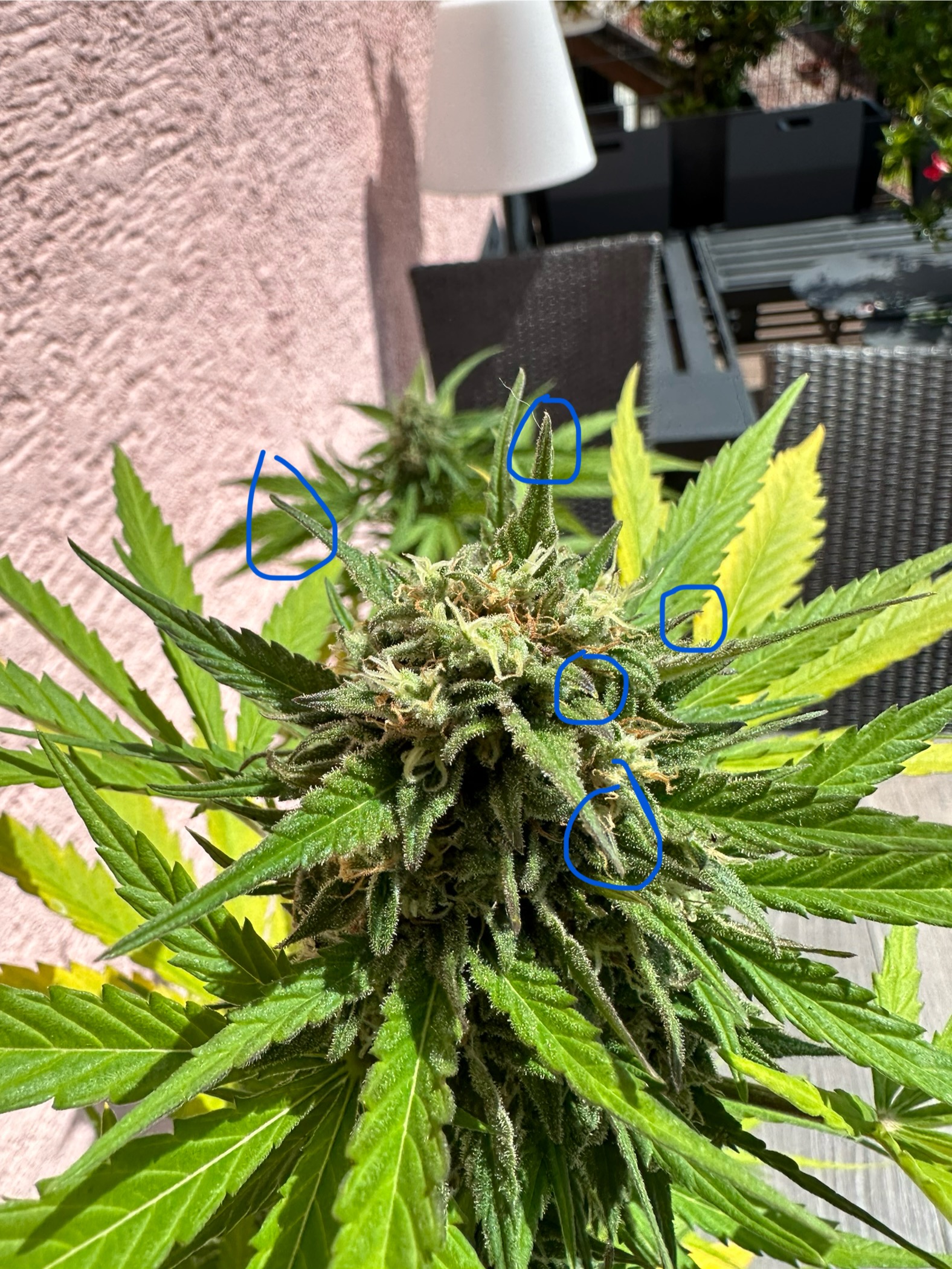 An den restlichen Blüten habe ich nichts entdeckt nur der Headbud ist betroffen… auch die Blattspitzen und Stiele sehen etwas mitgenommen aus…