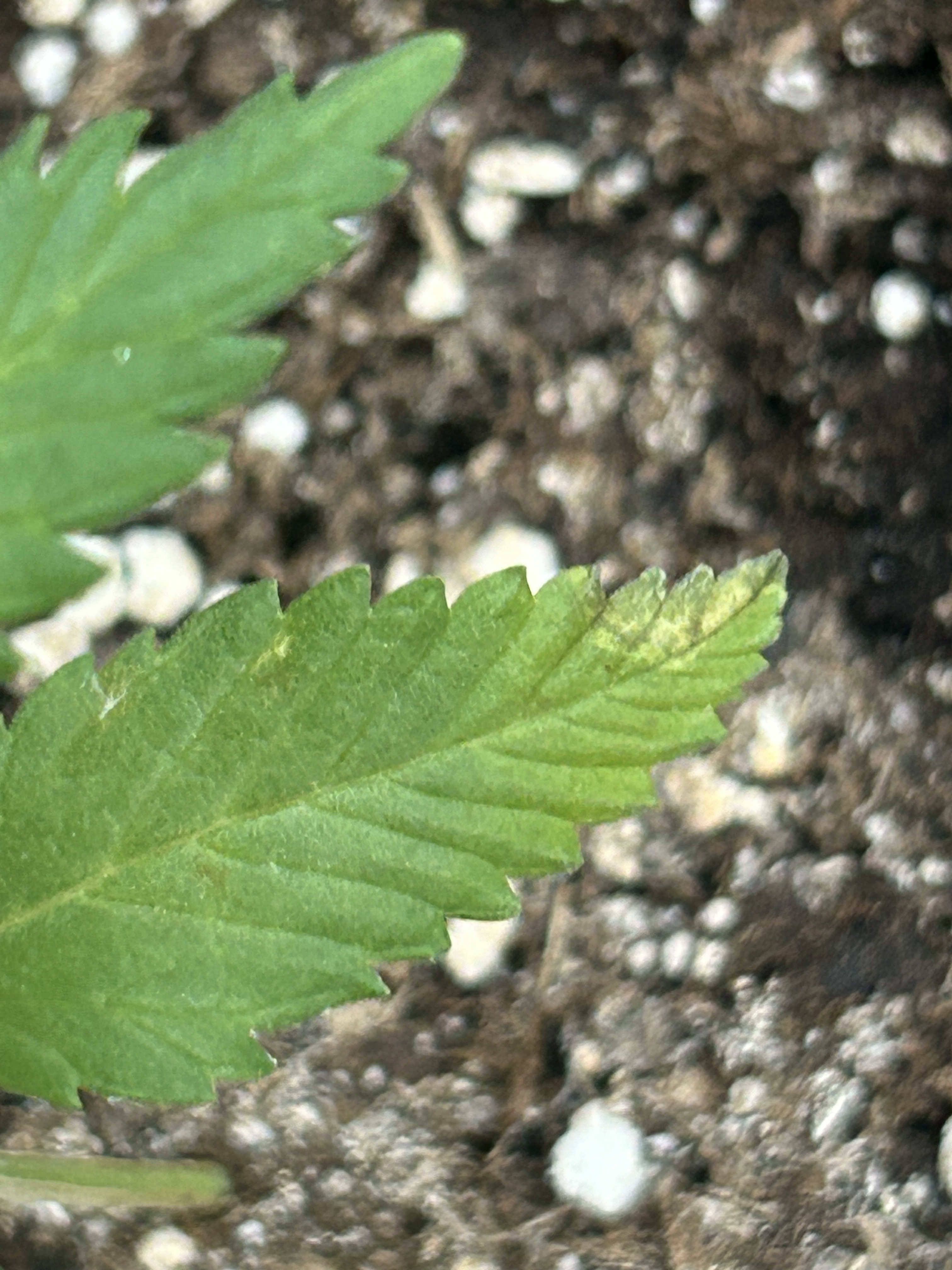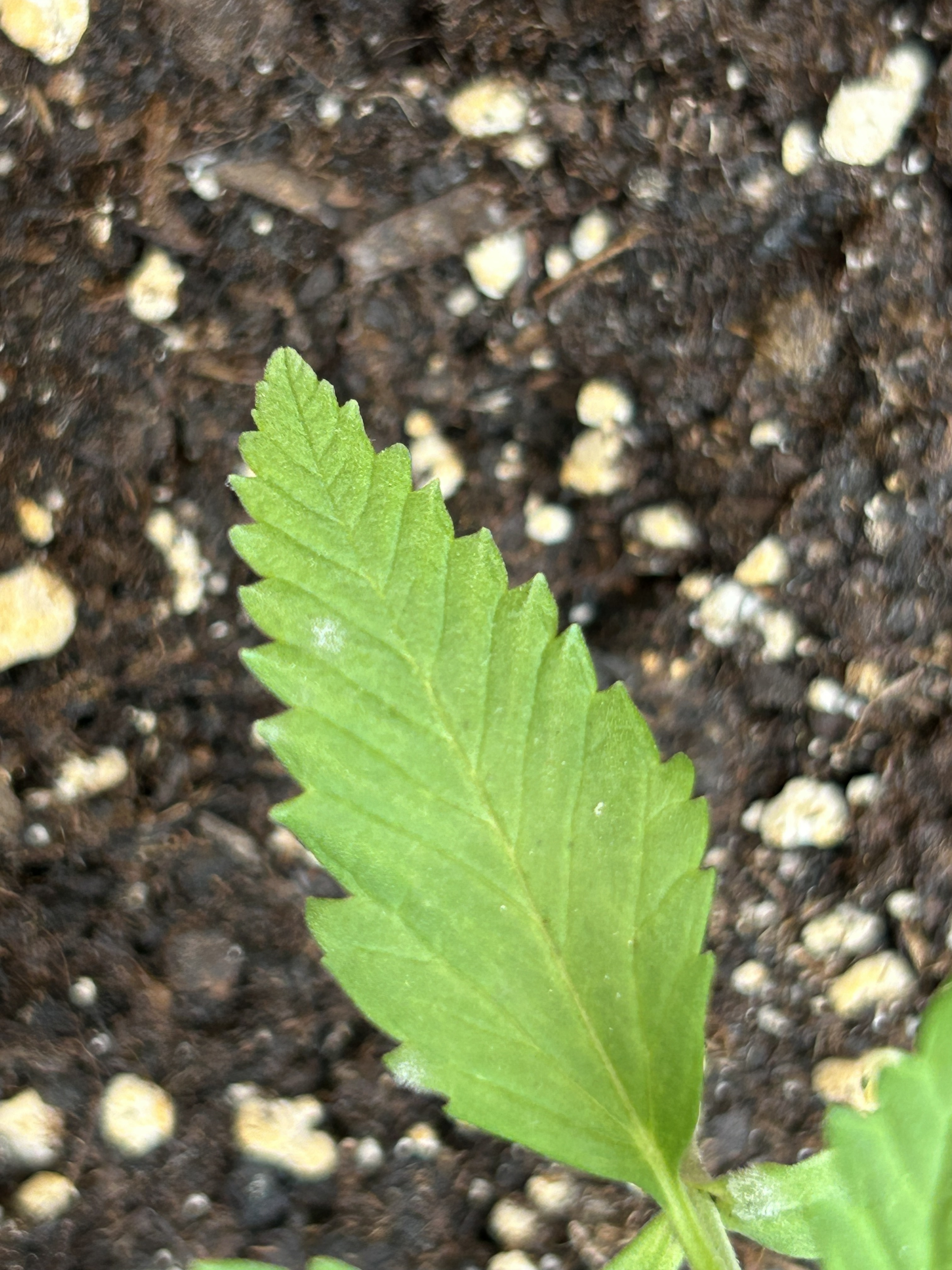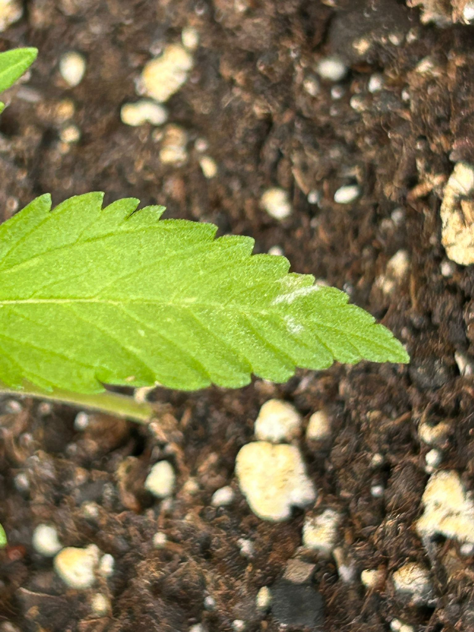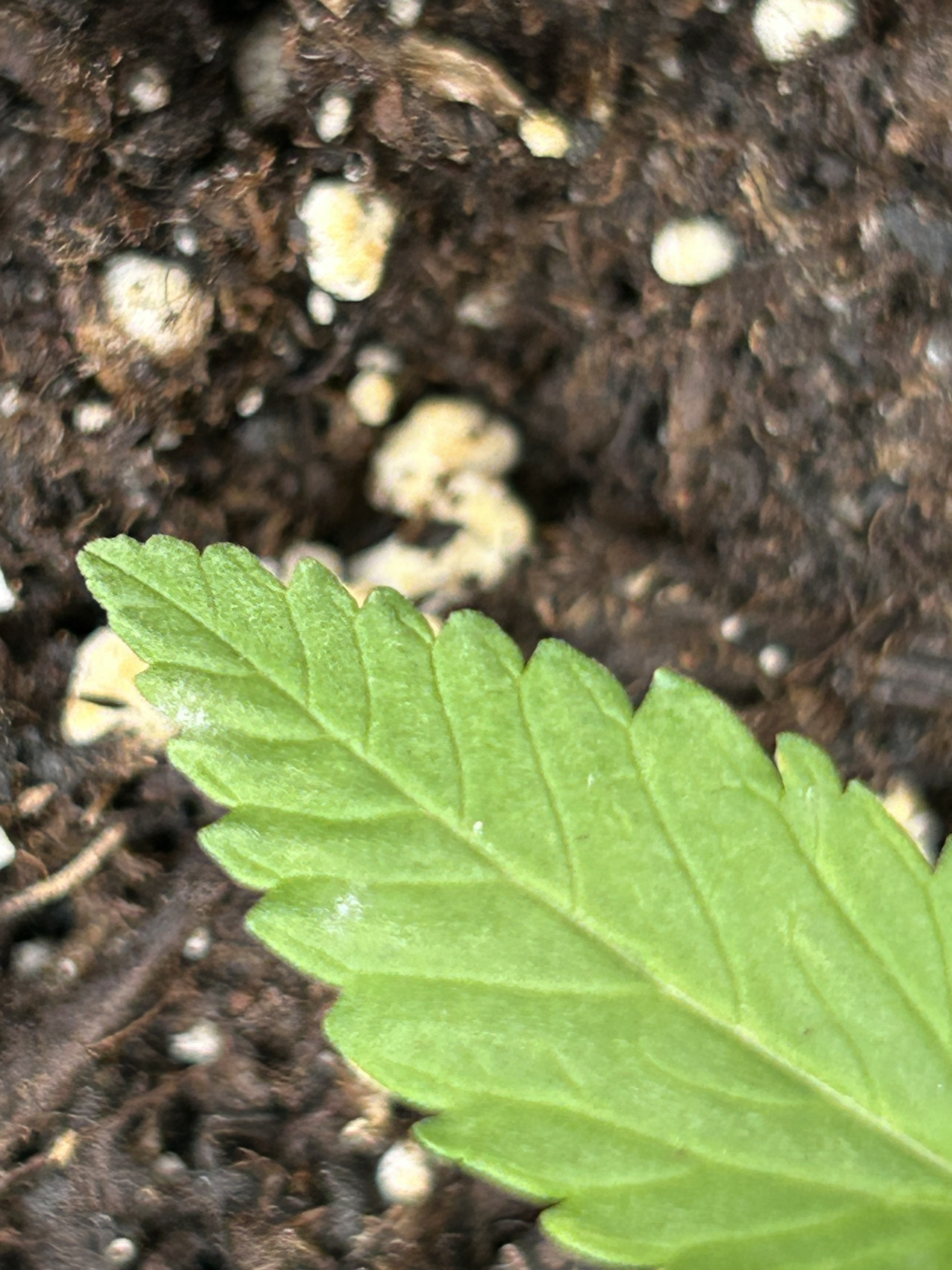 Vor 60h habe ich die kleinen aus den 11l Töpfen geholt und 3 Anzuchttöpfen entfernt. Dabei habe ich leider leichte Schäden an Wurzeln verursacht. Dann habe ich die Erde nochmal aufgefüllt (und mit Kölle Wurzelkraft gemischt (enthält NPK und Mykorrhiza als Feststoffdünger)) und die Töpfe erneut bewässert ca. 3l pro Pflanze (letzte Bewässerung war vor 10 Tagen 2.5l pro 11l Topf Anfang der VP). Seit 48h hängen die Köpfe (heute sehen sie bisschen besser aus) und seit heute Morgen habe ich weiße Flecken auf den Blättern entdeckt. Man kann sie mit einem feuchten Tuch ein bisschen abwischen, würde aber sagen, man bekommt nicht alles weg.