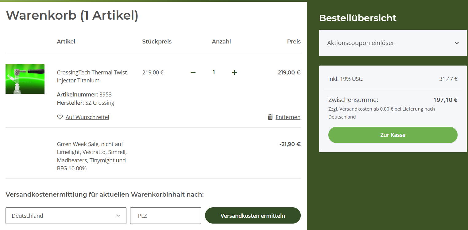 Moin, ich hoffe ich darf mich hier zu euch gesellen. Ist mein erster Beitrag hier im Forum, bisher war ich nur stiller Mitleser aber das Thema Vapo treibt mich im Moment um.