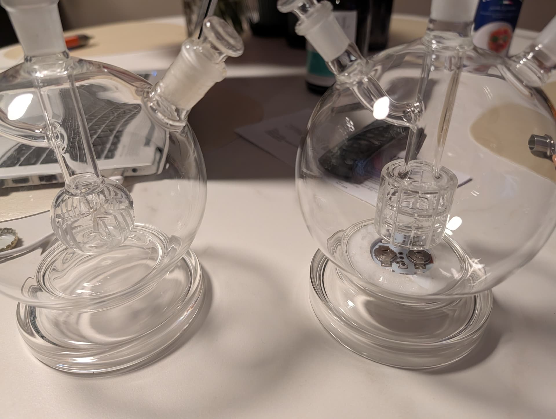 Ich habe mir den Metall-Einsatz geholt, weil ich öfter gelesen habe, dass er mehr Dampf/Wolken erzeugt, während Glas angeblich mehr Geschmack bringt. Ehrlich gesagt konnte ich aber keinen großen Unterschied feststellen.