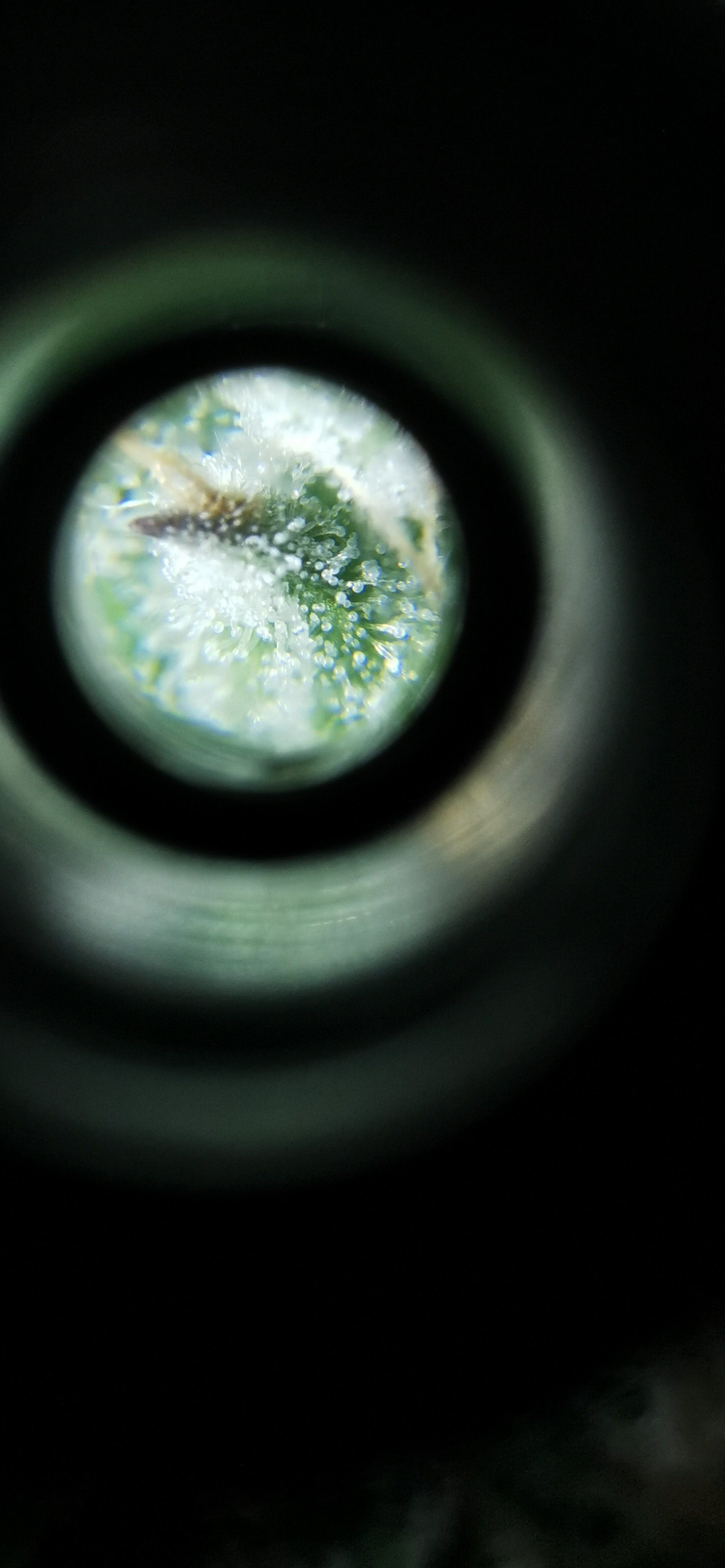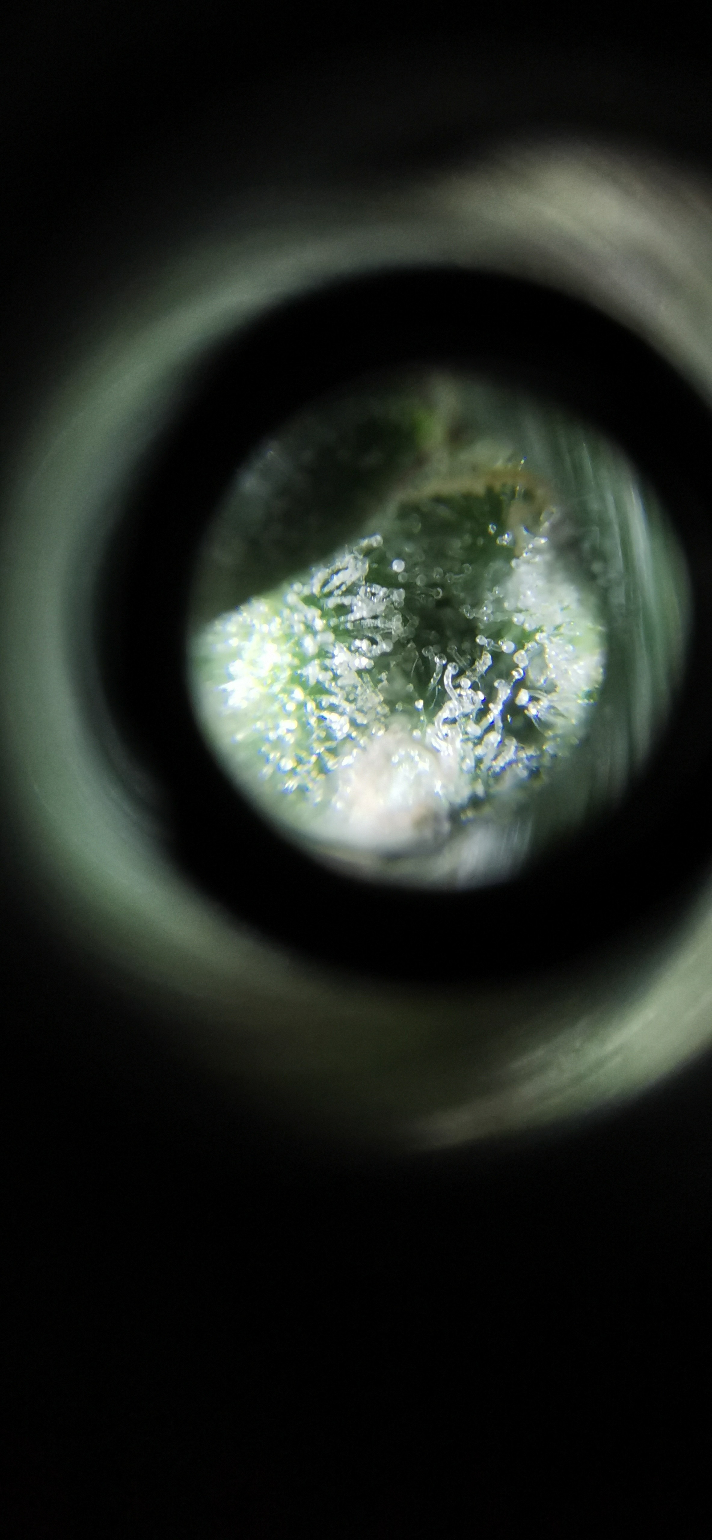 Werde vermutlich noch 4-5 Tage warten. Gibt nur selten und vereinzelt bernsteinfarbene Trichome.