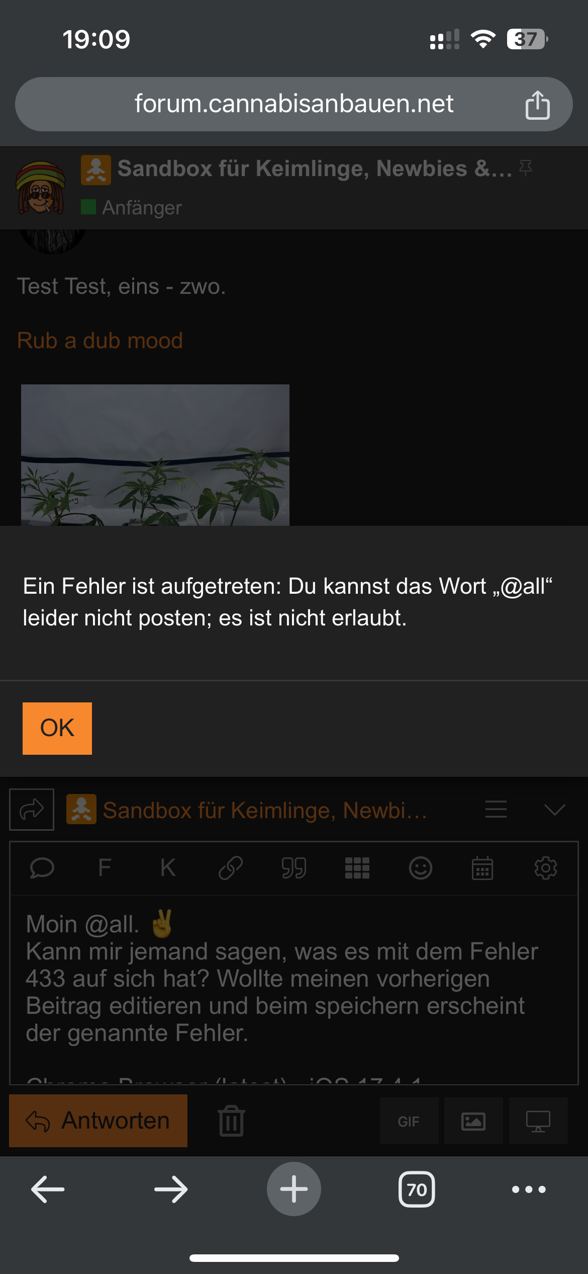 Edit: Hm, jetzt funktioniertâs. Es könnte sein, dass ich oben ein @ all (ohne Leerzeichen) im Beitrag hatte. Dieses mal kam nĂ€mlich eine aussagekrĂ€ftigere Fehlermeldung: