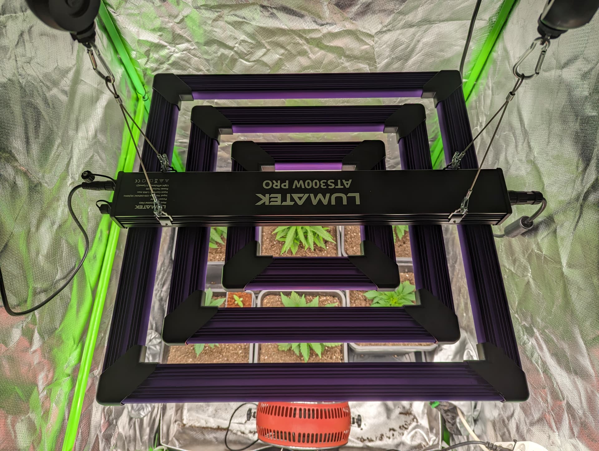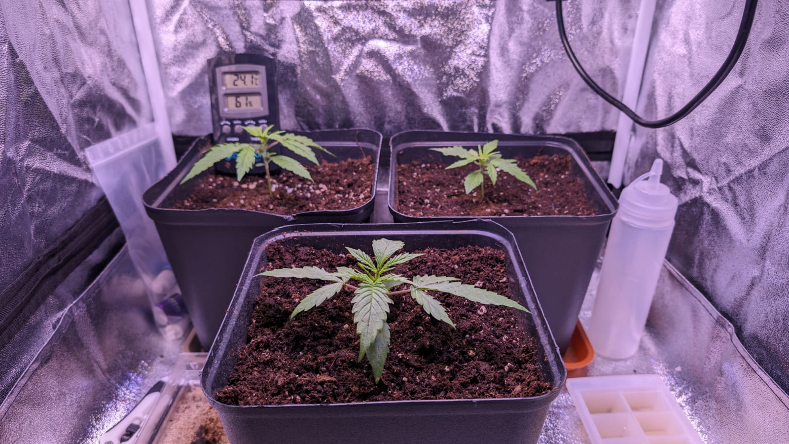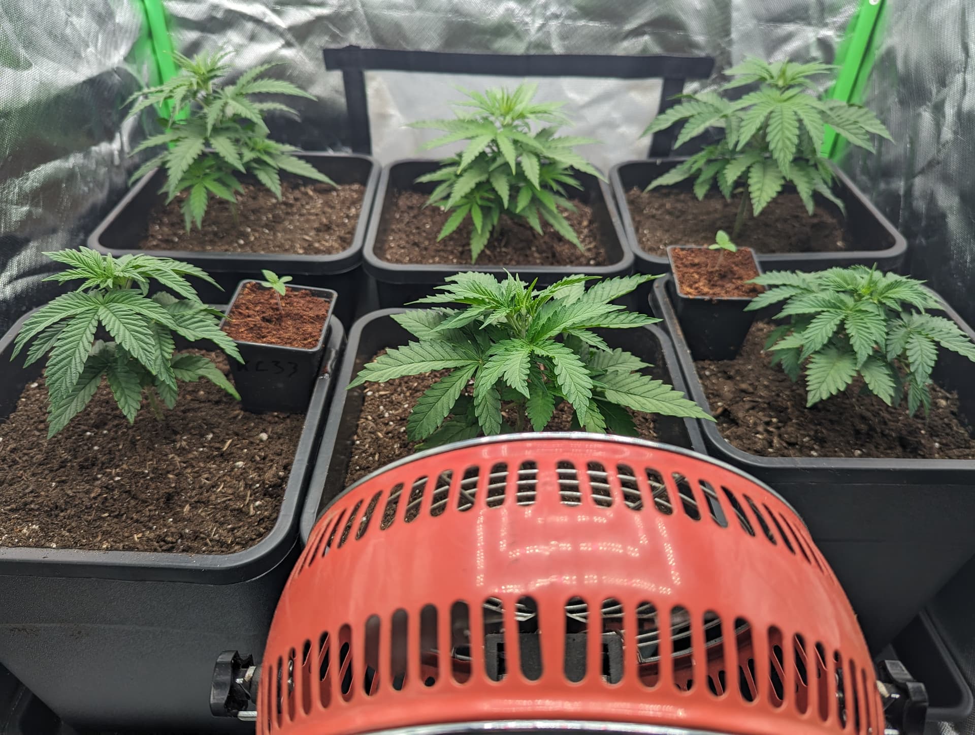 Da ich noch einen Neuling Status habe, Teaser ich euch mal meinen Multi-Straingrow an. Lampe hab ich mir ne Lumatek ATS 300W Pro gegönnt, Growzelt 80x80x180 Abluft ist ein etwas Ă€lterer LĂŒfter ca. 250l/h mit Prima Klima AKF passend dazu, LĂŒfter ist im Zelt saugend mit dem AKF ĂŒber ein Schallisoliertes Rohr verbunden. Töpfe 11L momentan, zwei mal umgetopft erster Topf 0,5l zweiter 3,5l aktuell. Keimung war Tuchkeimung. Kommen wir zu den Sorten links vorne Dosidos (Bulk Seedbank), links hinten Lime Skunk (Bulk Seedbank), mitte vorne Indica Cream (Kannabia), mitte hinten Tropicanna Cookie (Linda Seeds), rechts vorne Apple Fritter (RQS) und rechts hinten Glookies (Barneys Farm).