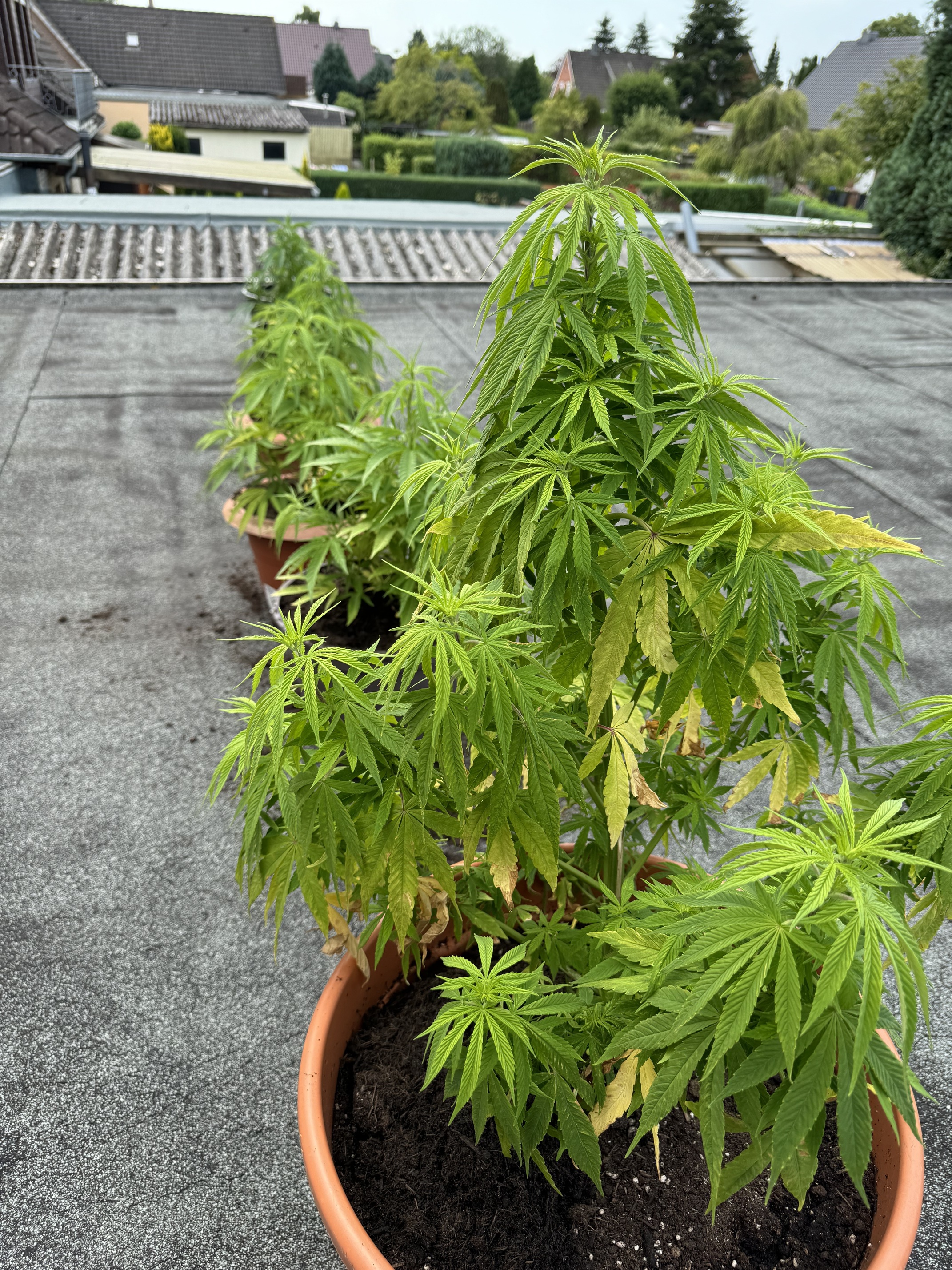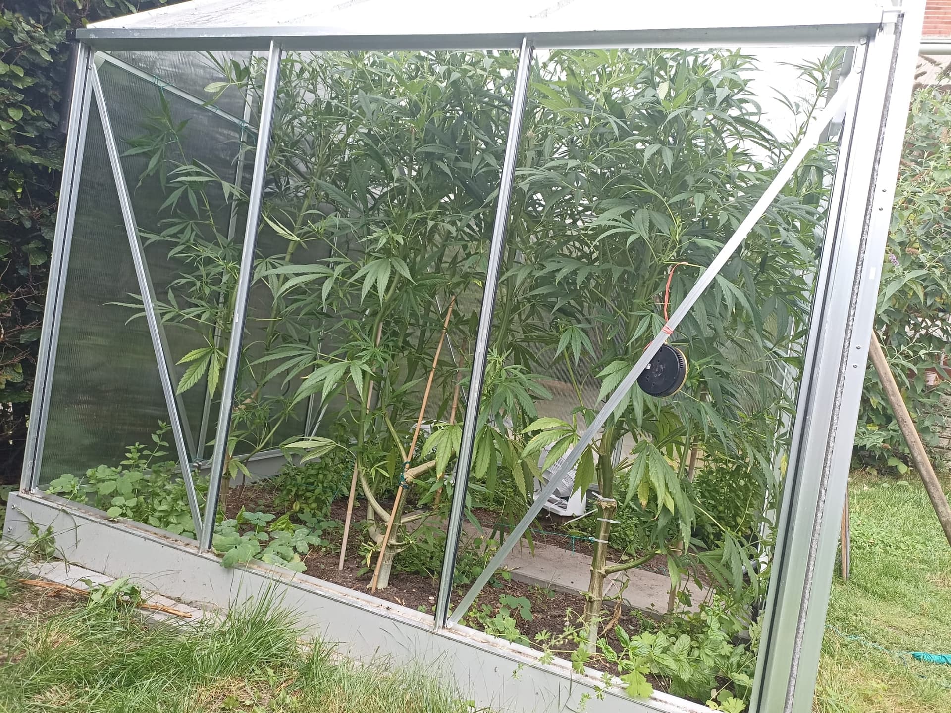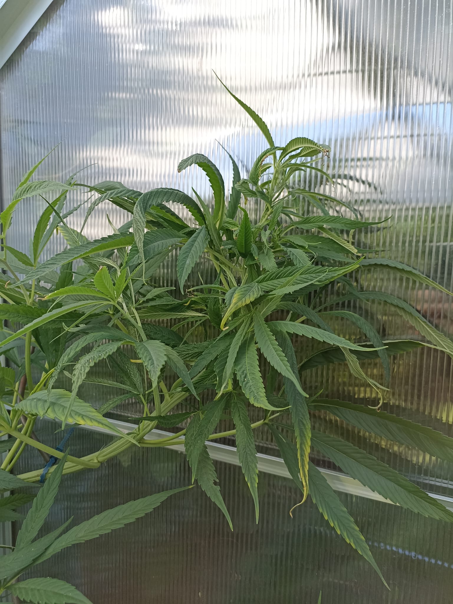 Das mit dem Wind und Wetter ist nun das geile am Gewächshaus. Wir hatten hier dies Jahr auch schon ein paar Gewitter, die bei den Pflanzen großen Schaden hinterlassen hätten. Das Hochbeet mit Salat etc. war ordentlich verwüstet. Bei den 3 werde ich bestimmt noch ein paar Kürzungen oder so durchführen, damit alles irgendwie luftig und ab einem gewissen Zeitpunkt genug Platz für die Ventilatoren bleibt. Und da mein bisheriger Konsum bisher ca. 20 gr pro Jahr betrug, muss die Ernte eigentlich auch nicht so fett ausfallen (was ich nicht verdampfen kann, kommt dann in Schnaps