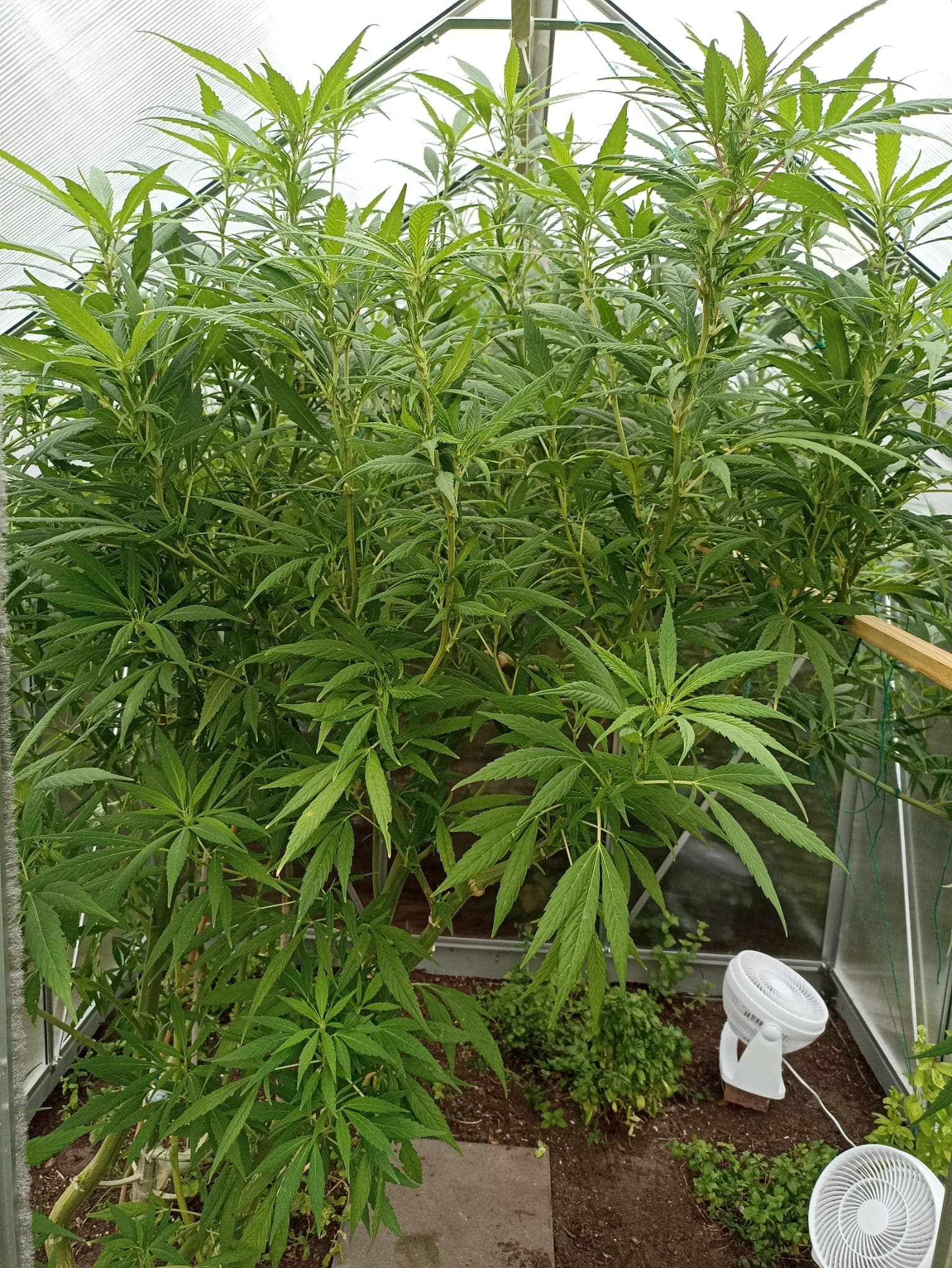 Die hinterste Pflanze musste aufgrund von low performance ausziehen und gesellt sich nun zur Kompostqueen. Die hinkt allerdings bei der Blüte noch etwas hinterher
