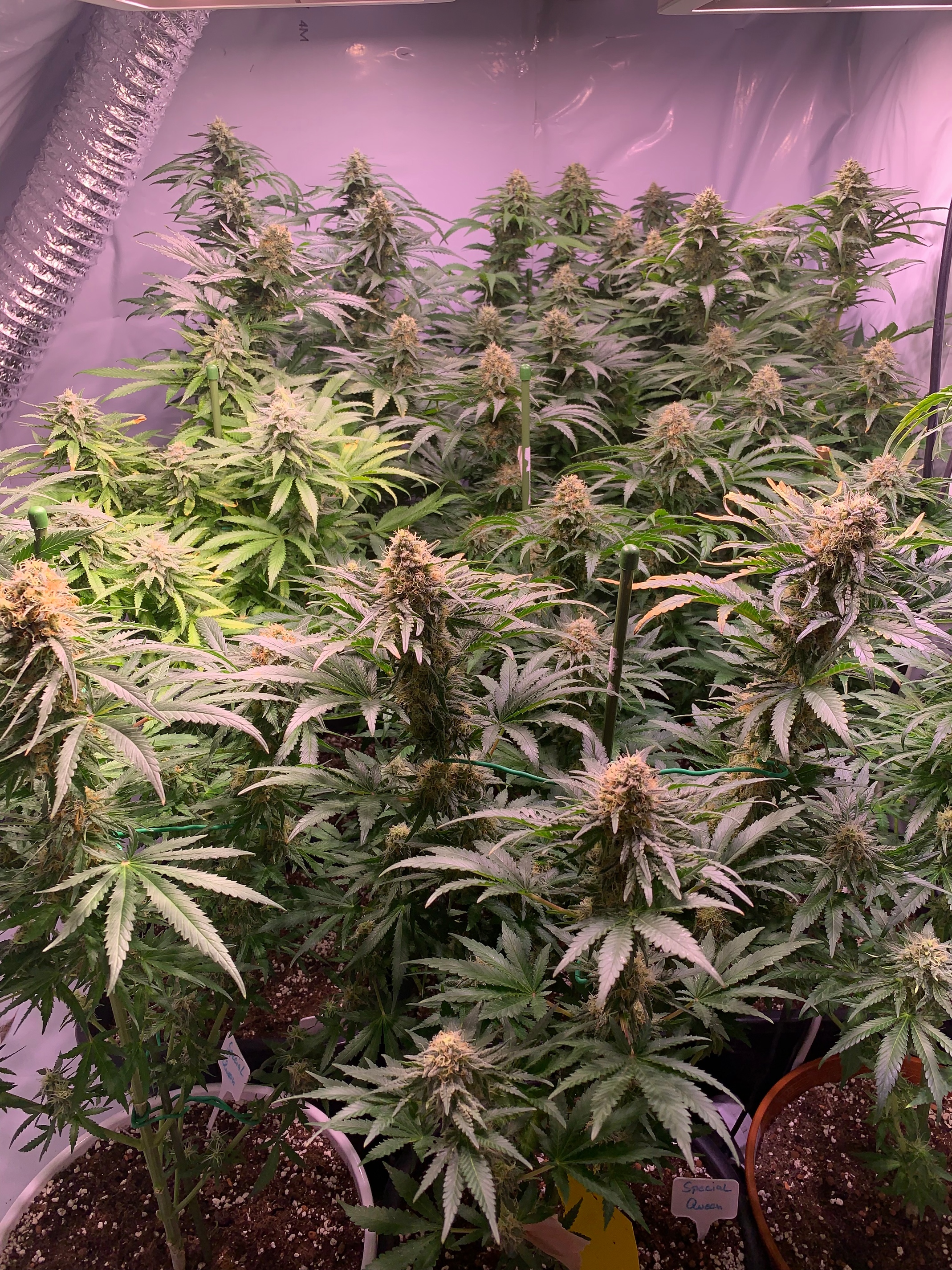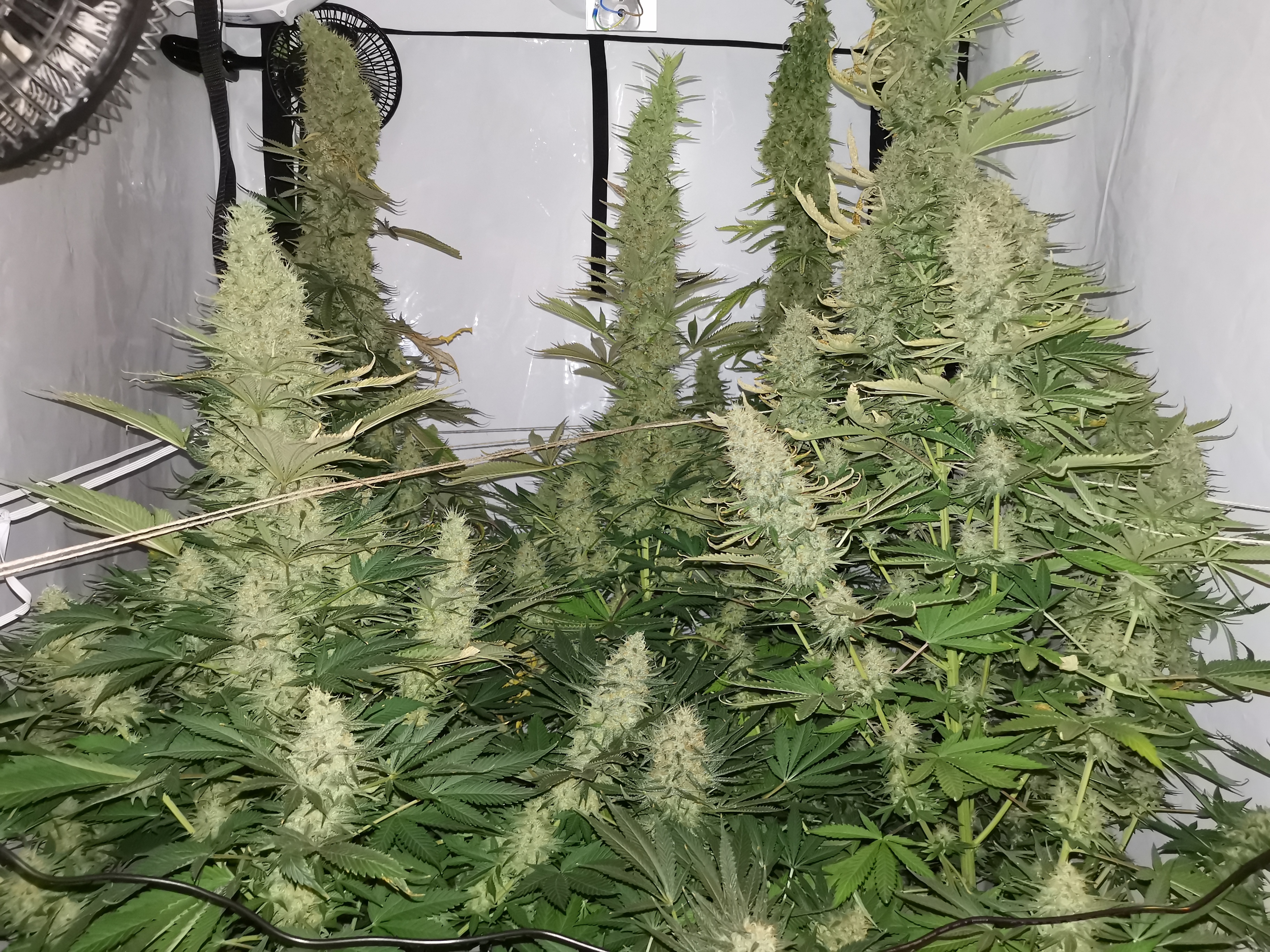 Ich hab süße Probleme. Jetzt in der letzten Phase werden die Buds meiner Damen zu schwer für die Äste und ich muß sie gegenseitig unterstüzen sonst liegen sie in der Wagerechten. Hatte auch beim letzten Grow die selben Probleme…doch wie gesagt es sind süße Probleme.