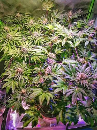 Hier sehen wir den beachtlichen ScroG eines Growers in einer 90×90 cm Growbox. Angebaut wurden 4 Black Domina, die Topfgröße ist leider nicht bekannt. Beleuchtet wurde mit Bloomstar und Hydroca LED. Das Ergebnis kann sich sehen lassen. Ein sehr schöner ScroG. Der Ertrag wurde leider nicht angegeben, es dürfte aber beachtlich gewesen sein.