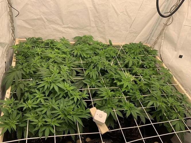 Da Cannabispflanzen nach Einleitung der Blütephase einen Wachstumsschub erhalten, sollte ca. 80 Prozent des Netzes vor Einleiten der Blüte gefüllt sein. Die restlichen 20 Prozent wachsen während des Stretch in den ersten ein bis zwei Blütewochen zu. Ist das Netz zu voll, können sich die Pflanzen gegenseitig behindern und der gewünschte Effekt ist dahin. Lässt man das Netz nicht voll genug wachsen, nutzt man die vorhandene Fläche nicht optimal, was sich natürlich negativ auf den Ertrag auswirkt.