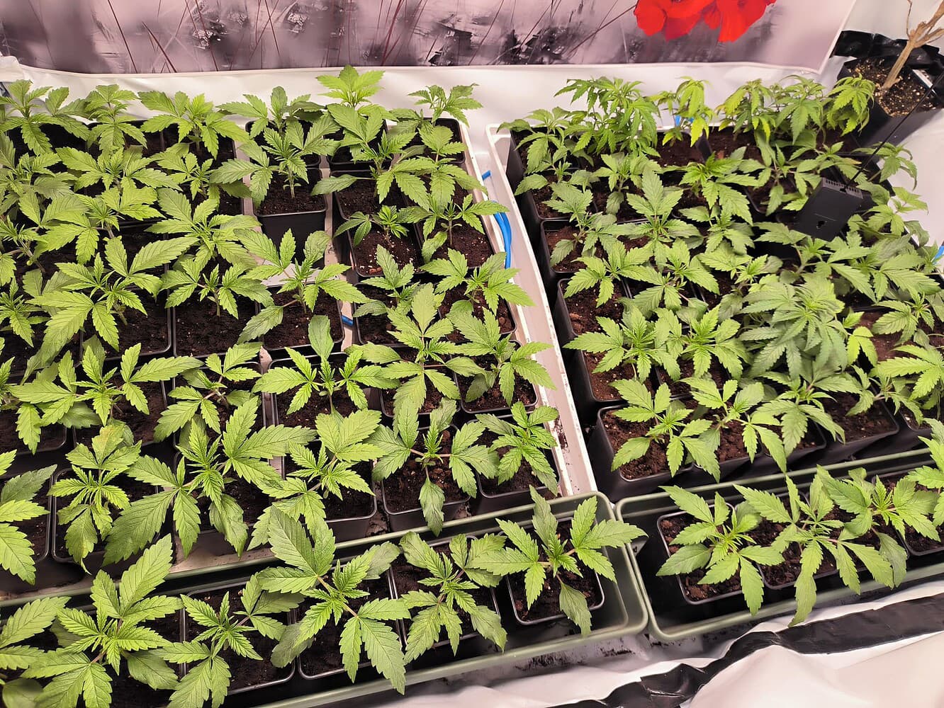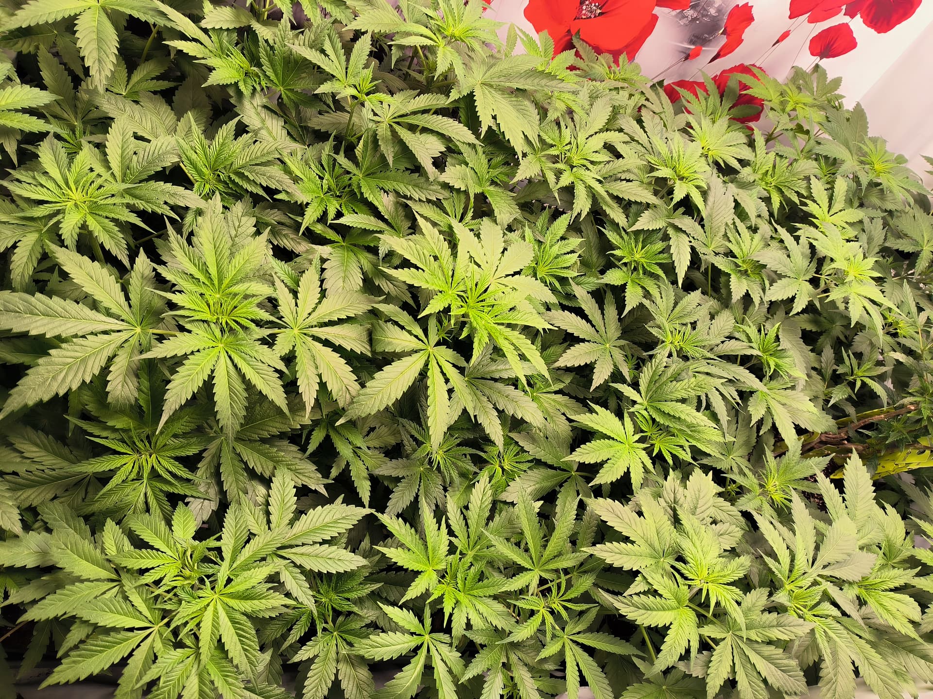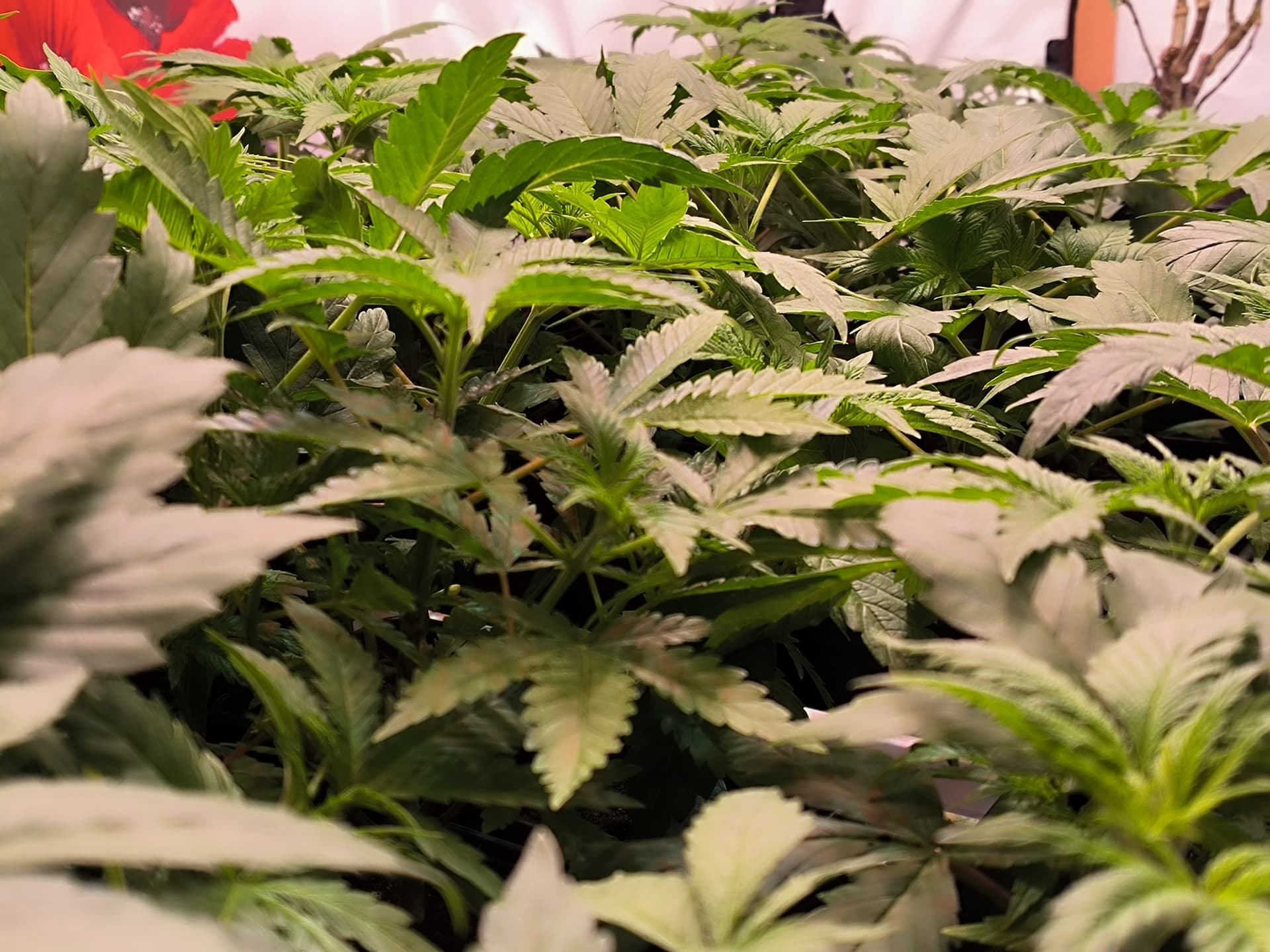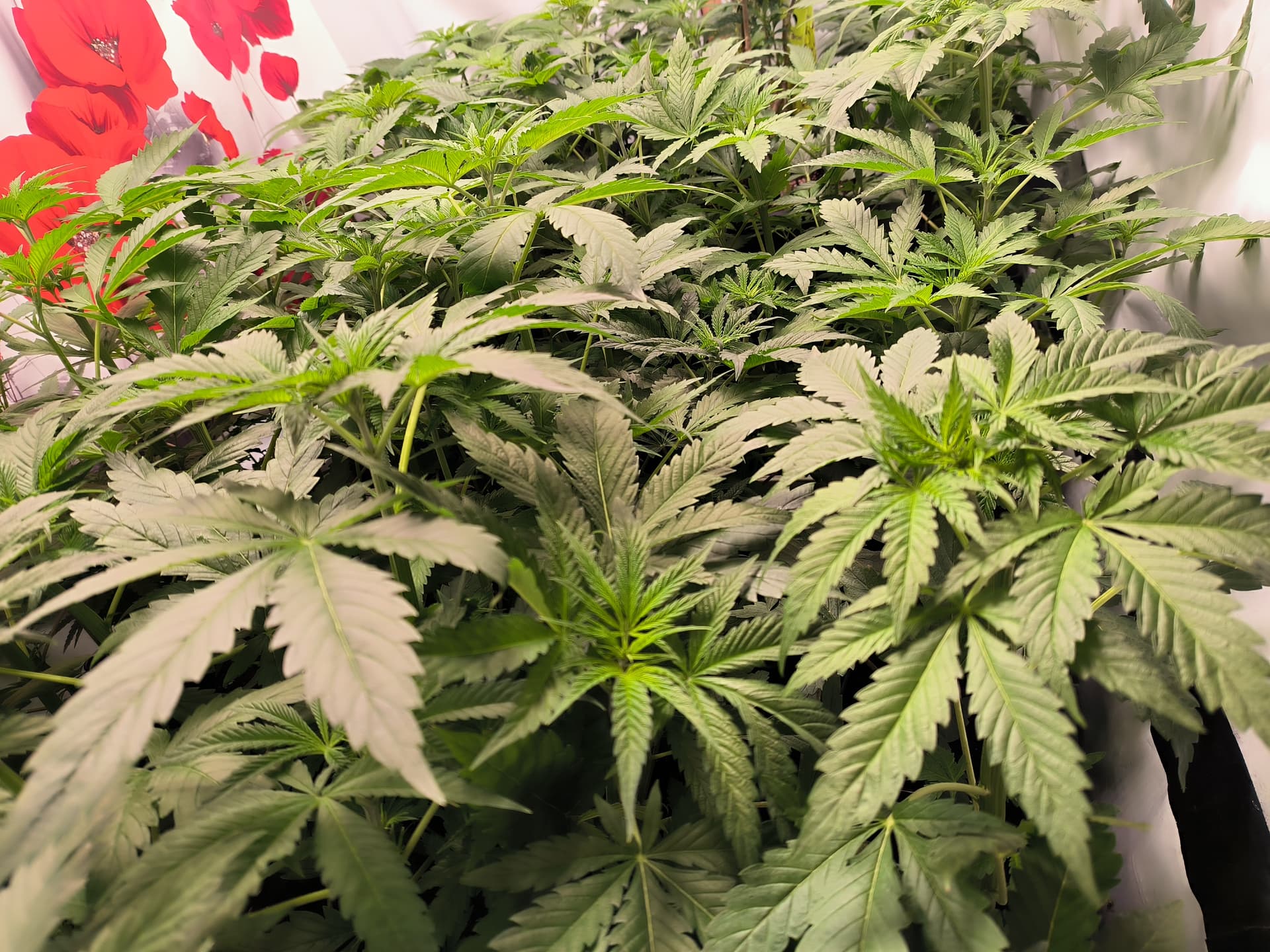 Bis Tag 14 geb ich noch rot und dann finde ich es mehr wie ausreichend da man ja nun schon fast durch die Pflanzen durchschauen kann.
