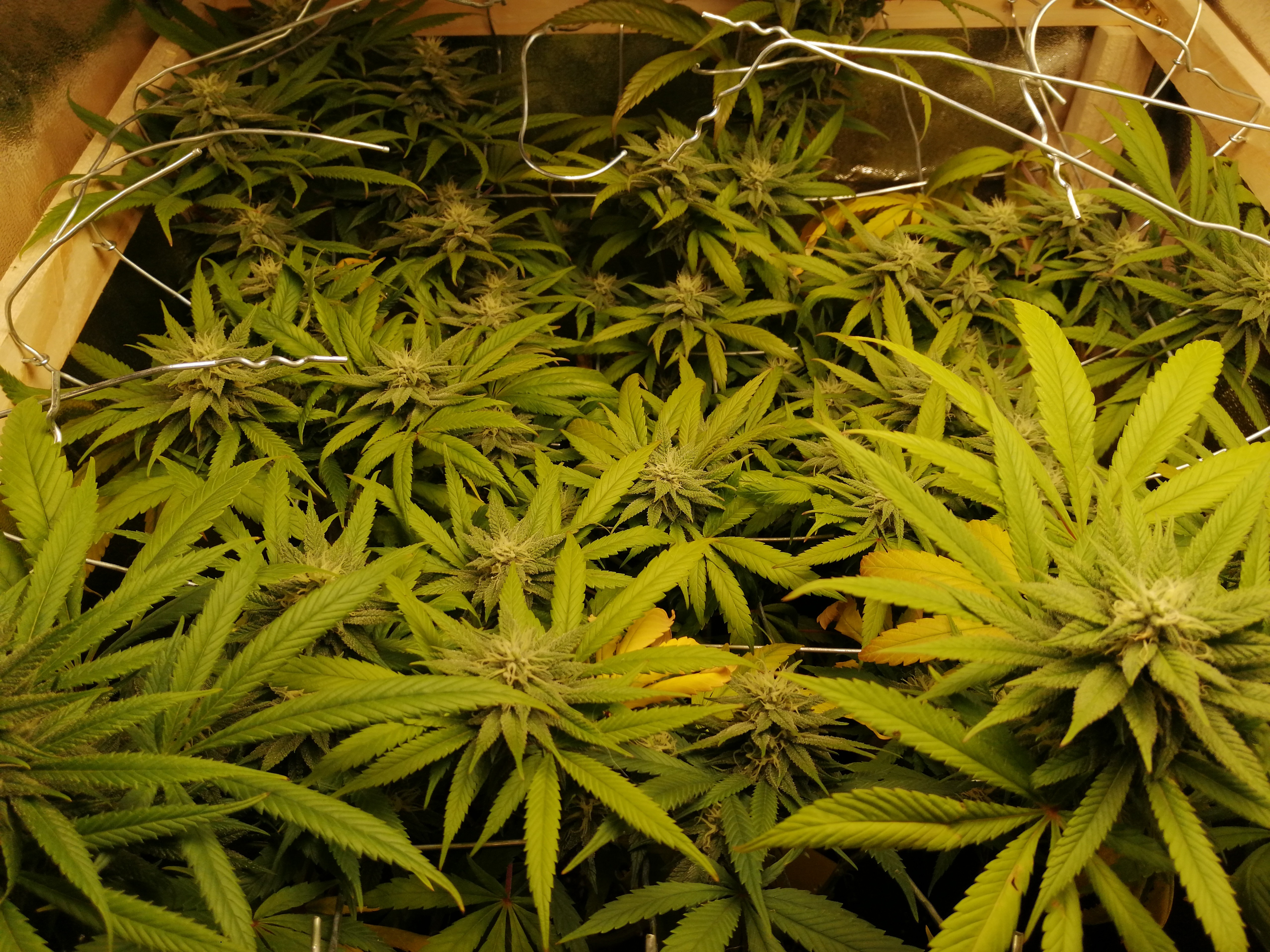 Es ist eine Fehlannahme zu denken ein Scroghilfsmittel müsste immer da sein,nach einer Weile sind die Pflanzen so drann gewöhnt das man etliche Hilfsmittel wieder lösen kann,auch du kannst deine Scrogkonstruktion locker wegholen,wirst sehen da passiert nicht viel.