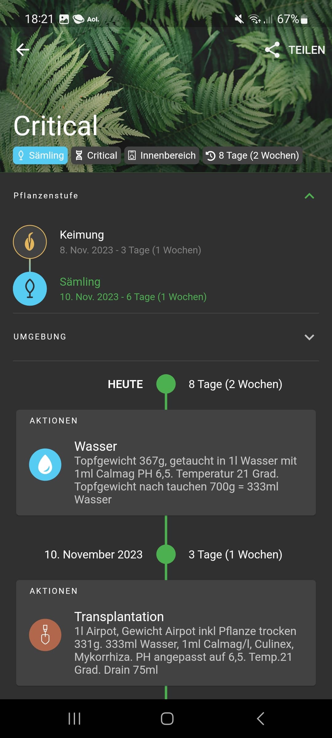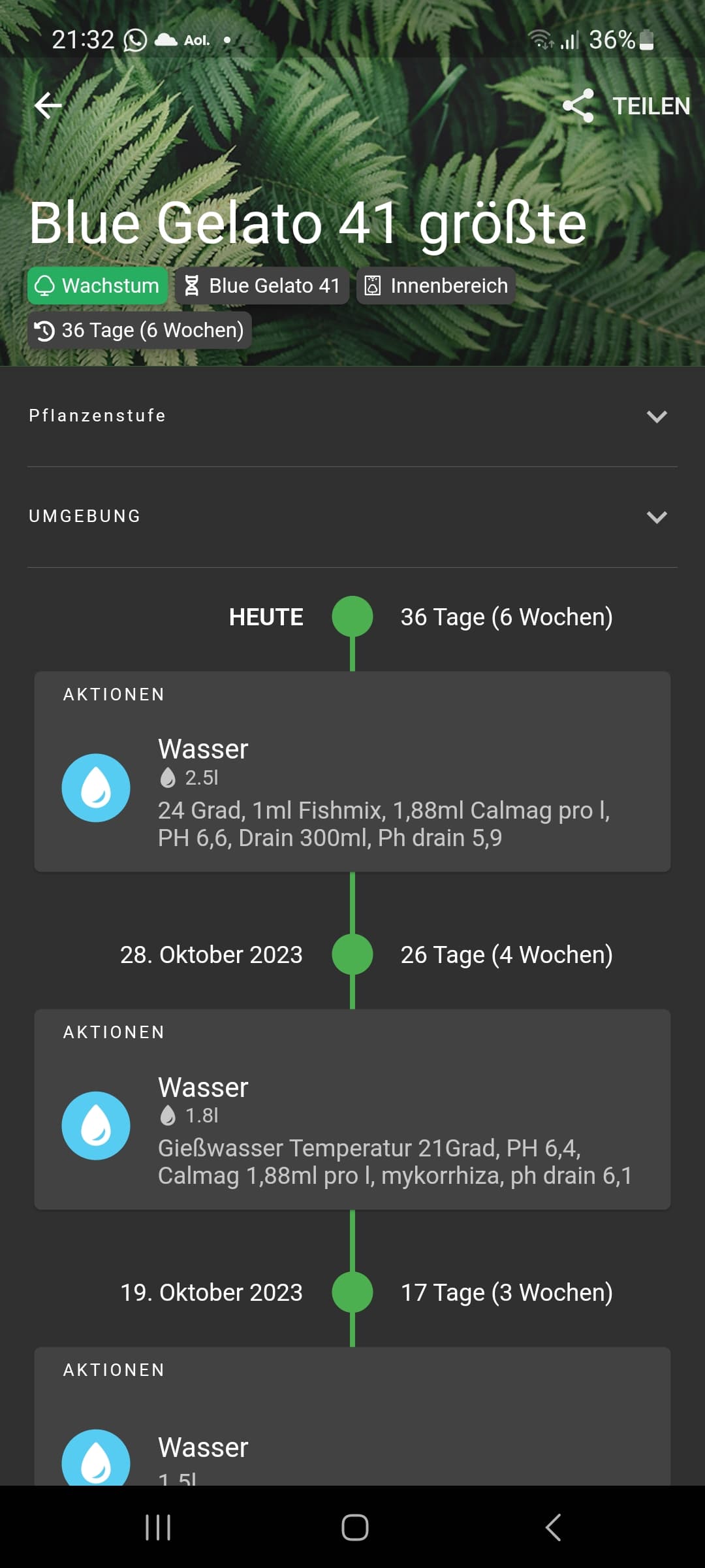 *Bewässerung: Wasser direkt aus der Leitung, Temperatur zwischen 21 und 25 Grad , PH angepasst auf ca 6,5, 1\3 Regel, gegossen wird erst wenn der Topf sehr leicht geworden ist und nach Wiegen