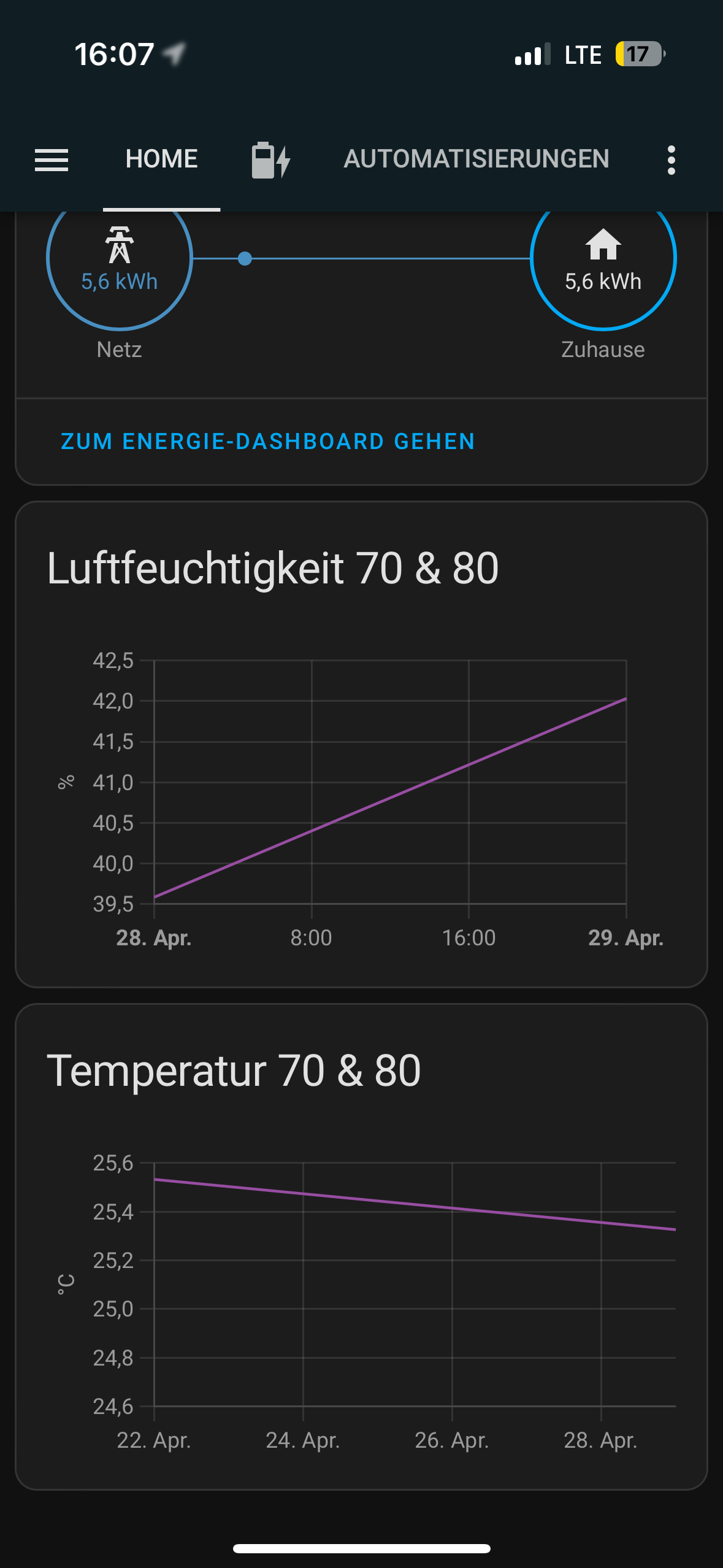 - Messung und Darstellung als Graph möglich, jedoch reicht mein WLAN in dem Raum nicht aus, um ein stabiles Signal zu ermöglichen (Fritz Powerline ist auf dem Weg)