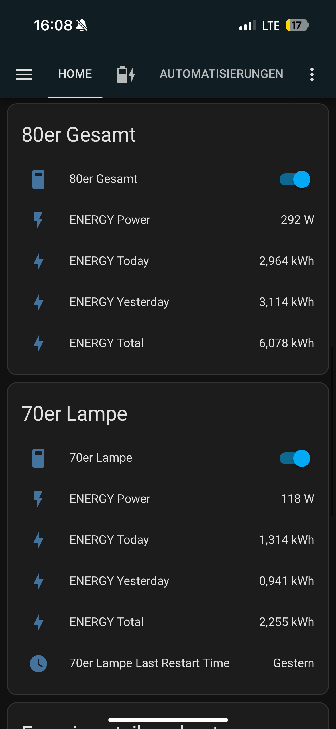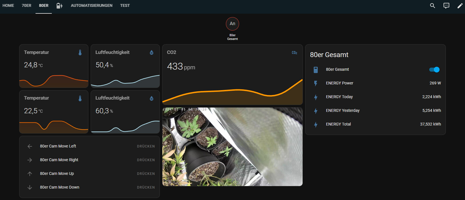 - 3/4 Smart Steckdosen integriert und Gesamtverbrauch meines 70x70 Setups, Gesamtverbrauch meines 80x80 Setups und Lampenverbrauch der 250W Lampe aus dem 80x80er Zelt eingestellt (Die 4. Steckdose funktioniert leider nicht)
