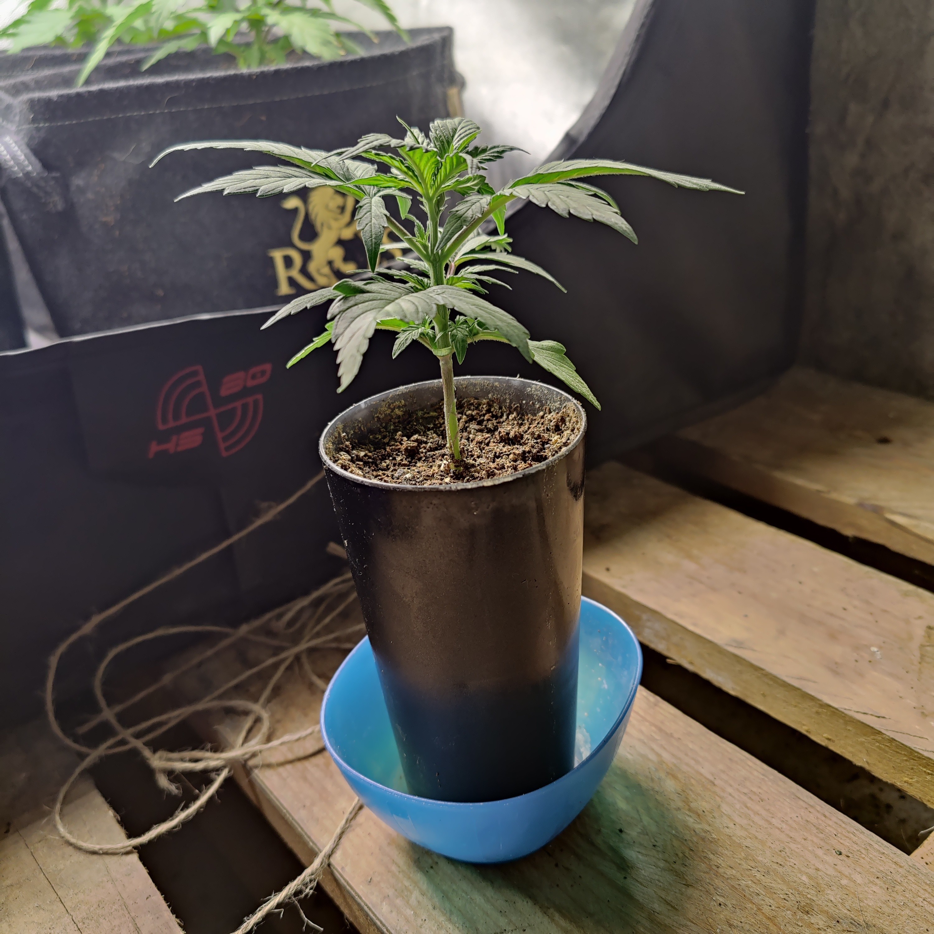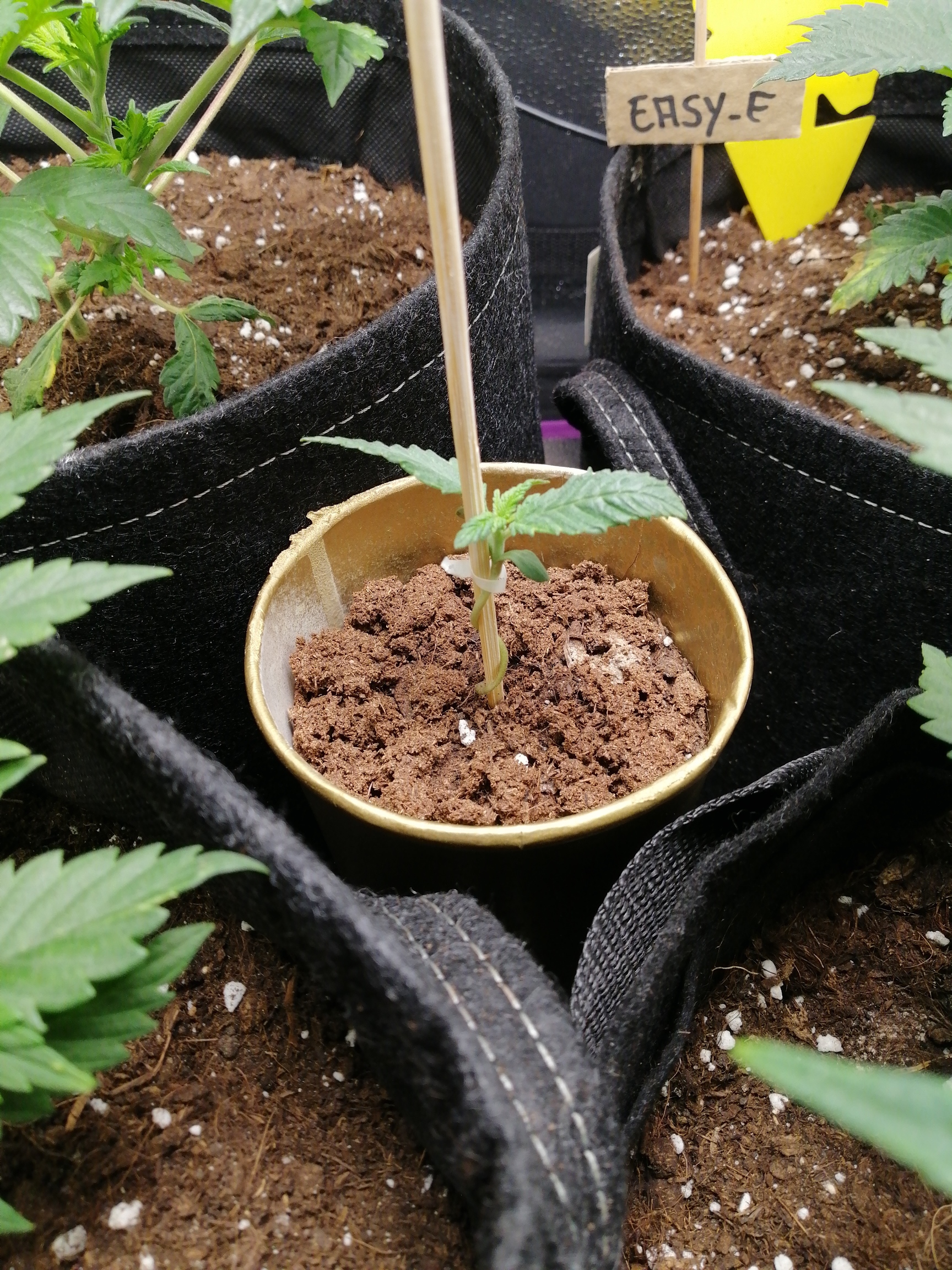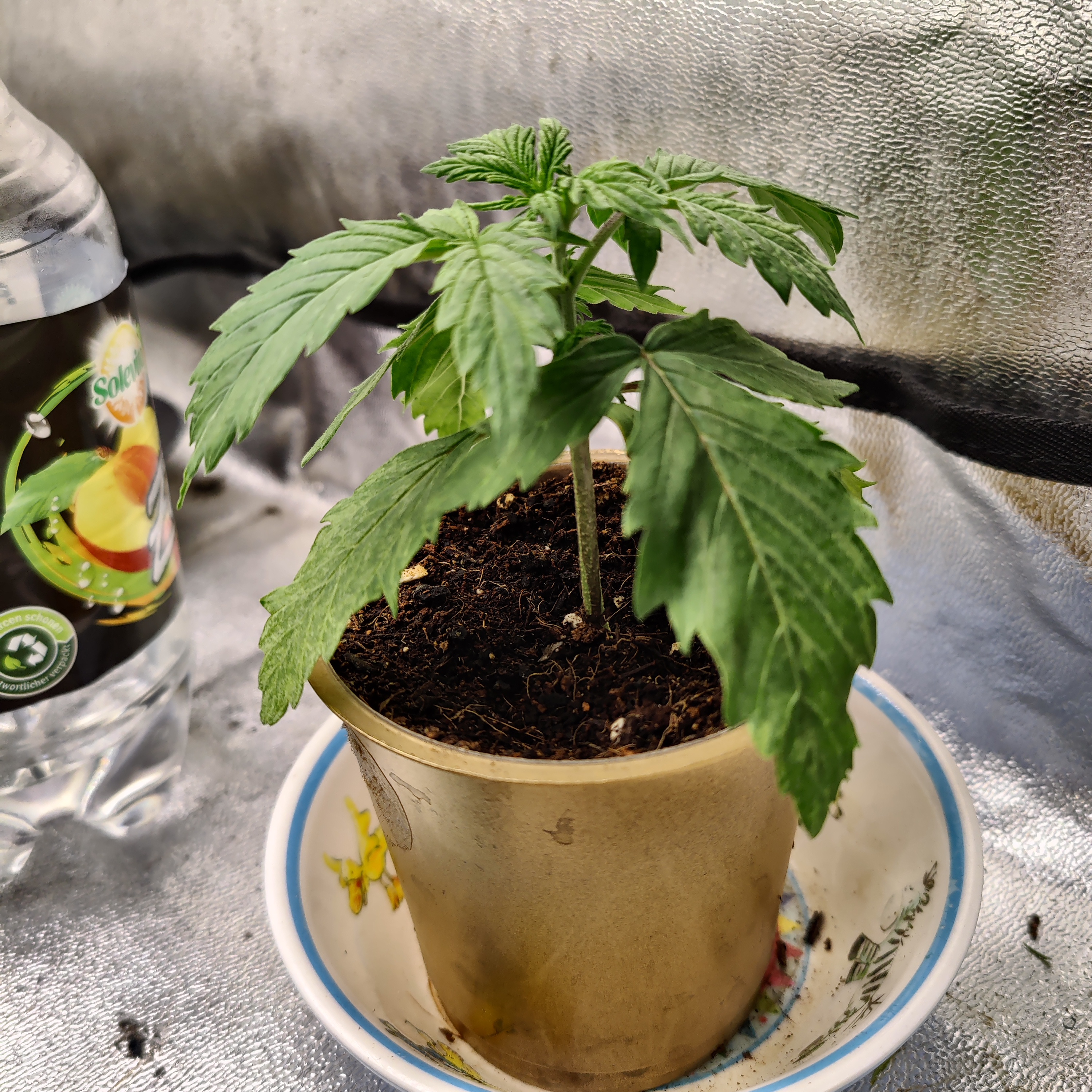 Dritte Woche nun für die 24k, momentan gefällt sie mir aber nicht so gut. Wirkt schon ziemlich klein für Tag 15, und überwässert sieht sie auch aus. Die Erde hält deutlich besser als das Coco in der letzten Runde.