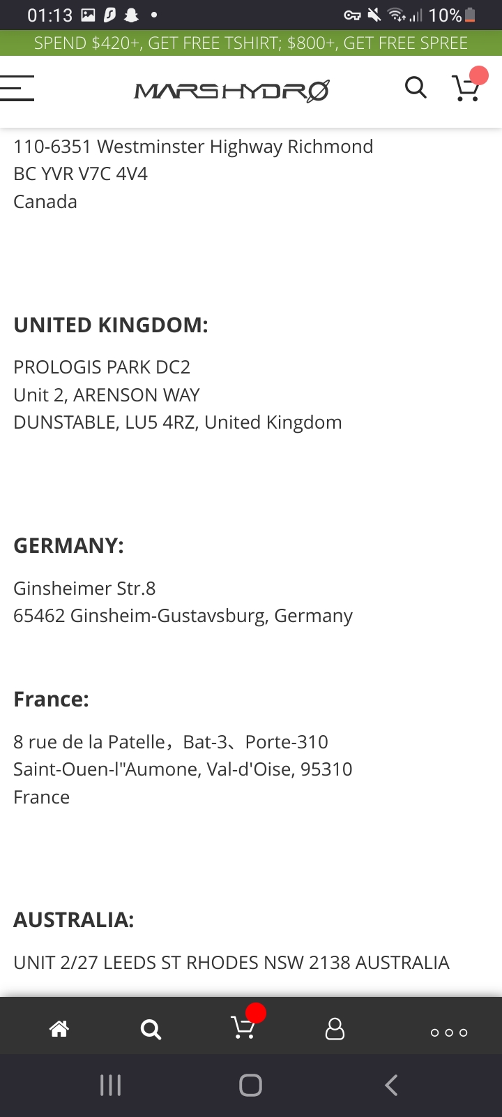 Ich habe eine UV-Leiste bei Mars Hydro und ein DWC Pot System von Spider Farmer bestellt, beide auf den jeweiligen EU-Websites.