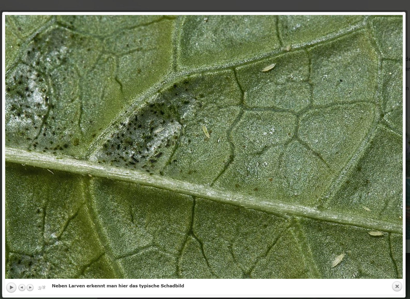 An fünf von sieben Pflanzen konnte ich einen Befall feststellen. Betroffen sind auschließlich Blätter im unteren oder mittleren Bereich. Je Planze sind einzelne/wenige Blätter betroffen.