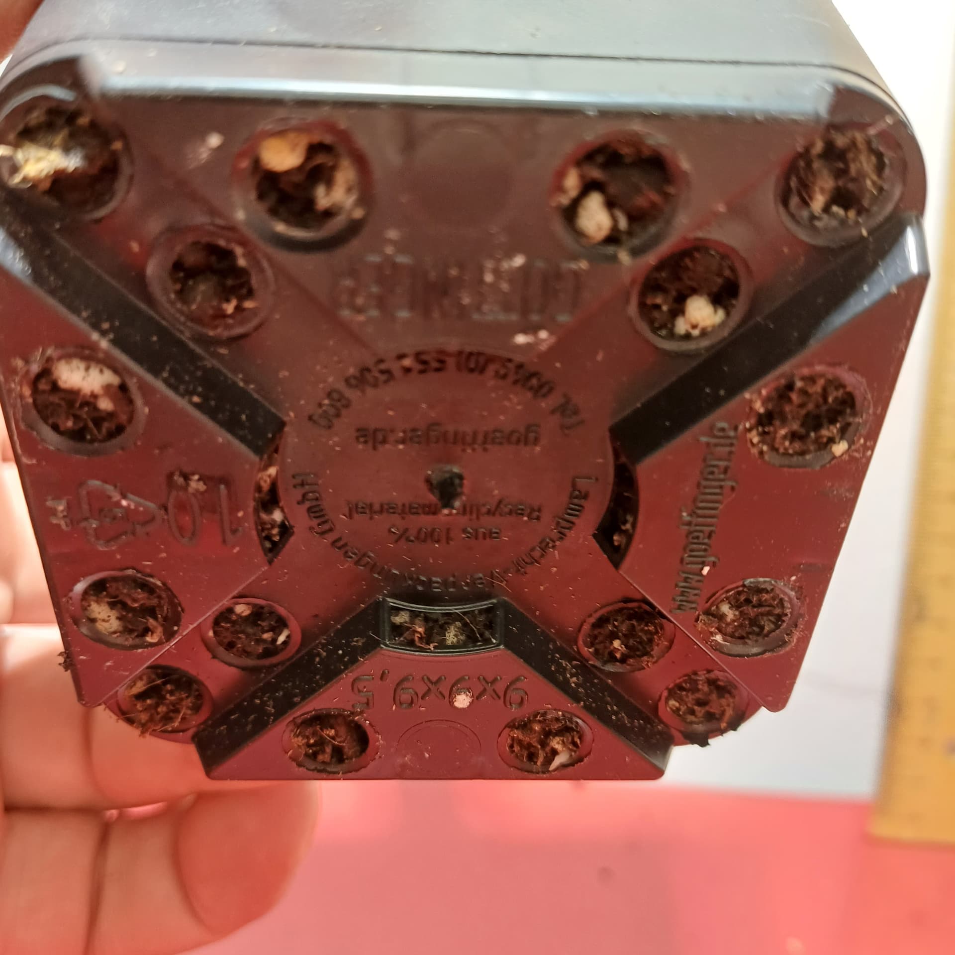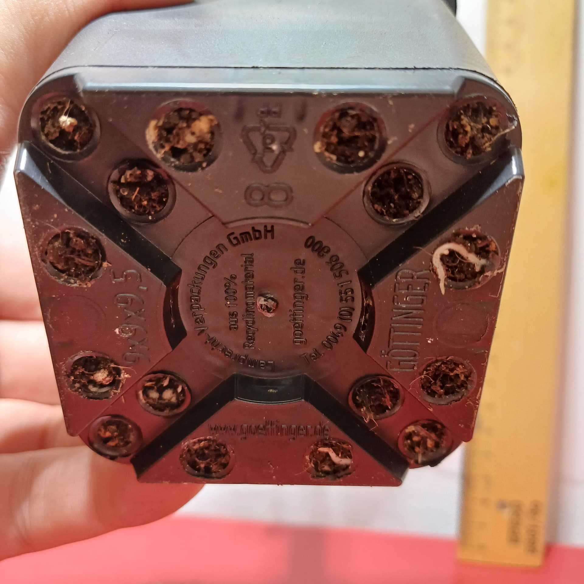 Nummer 3 hat ihre Wurzel gezeigt und wurde von mir ebenfalls in ihr 9x9 Töpfchen gesetzt.