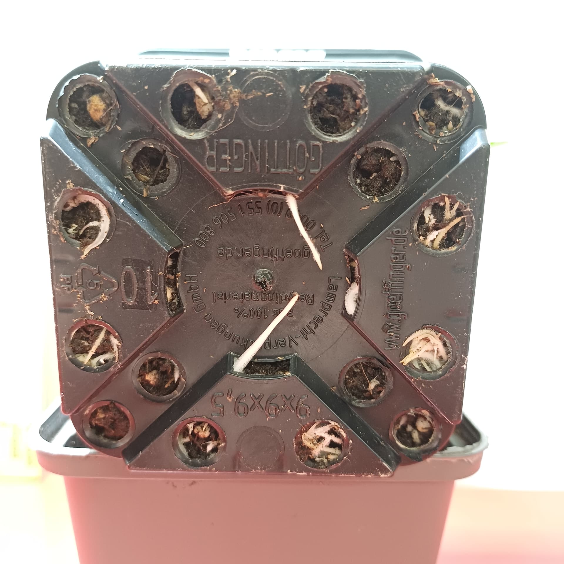 Bei einer schaut unten schon eine Wurzel aus dem Töpfchen. Ihr könnt ja mal vermuten bei welcher.