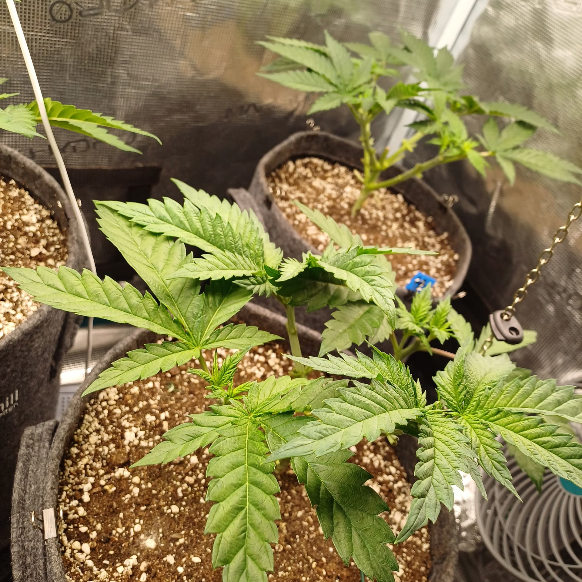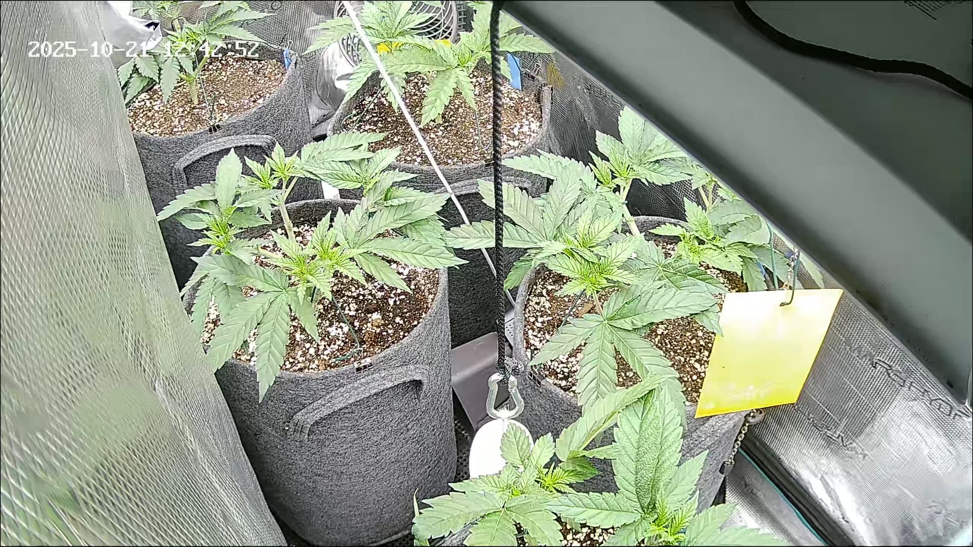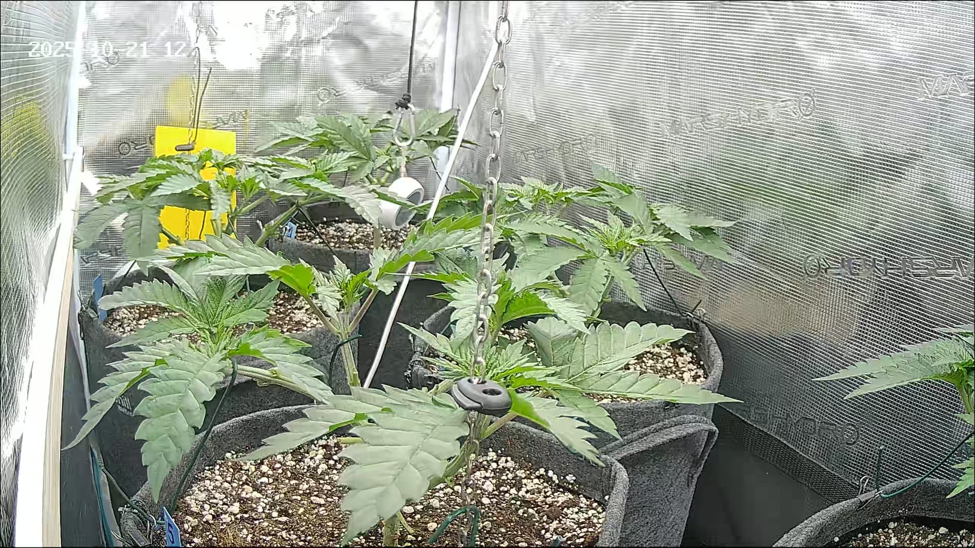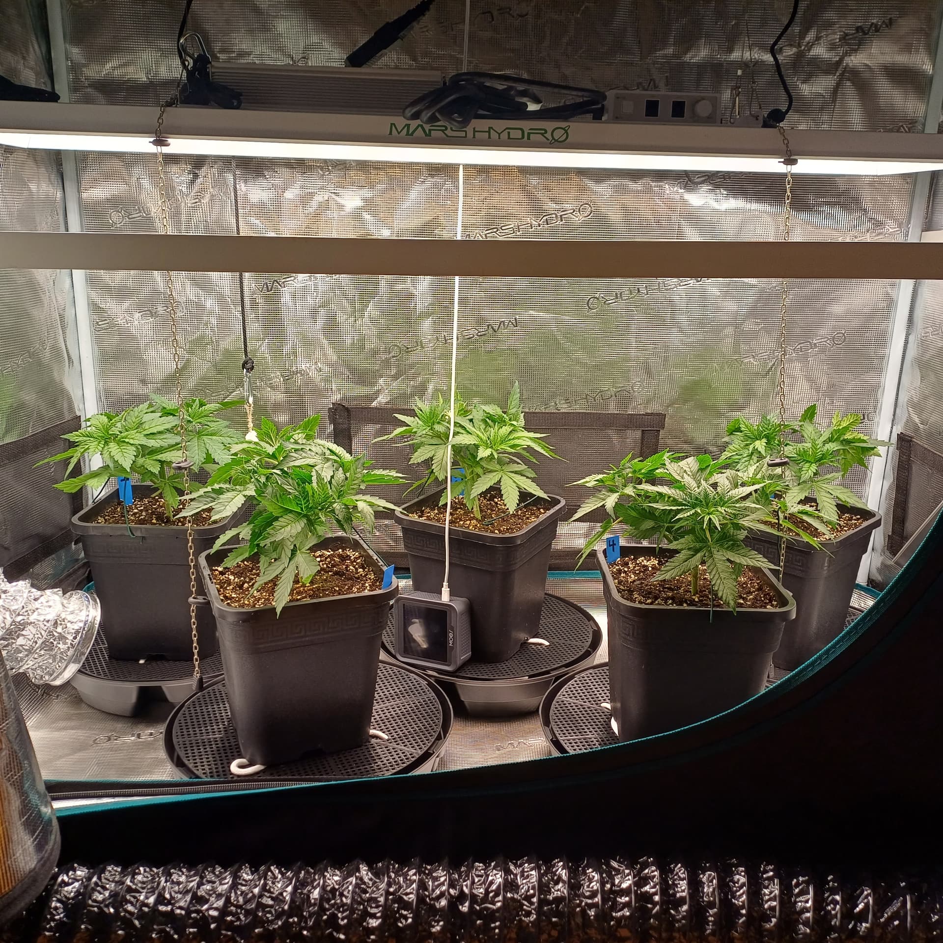 An Temp/Luftfeuchtigkeit(=VPD) und DLI wurde nichts geĂ€ndert. Die Silberhazis dĂŒrfen jetzt ein paar Tage chillen, Wurzelmasse aufbauen und sich erholen. Ab morgen wird dann wieder sanft trainiert um alle Triebspitzen auf einer Höhe zu halten.