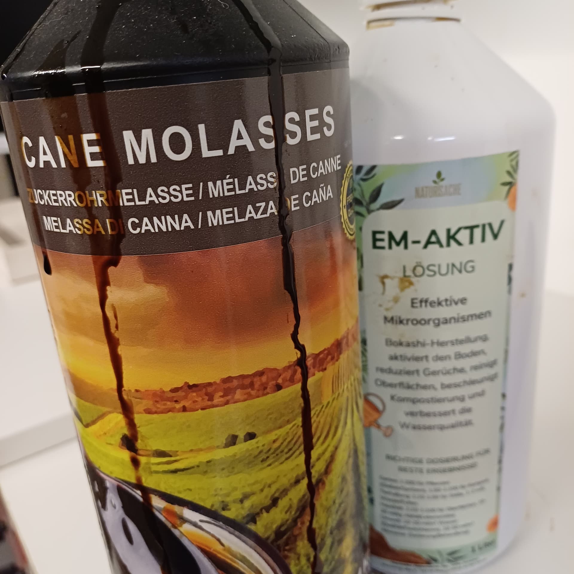 Angegossen wurde mit je 1L Leitungswasser mit jeweils etwa 2ML EM und 2ML Melasse. Das Bodenleben bekommt so einen Push, bevor die Pflanzen eingesetzt werden. Eigentlich erledige ich das ja ca. 3 Tage vor dem UmtopfenâŠ