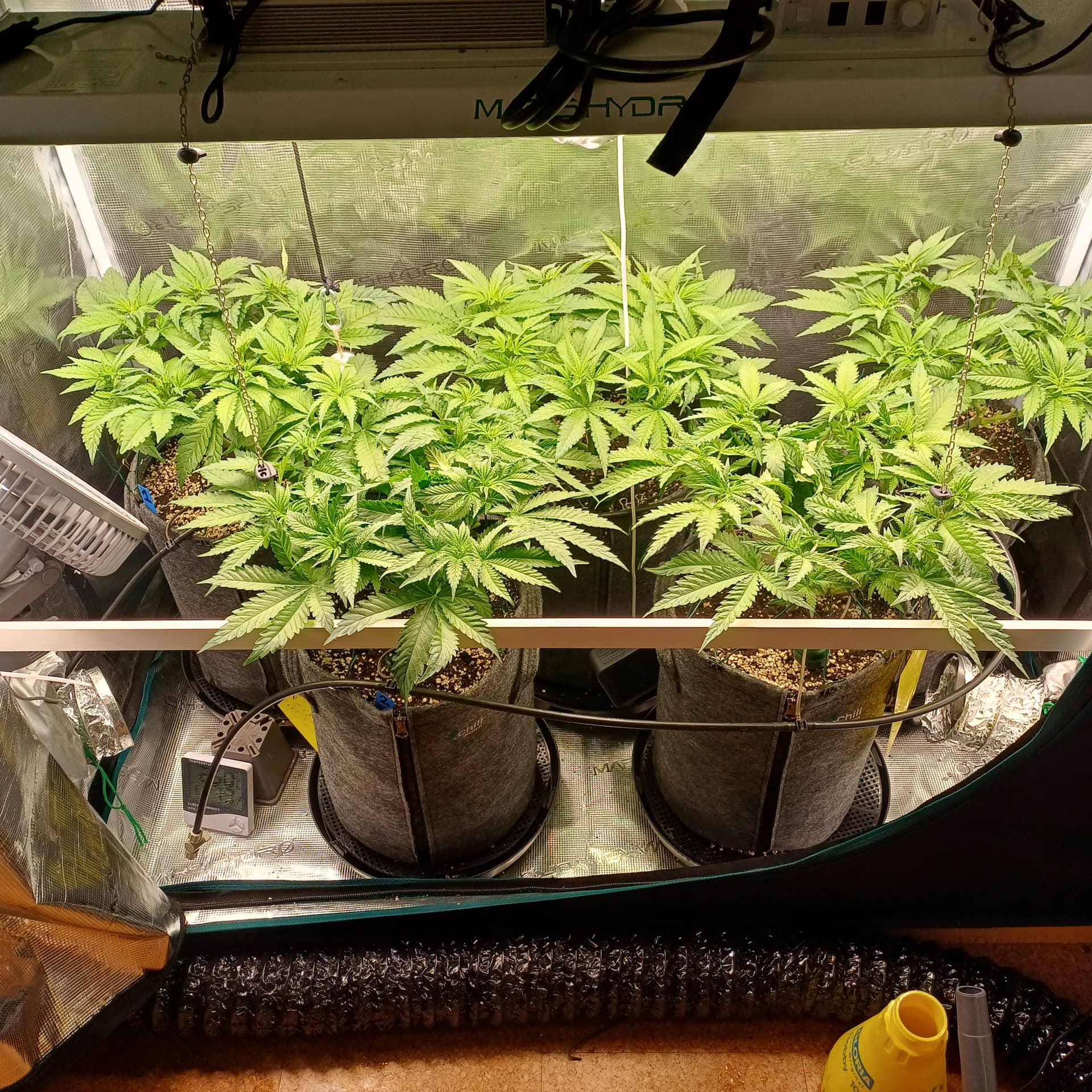 Bis auf 2 falsch eingestellte Tropfer (4 und 5 ganz rechts) lief alles super. Gerade gab es aber trotzdem bei allen Wasser bis Drain, auch um die Tropfer neu einzustellen im Laufe des Abends.