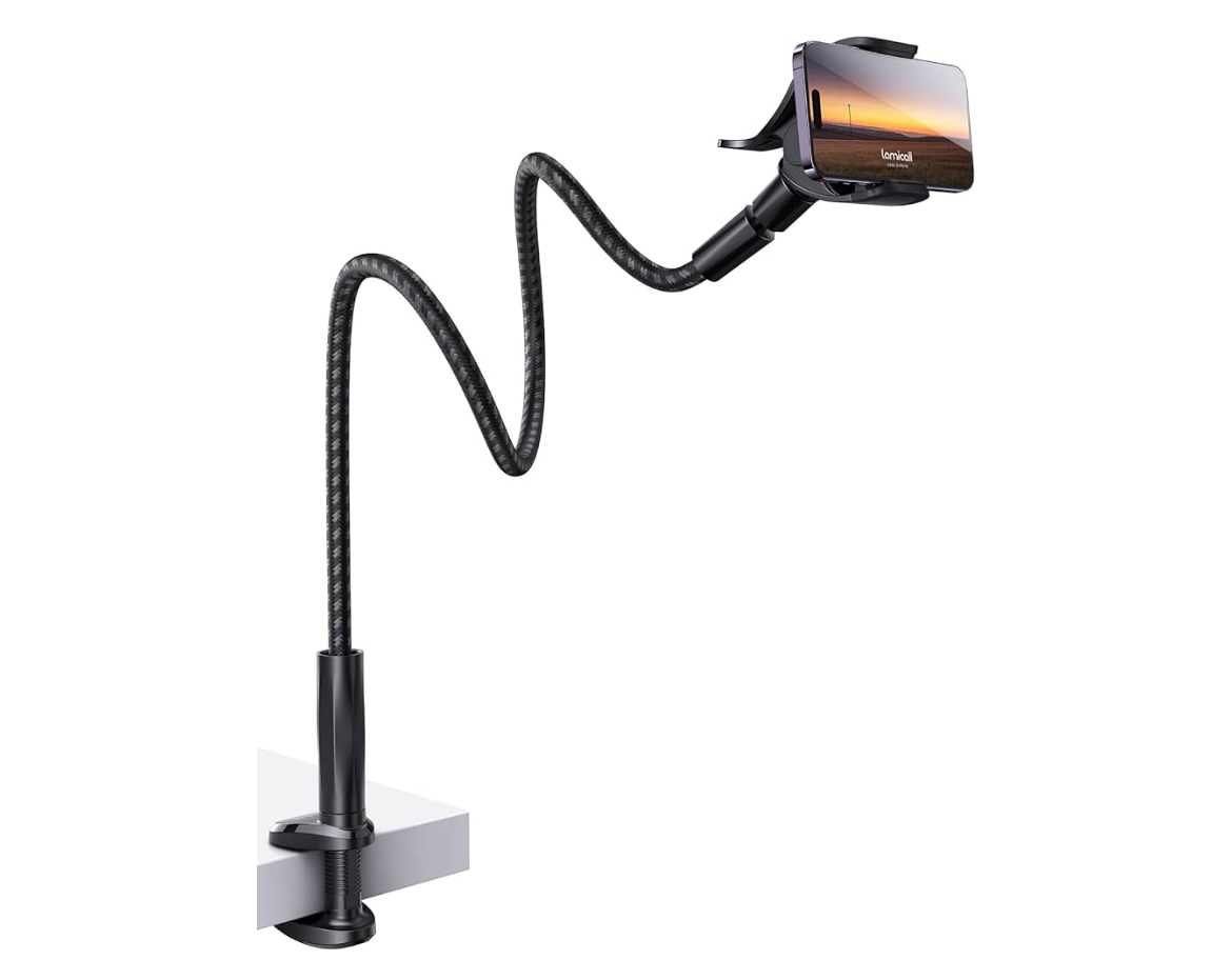 Als Stativ benutze ich dafür einen Mikrofonständer. Allerdings habe ich auch noch keinen passenden Halter dafür gefunden und behelfe mir da mit Kabelbindern…
