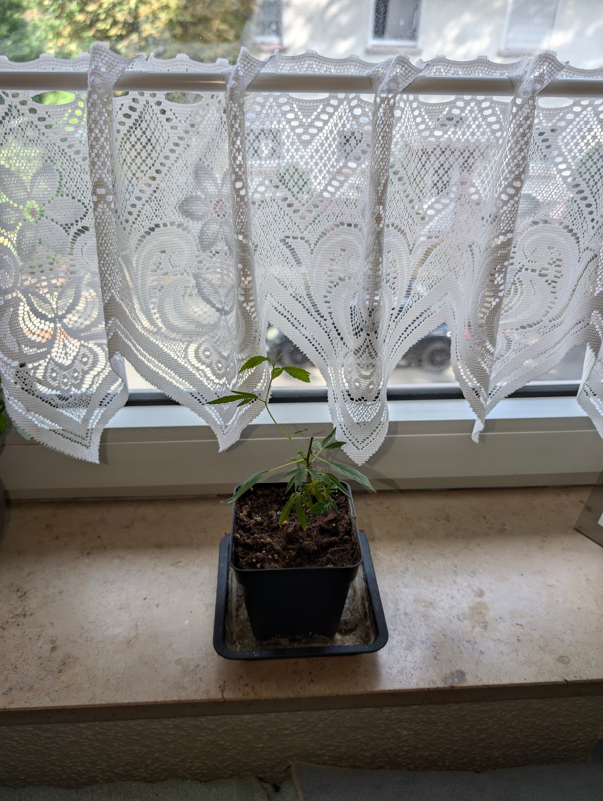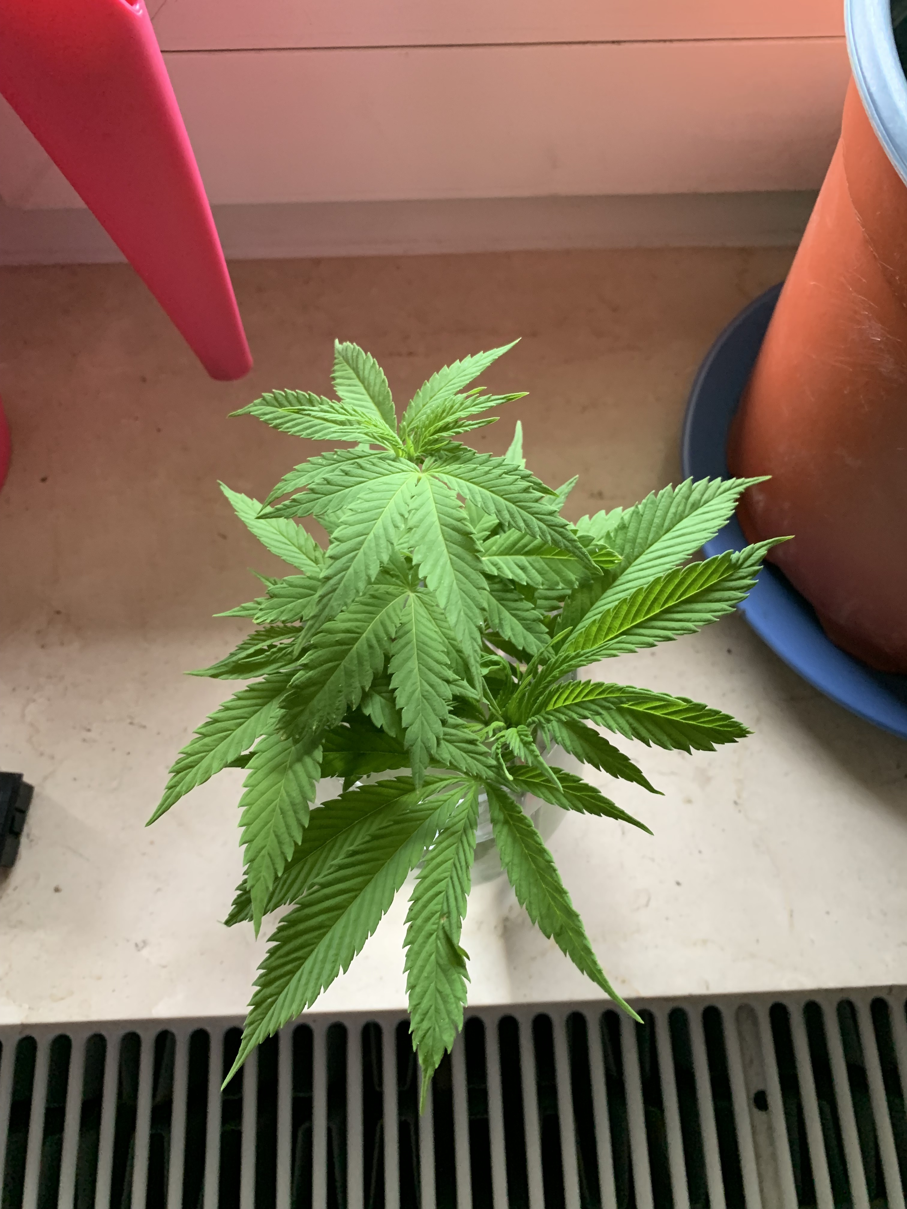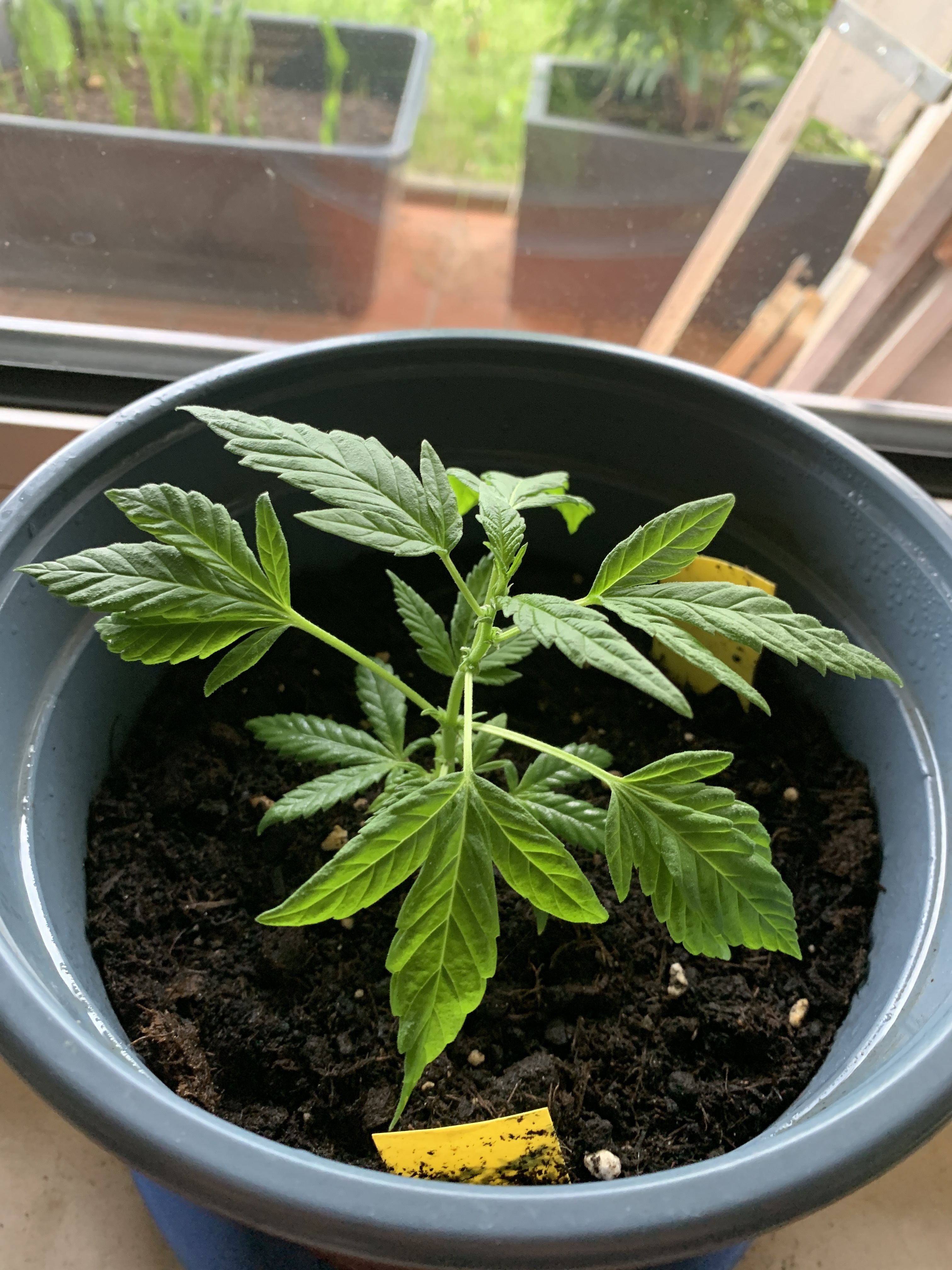 Ich hatte im Juli Samen angesetzt, und nur zwei dieser Sorte waren angegangen. Keine Ahnung was für ein Strain, aber sicher 90% Sativa. Nun war eine Pflanze männlich, ab in die Tonne.