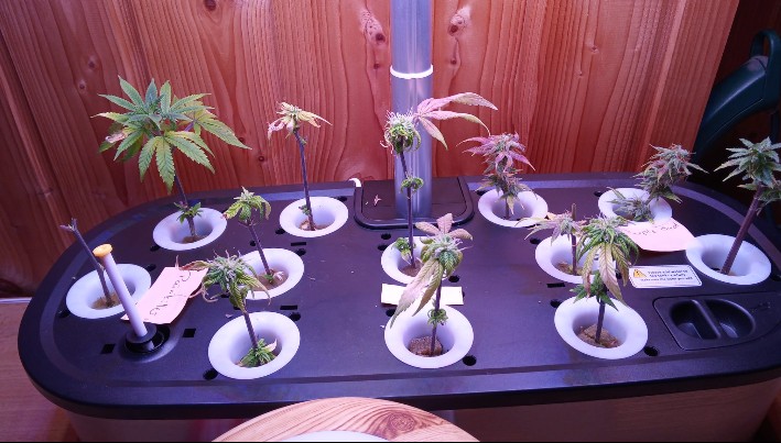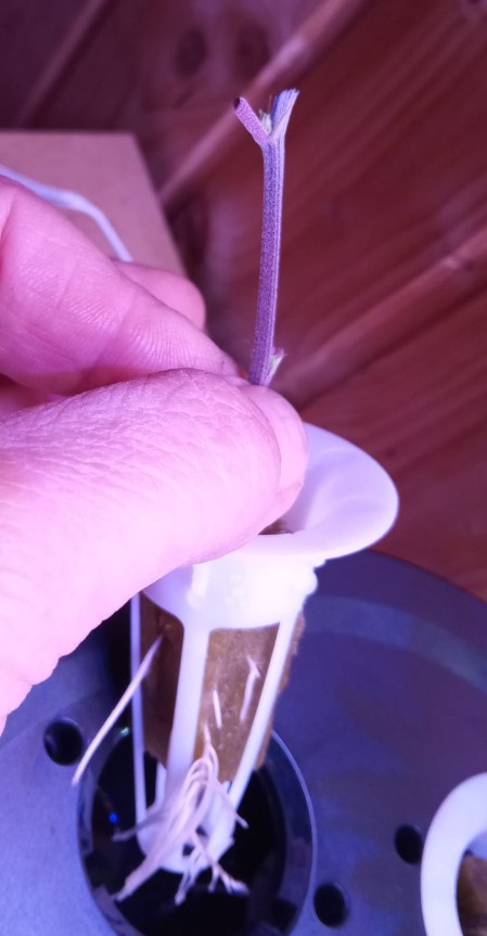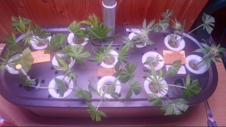Von meinen Pflanzen habe ich den kleinen Unsinn untenrum abgeschnitten und von jeder Sorte 4 Stecklinge in den LetPot in Steinwolle und Leitungswasser eingesetzt, Beleuchtung 18/6.