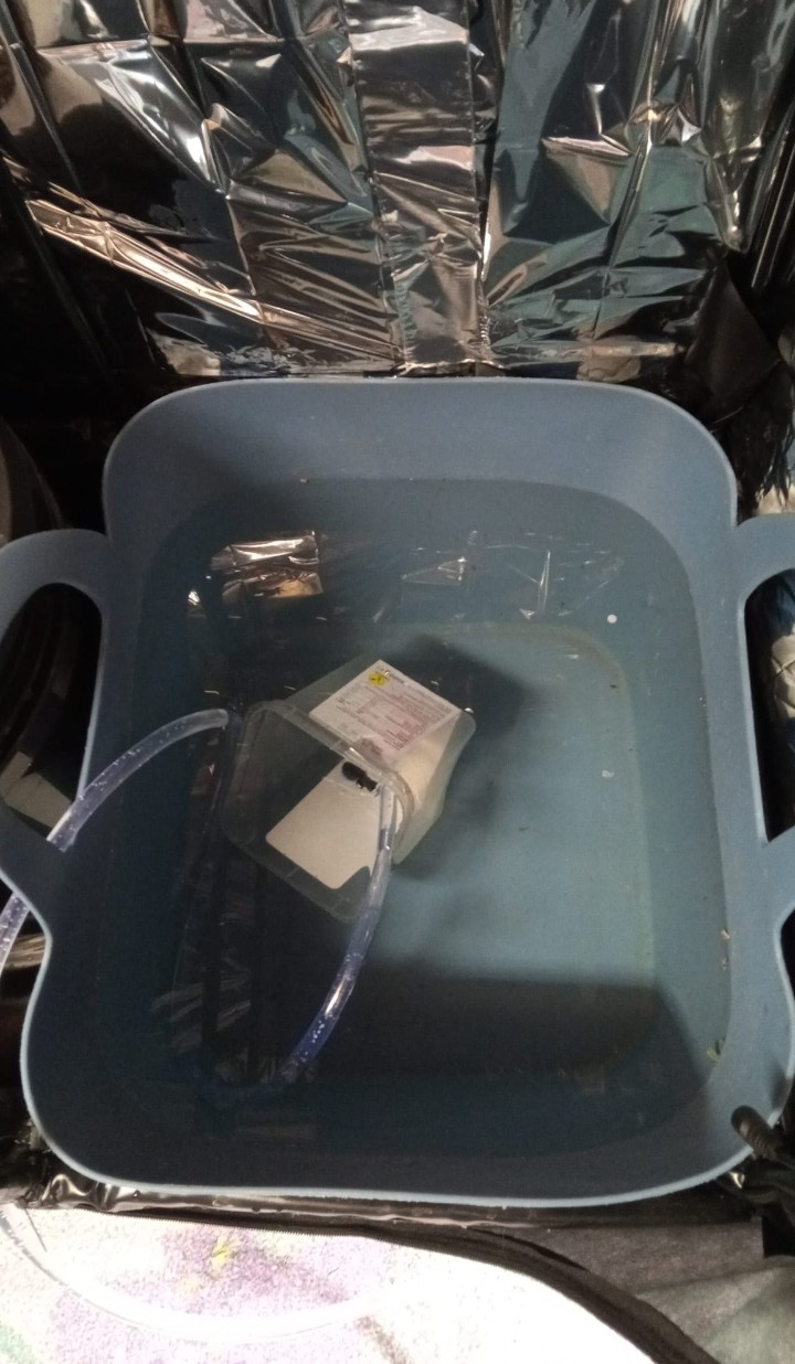 Und weil ich der Sache noch nicht ganz traue, steht der Vorratskübel erstmal in ner extra Box. Aber alles dicht und läuft, so muss das.