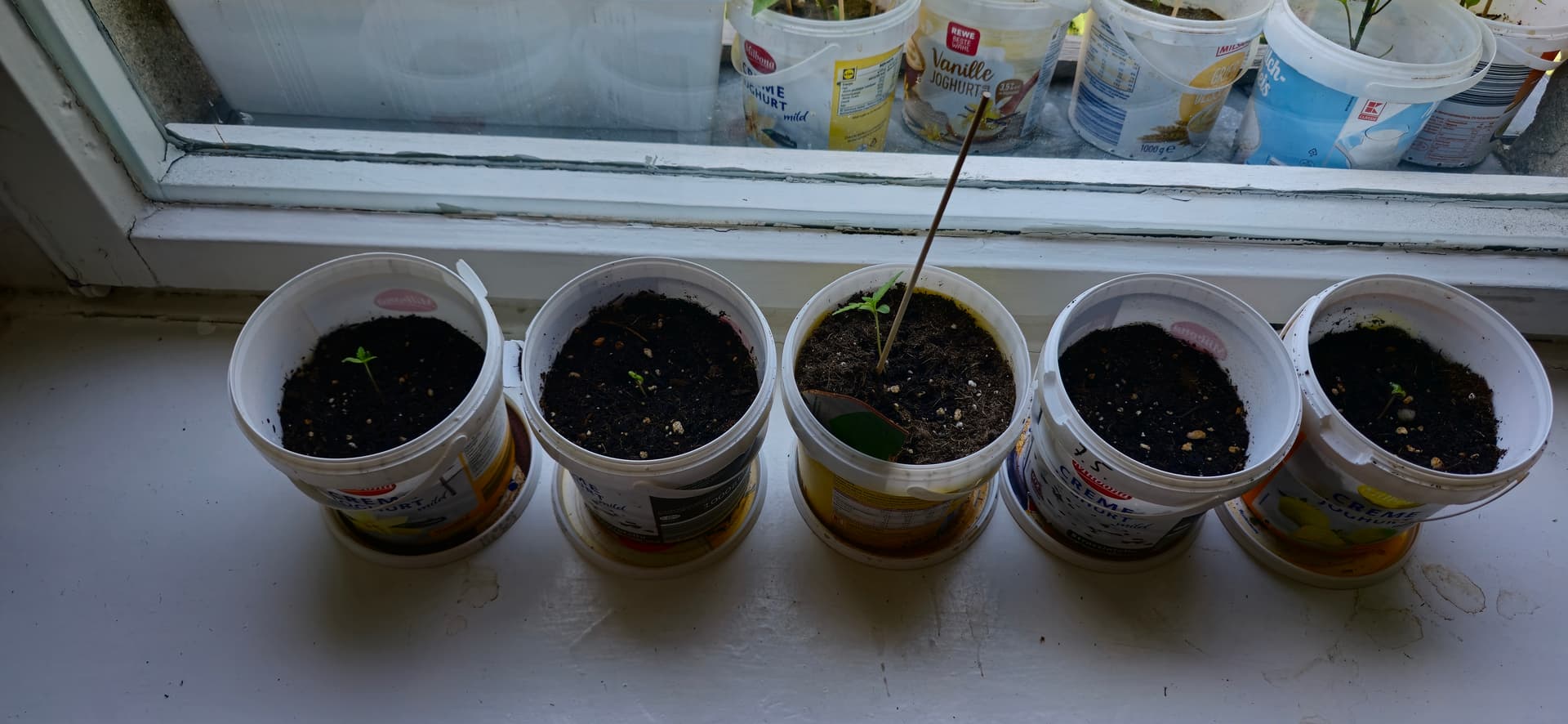 Da ich mir vorsorglich und aus Neugier im März schon Samen bestellt hatte, die aus Zeitmangel immernoch rumlagen, konnte ich am nächsten Tag direkt meinen 1. Outdoor-Versuch starten.