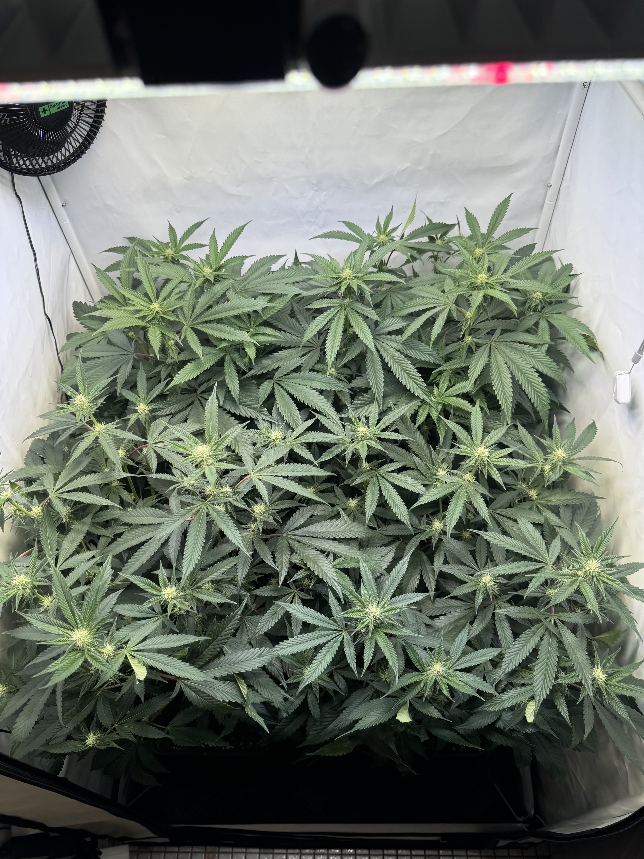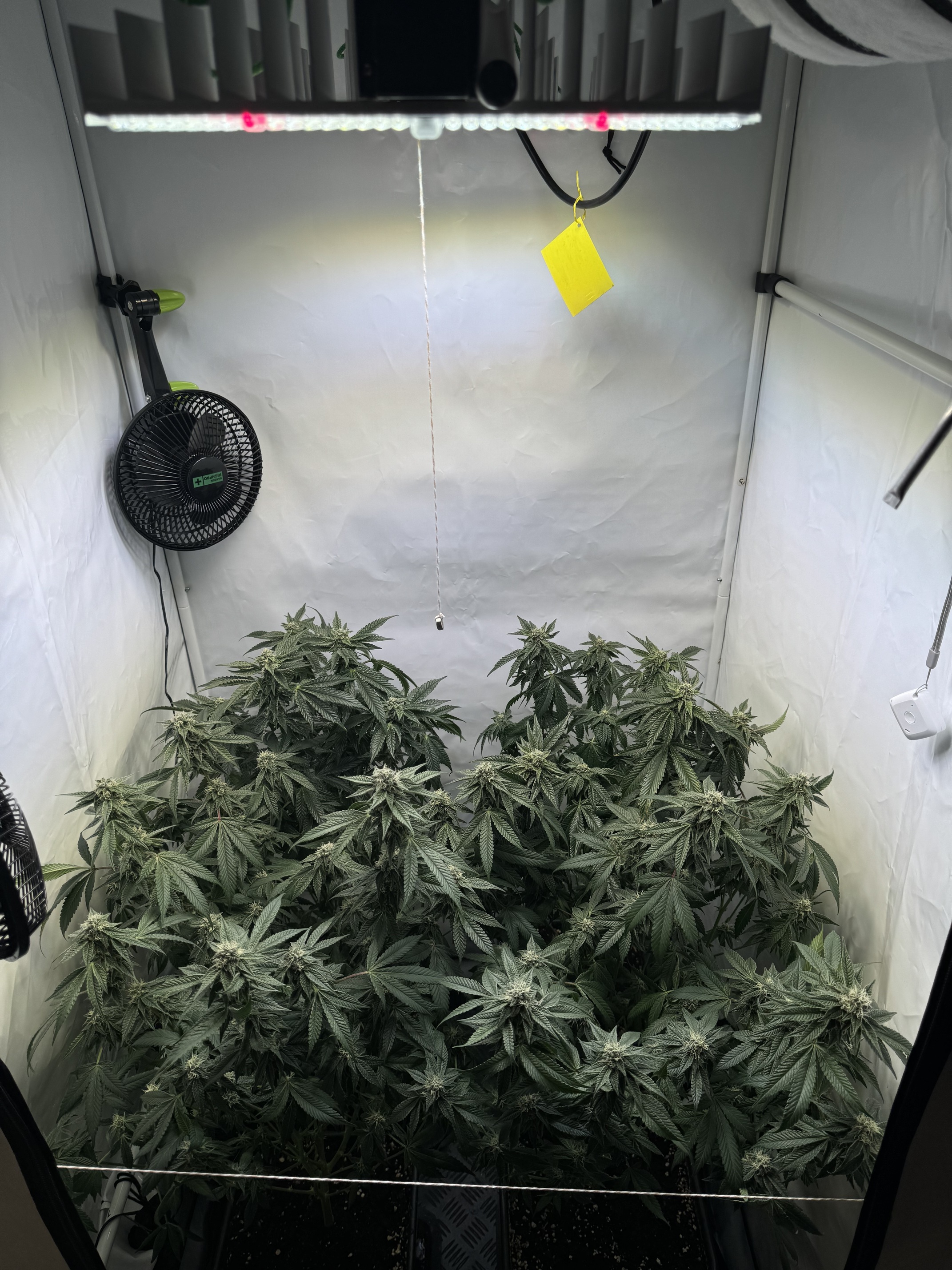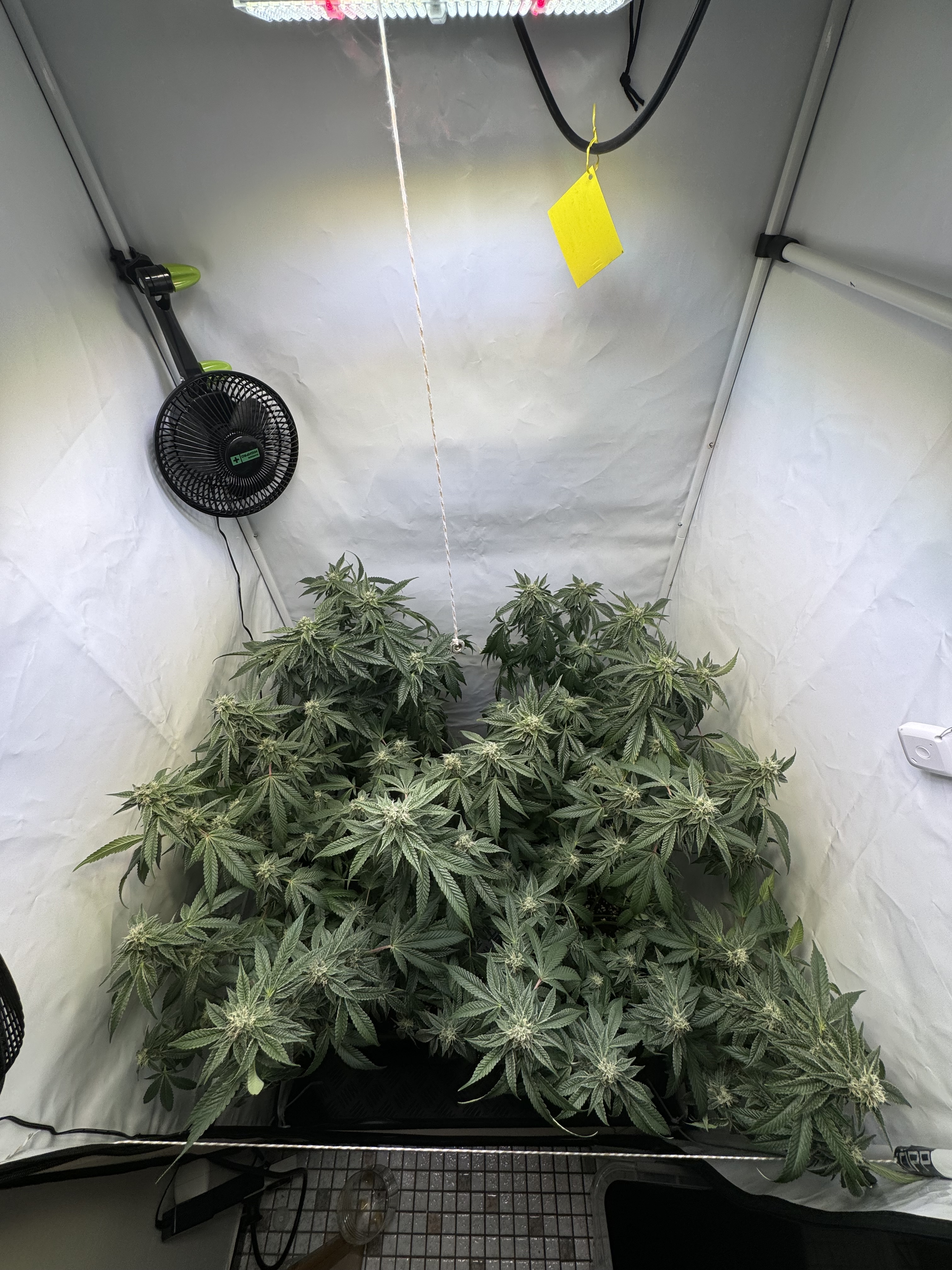 Das Zelt habe ich in der Zeit leer geräumt und die Abluft abgeschaltet. Dann habe ich eine Dose Flächendesinfektionsmittel verteilt und das Zelt zugemacht. (Kannst kaum Atmen darin)