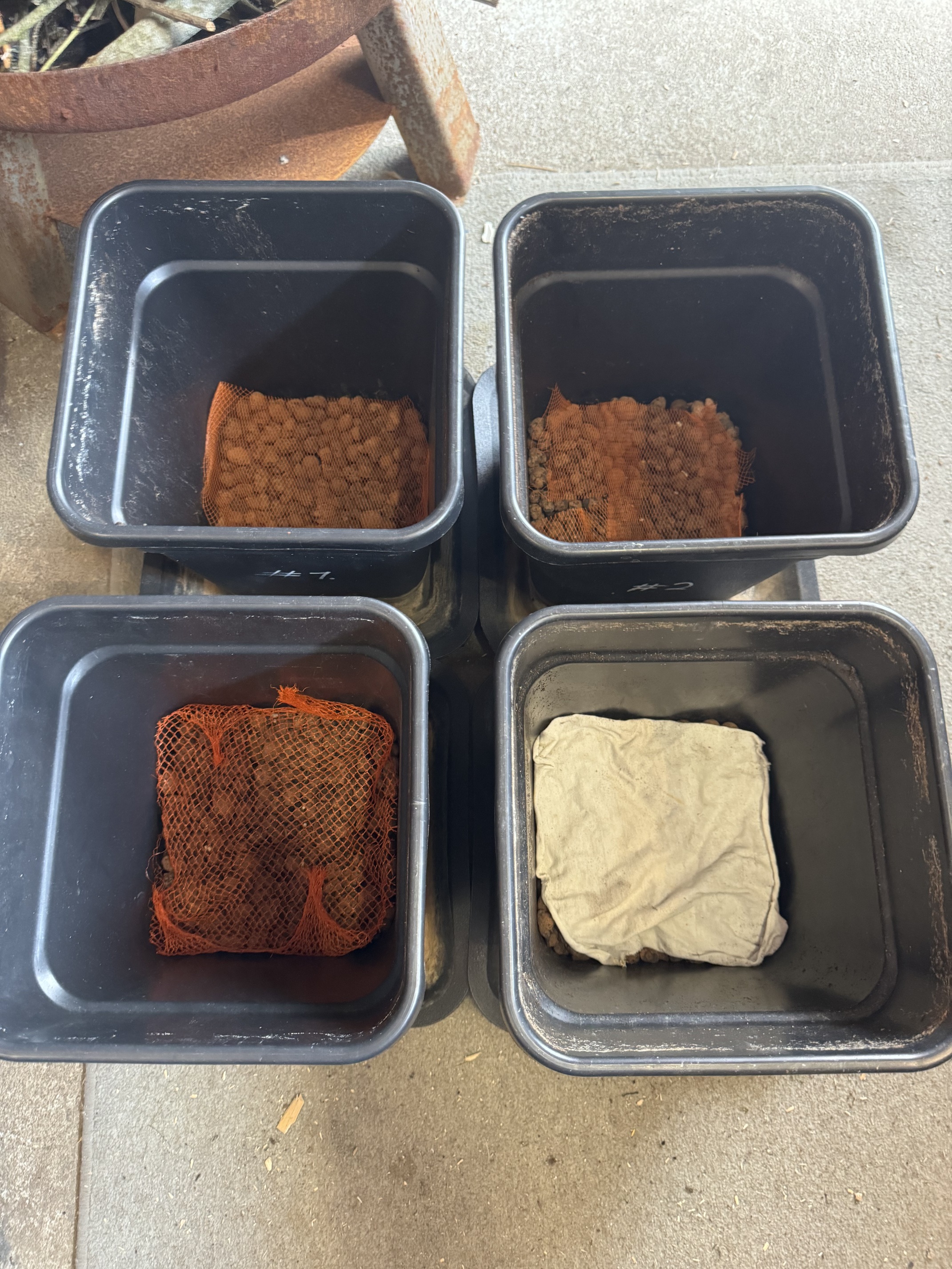 Dort dürfen sie ca. 10 Tage anwachsen bevor sie in die 65L Kübel im Garten umziehen