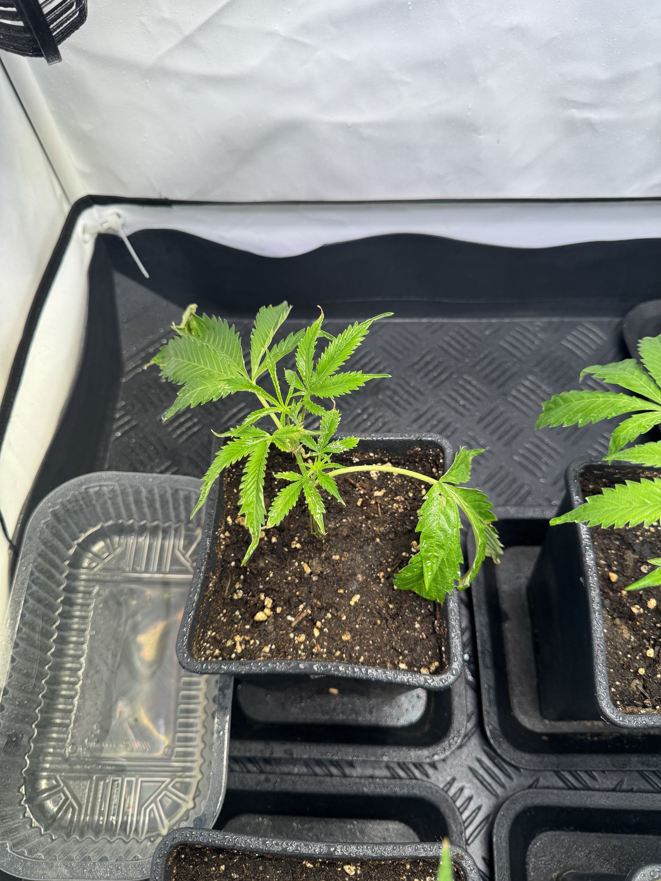 Die geschnittenen Stecklinge sind noch nicht angewurzelt deswegen kamen die mit den anderen Sämlingen in eine extra Anzuchtbox und werden dort weiter mit 18/6 belichtet und täglich 2x mit Wasser besprüht