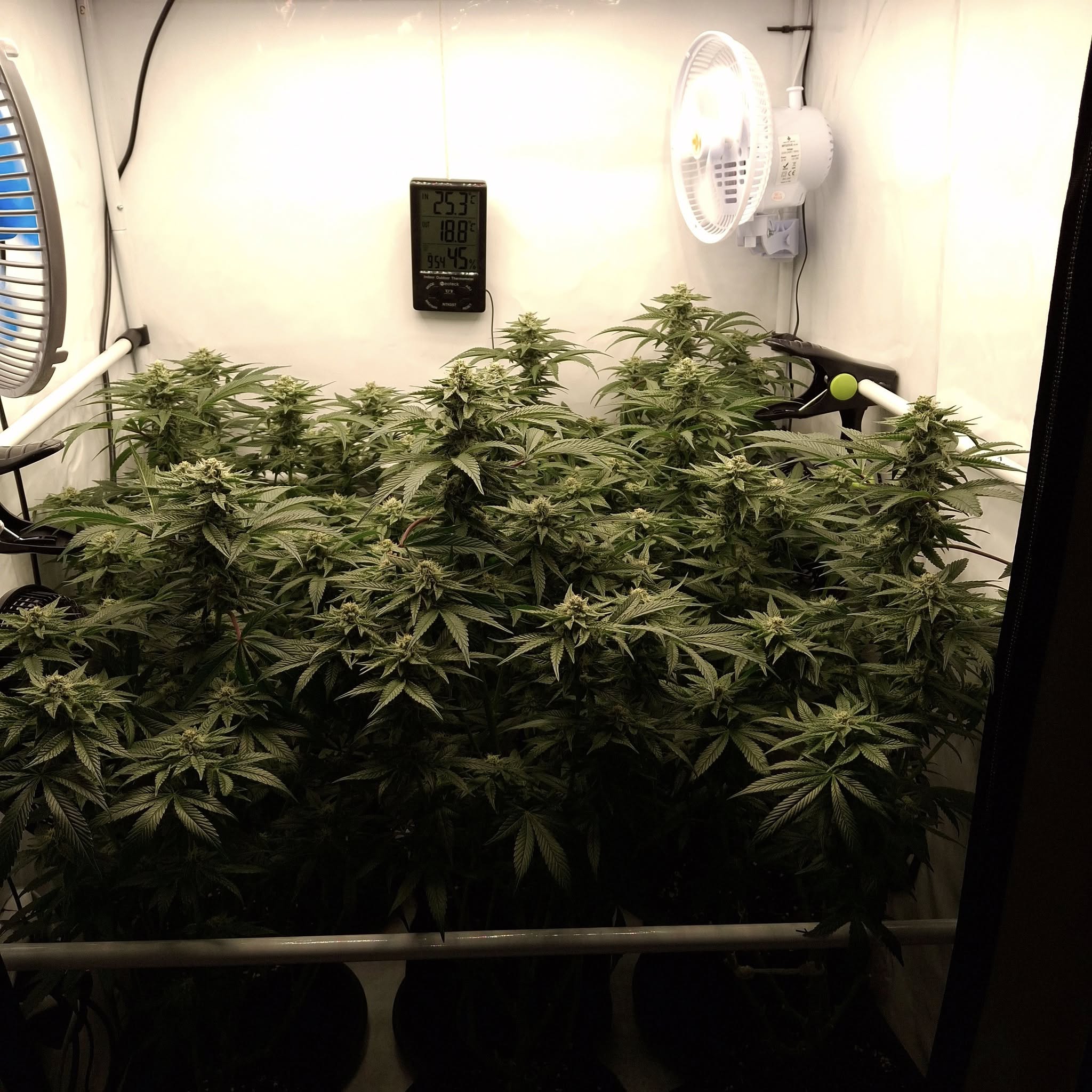 Bin auch happy wie es bisher lĂ€uft. gebe sicherlich alles fĂŒr eine qualitativ hochstehnde Ernte. Habe viel aus meinen vorherigen Grows gelernt. Auch wenn diese schon lange zurĂŒck liegen, nicht alles habe ich vergessen. Aber das Schöne ist, wieder ein verloren gegangenes Hobby wieder entdeckt zu haben.