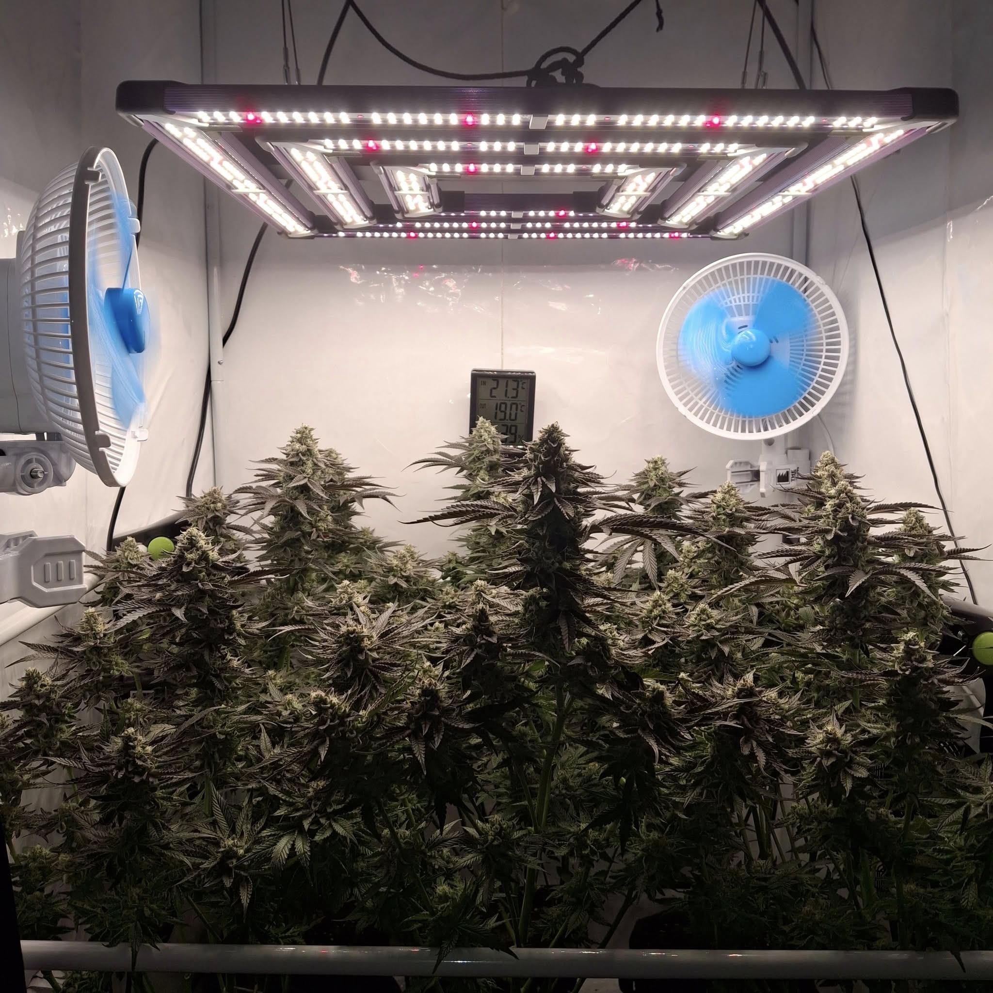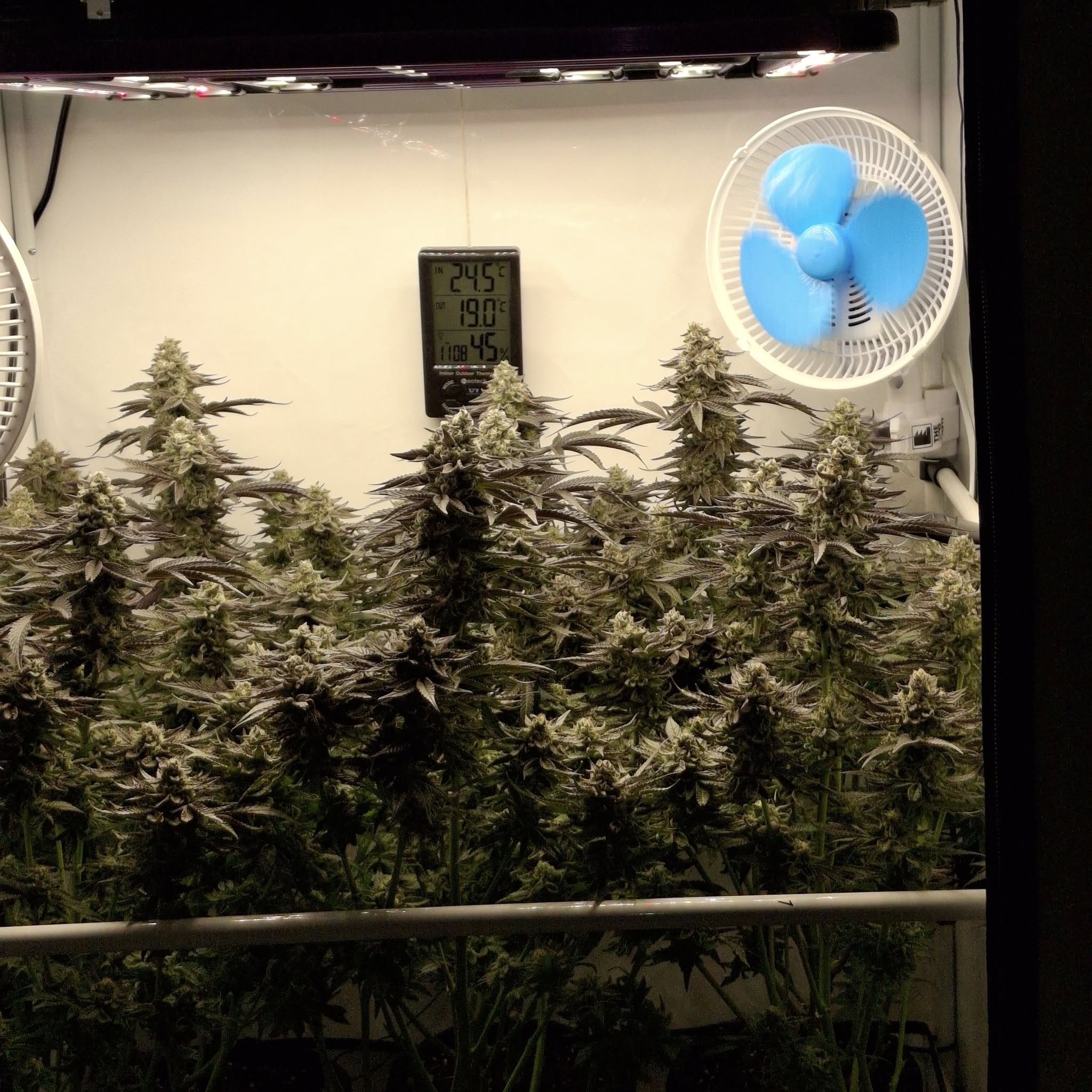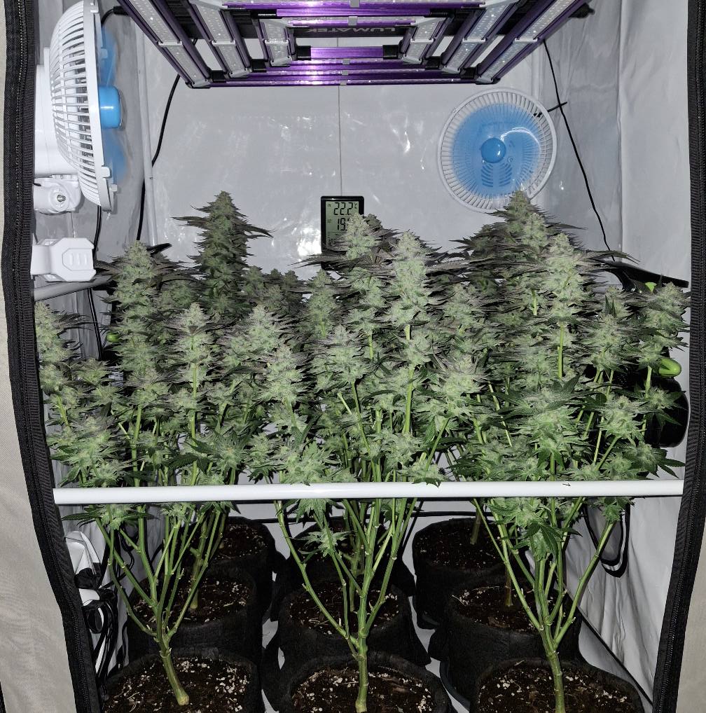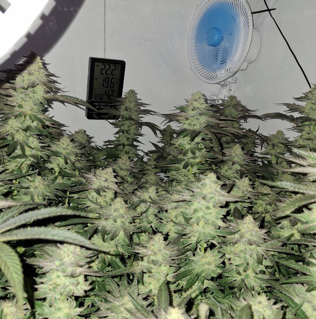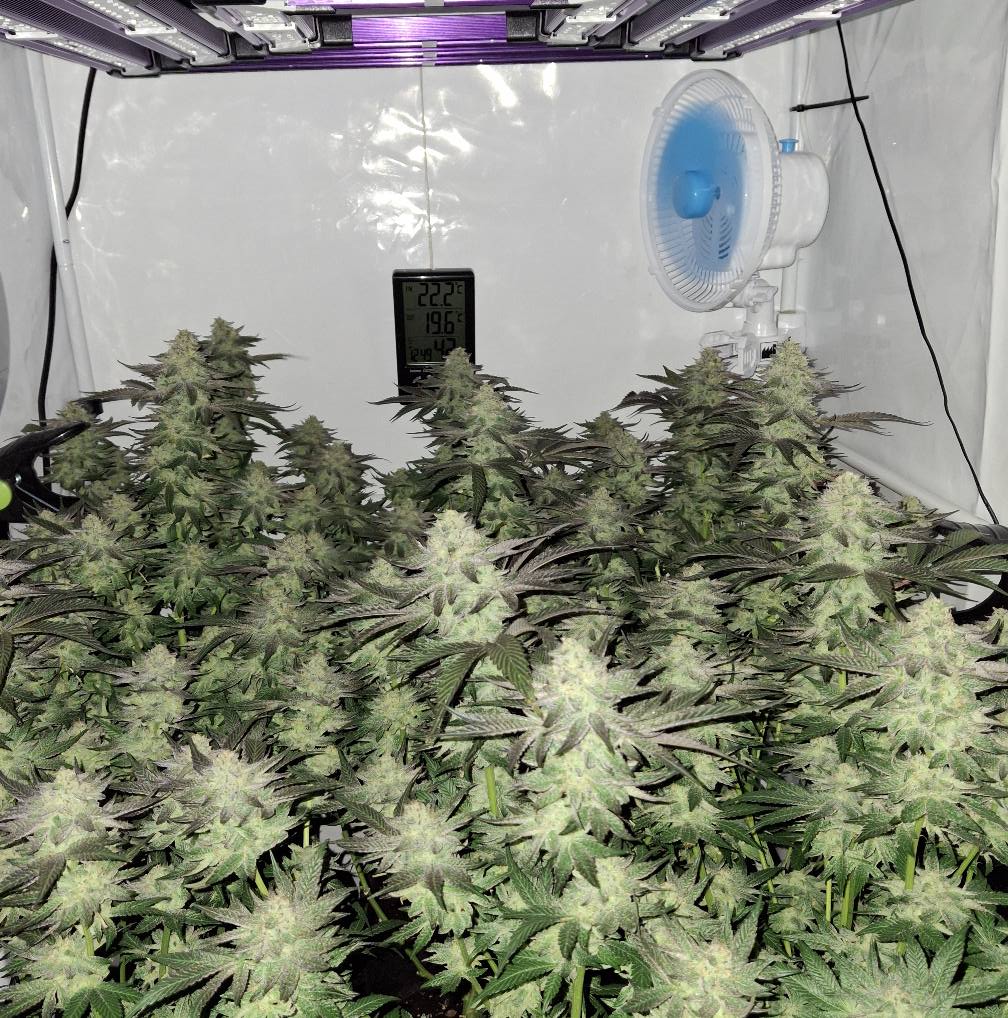 Denn Ladies gehts gut. Einzelne Ăste knicken unter dem Gewicht der Buds, doch die Plants halten sich gegenseitig. Wenn man sie nicht aus der Box rausnehmen muss, geht es.