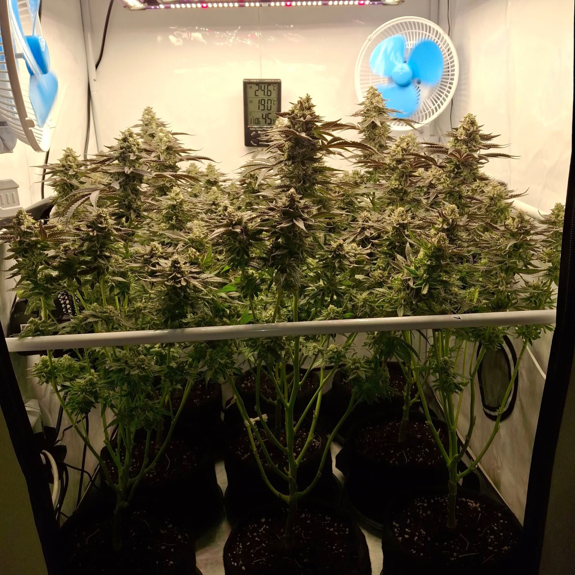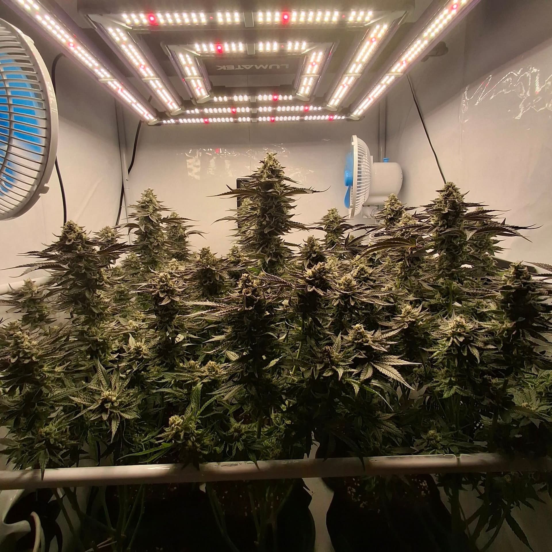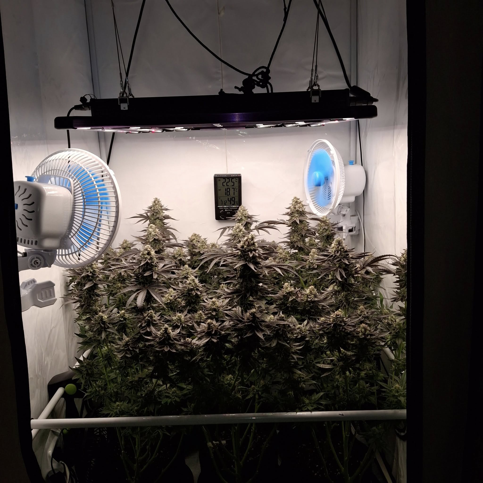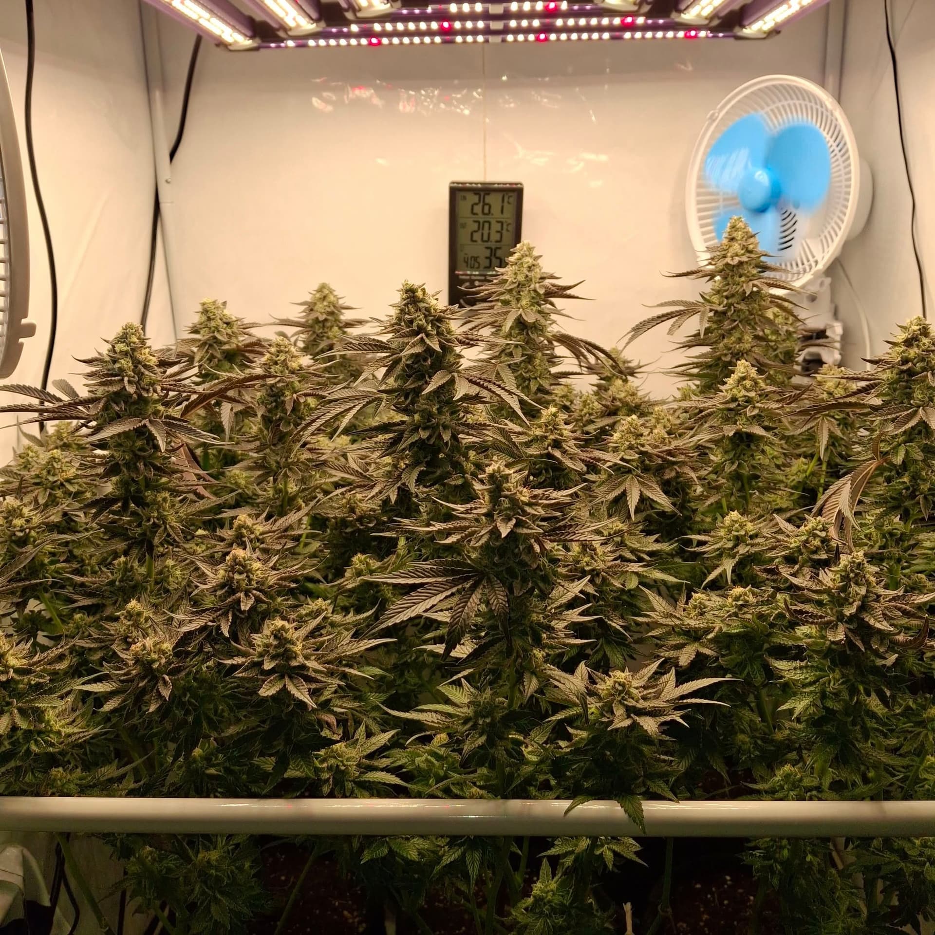 Denn Ladies gehts gut. Einzelne Ăste knicken unter dem Gewicht der Buds, doch die Plants halten sich gegenseitig. Wenn man sie nicht aus der Box rausnehmen muss, geht es.