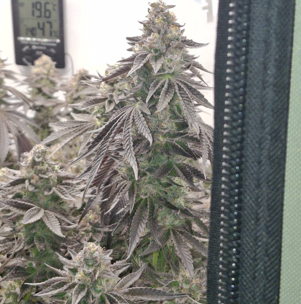 Noch ca. 3 Wochen bis zur Ernte, dann passt es auch mit der BlĂŒtetagen-Angabe des Breeders von 63 Tagen, wenn man die BT seit Umstellung auf 12/12 zĂ€hlt.