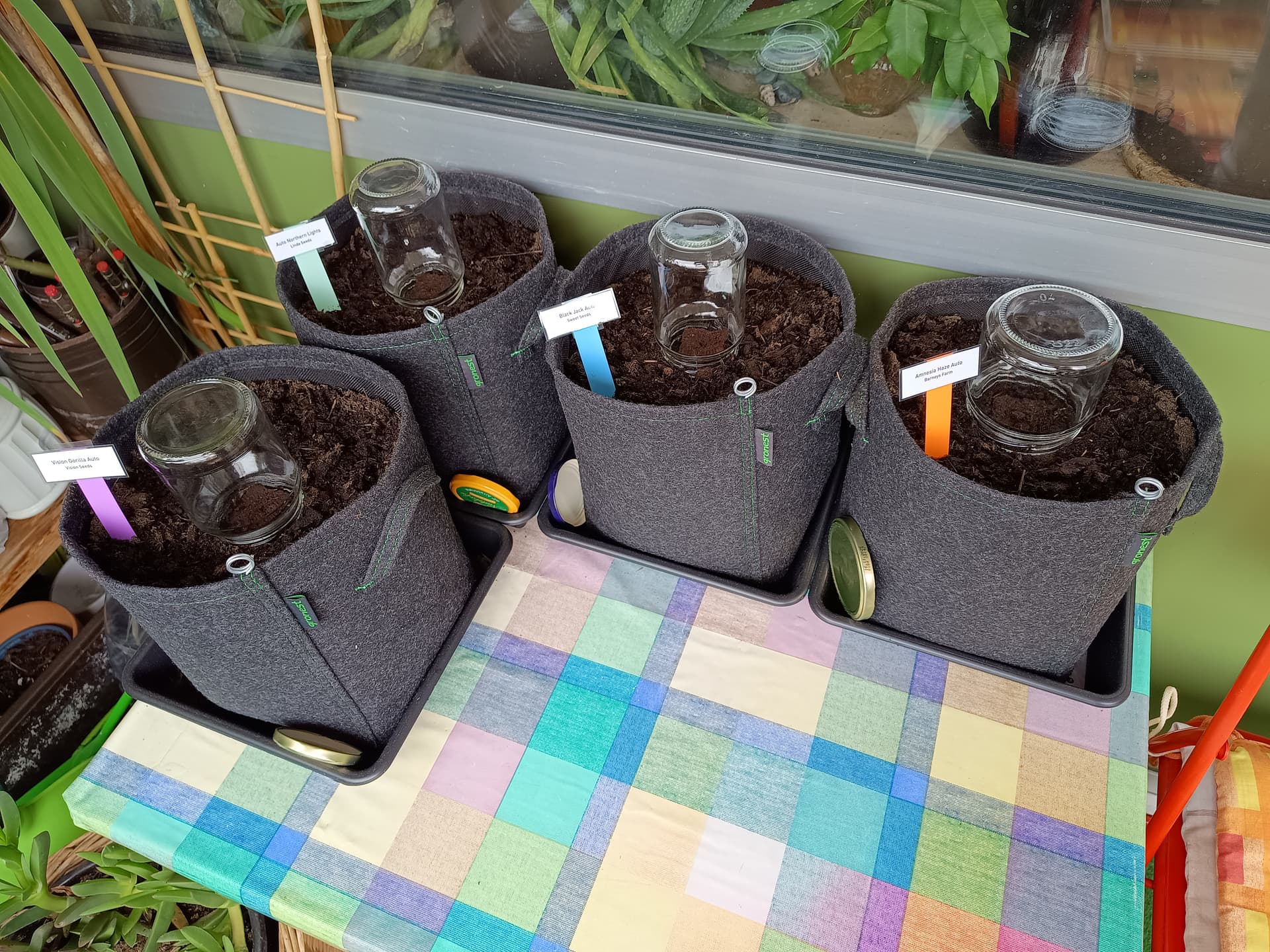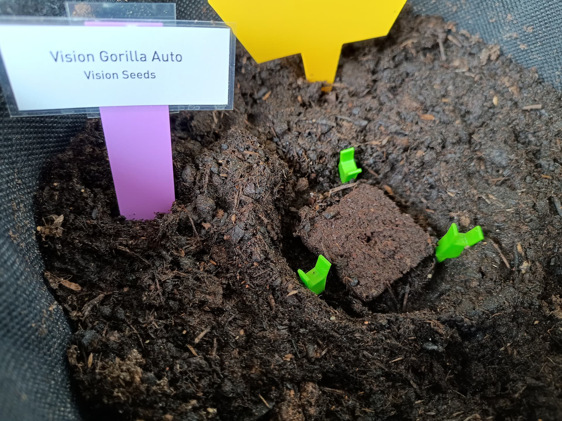 Growmedium: Aldi Bio Hochbeet- und Gewächshauserde (gabs für 2€/20L kürzlich im Angebot) in Gronest 8L Stofftöpfen. Die Samen kommen in Eazy Plug-Anzuchtwürfel, und diese dann direkt in Mulden in der Erde. Das ist so ziemlich genau die Methode die sie auch bei diesen iGrowCan-Geschenkdosen empfehlen.