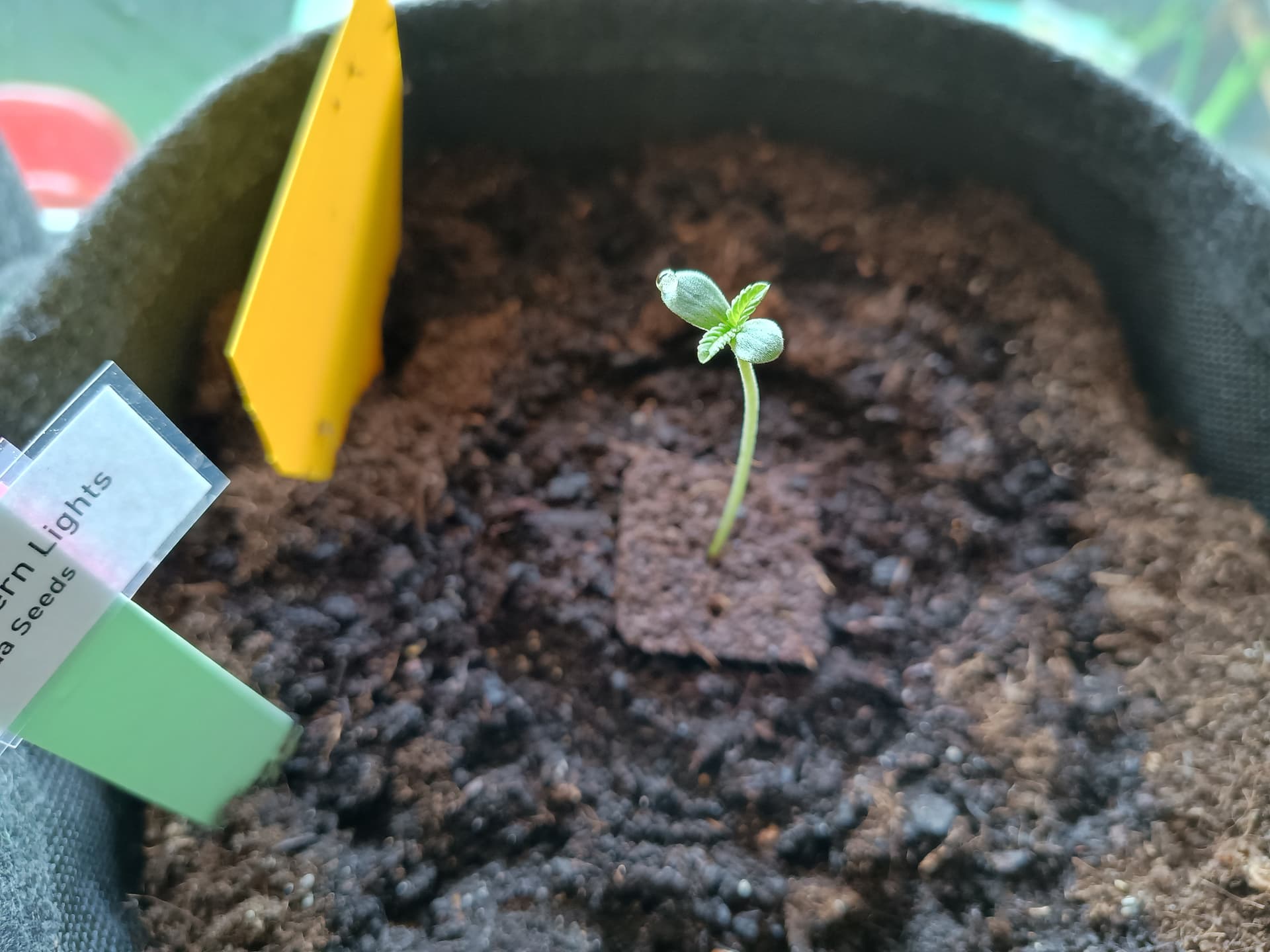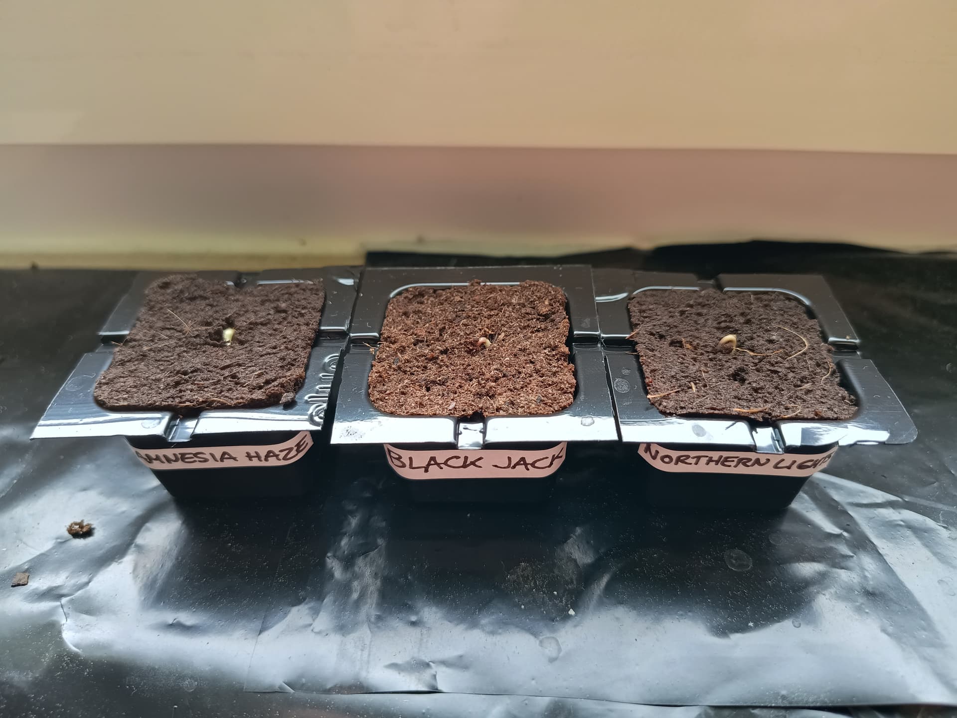 Amnesia Haze und Northern Lights zeigen schon kräftig dass sie loslegen wollen, Wurzel lugt schon unten aus dem Anzuchtwürfel raus, werde sie heute in den Topf setzen.