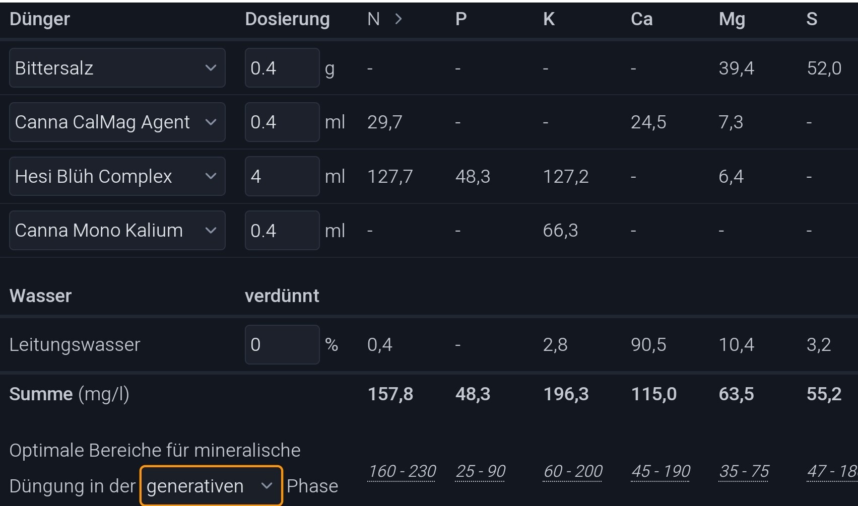 Dünger: HESI irgendwo zwischen Schema und Bergrows Düngerrechner