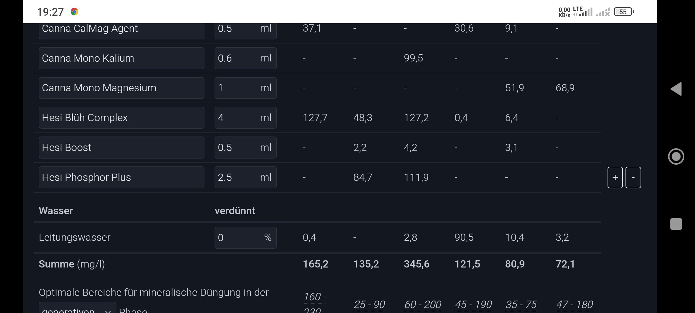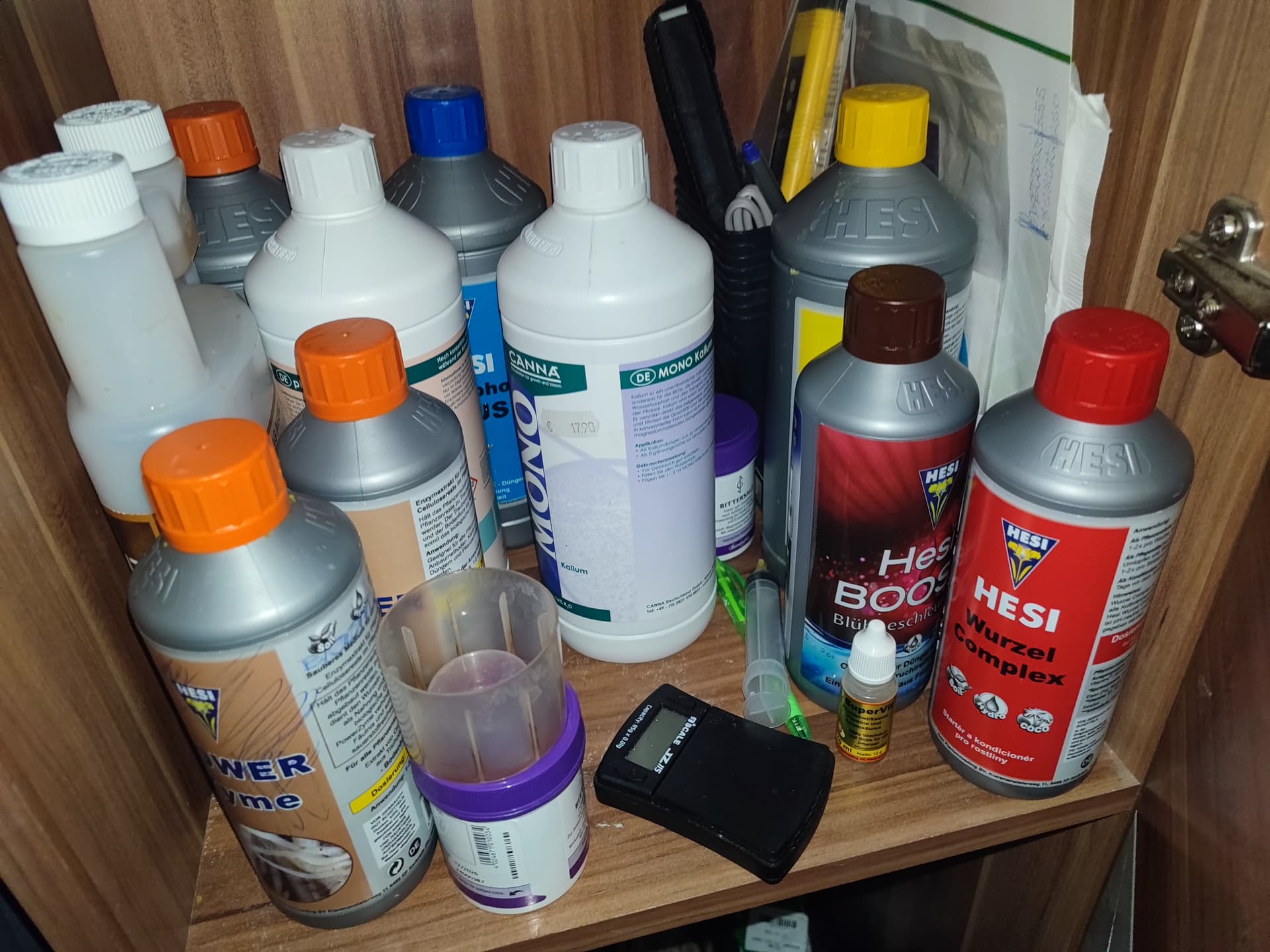 Zusätzlich gibt es noch Bittersalze, Kalium plus von Canna für die Blüte und natürlich calmag Agent ebenfallsvon Canna. Dünge Sortiment wird in diesem Run noch erweitert, ich möchte ein paar Sachen noch von Canna und evtl dieses Ripen wo man hier überall liest wenn meine Zusätze aufgebraucht sind.