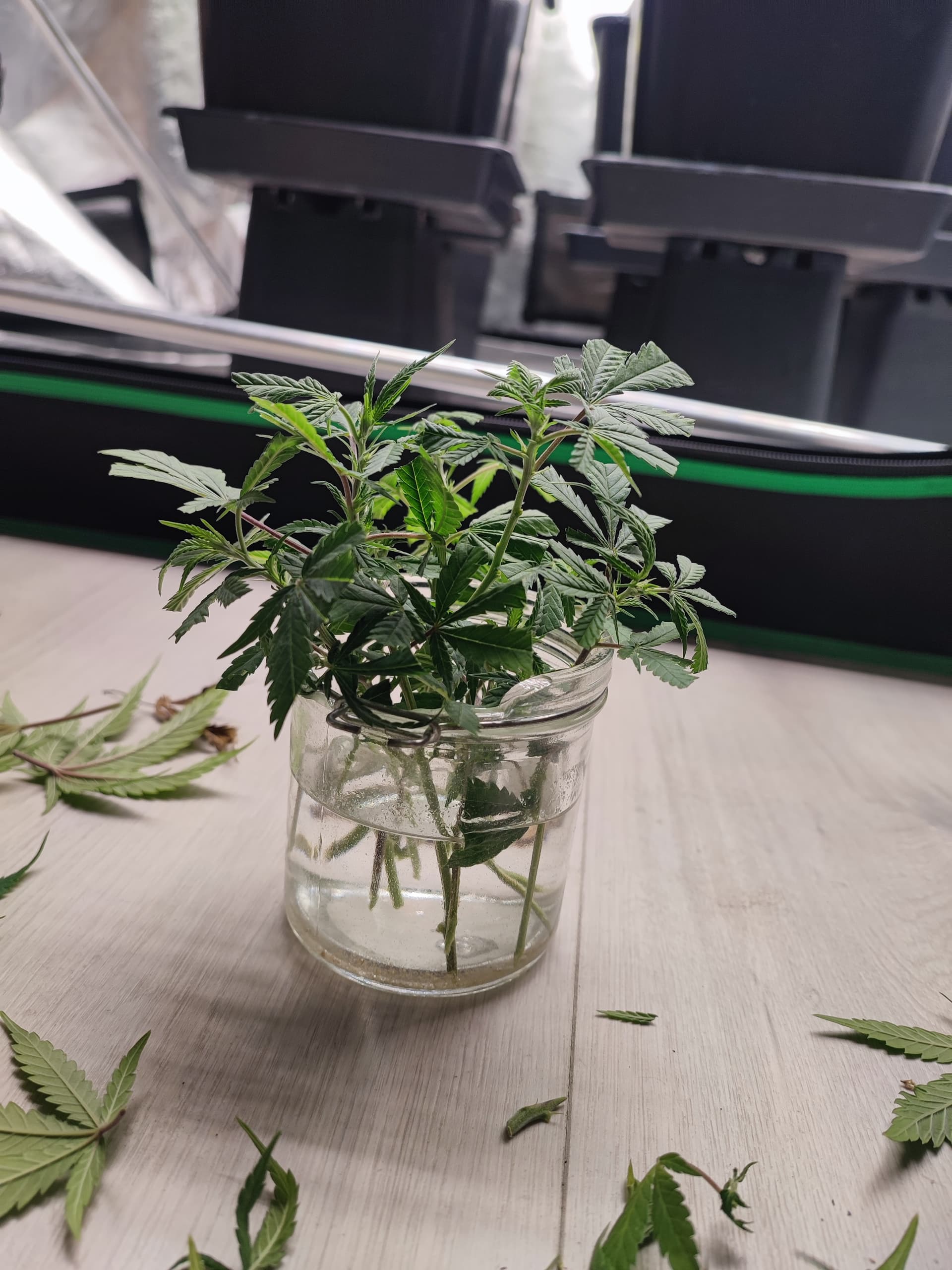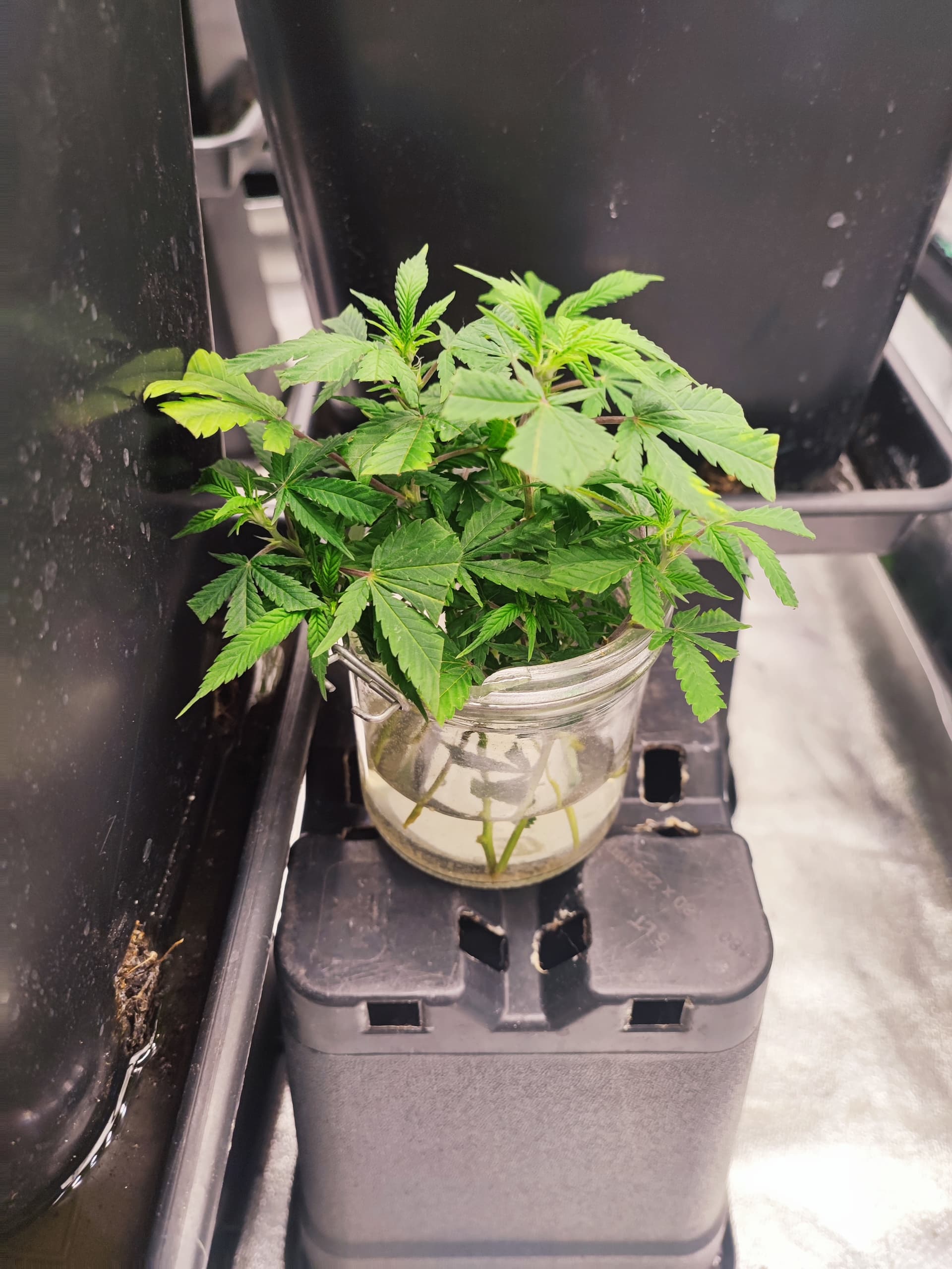 **Wasserglaskeimung und dann direkt in den 1,1 l Topf mit Hut, so ging es los. Das hier sind alles Stecklinge der dritten Generation!