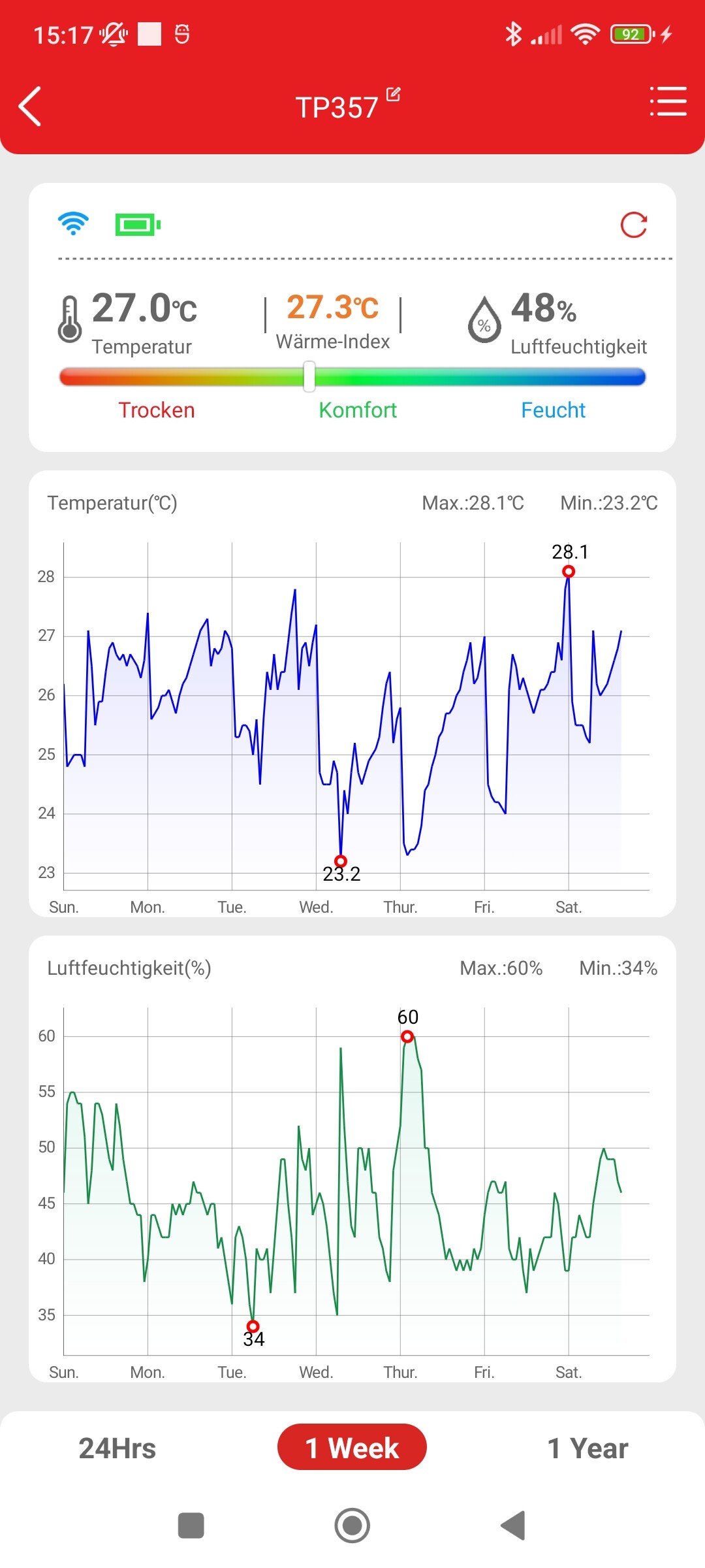 Viel zu warm und zu trocken… Absaugung läuft auf volle pulle aber 27-28° ist standard Tagsüber. Mit zwei nassen Handtüchern und einem 4L Luftbefeuchter (der nach einem Tag leer ist) komme ich auf maximal 50%, meistens eher 45-47%.