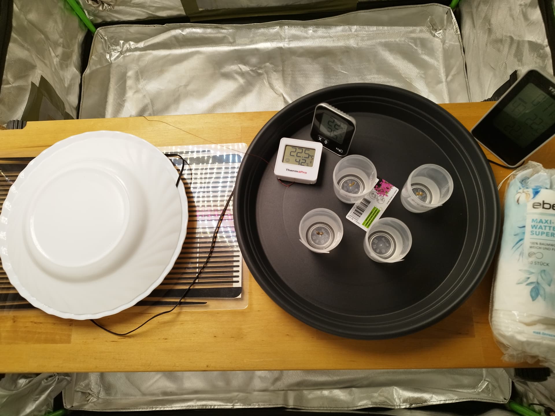 Und mit dem Bild ist quasi der Startschuss schon gefallen, saugen sich erstmal voll, dann gehts in Watte unter die Teller mit Heizmatte…